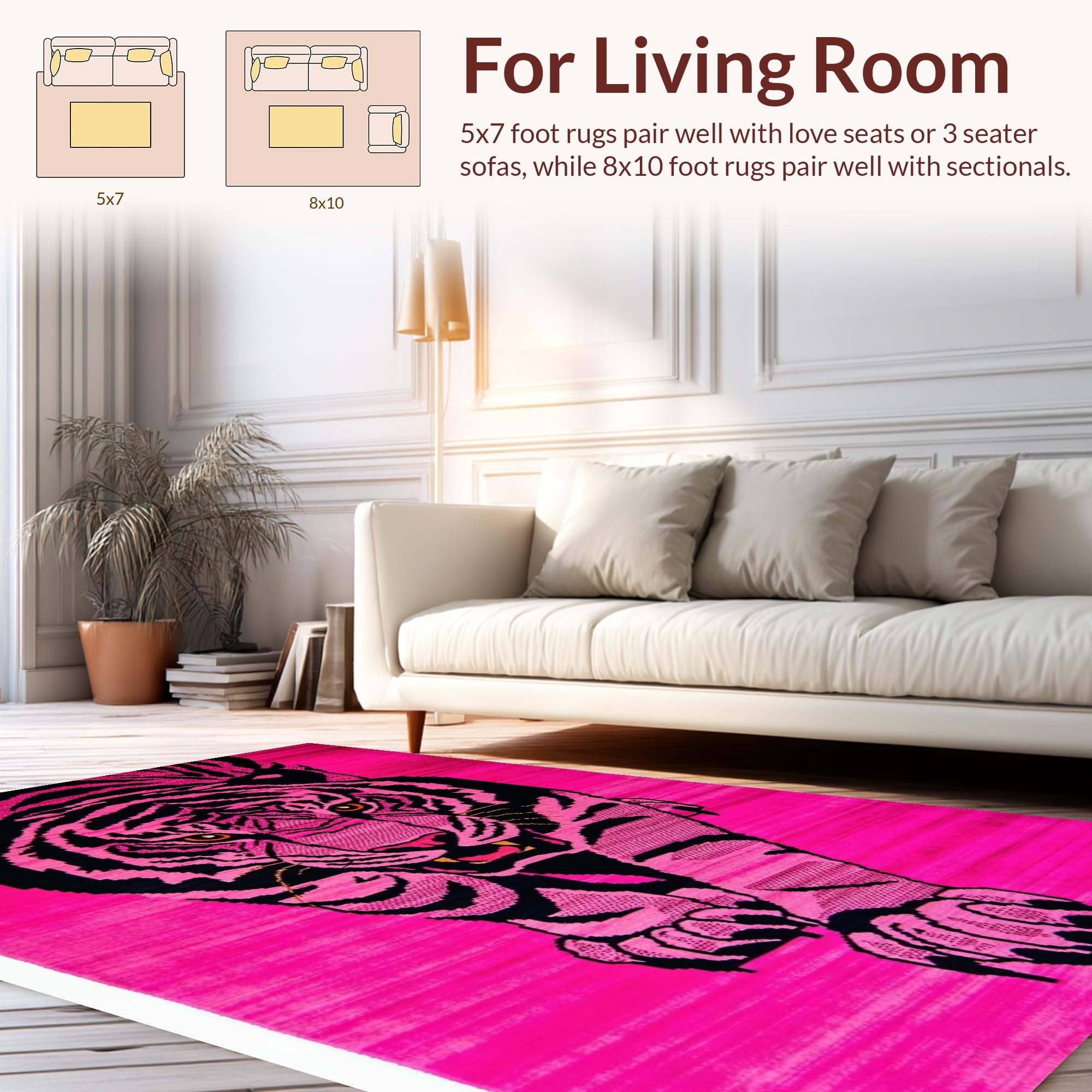 Ultra Soft Area Rug, Non Slip, Stain Resistant, Washable Area Rugs for Living Room, Bedroom, Lush Textured High Pile Aesthetic(Pink) Overview: