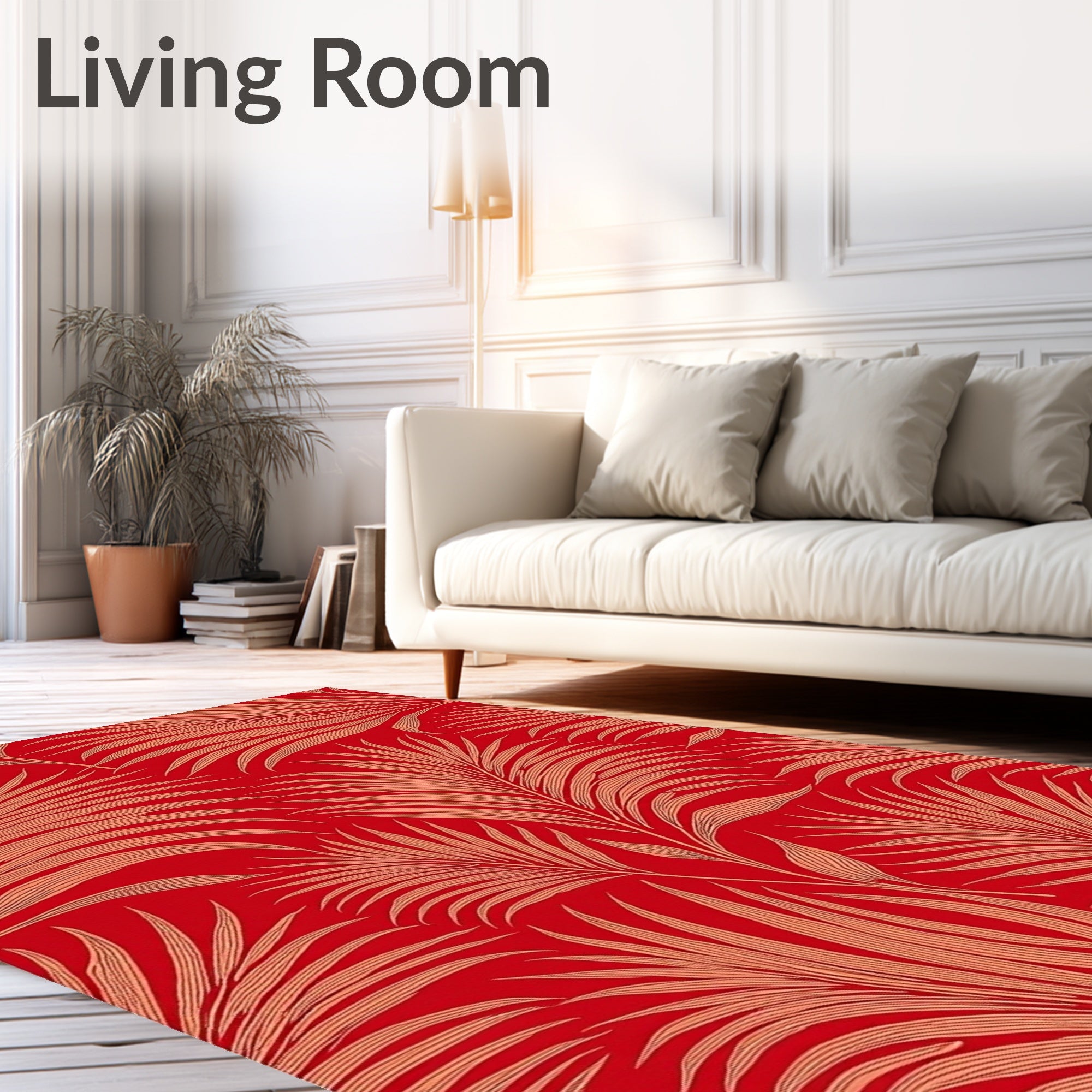 Flatwoven High Traffic Area Rug, Lush Tropical Oasis Featuring Exotic Palm Leaf, Non Slip, Stain Resistant, Washable Area Rugs for Living Room, Bedroom (Red) Overview: