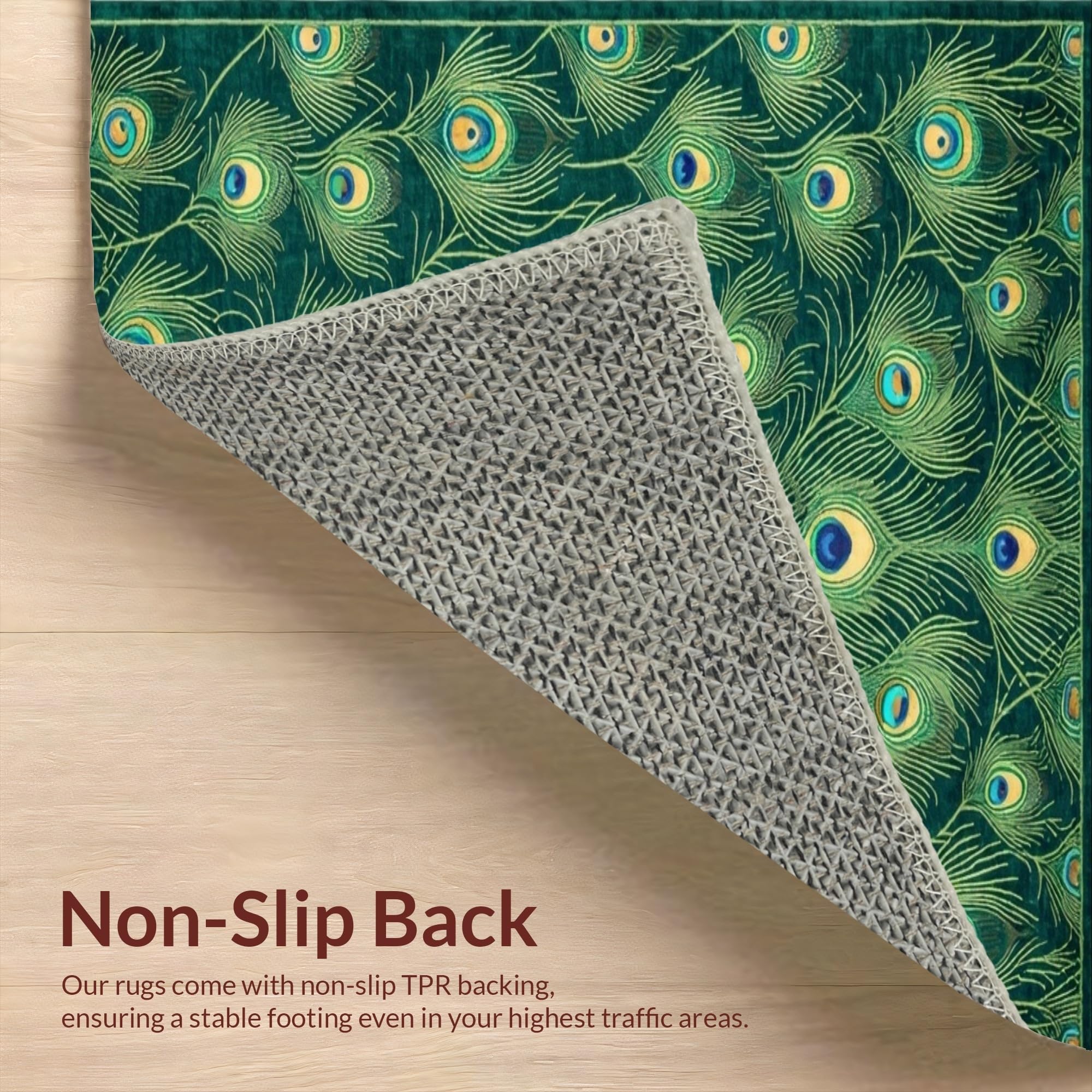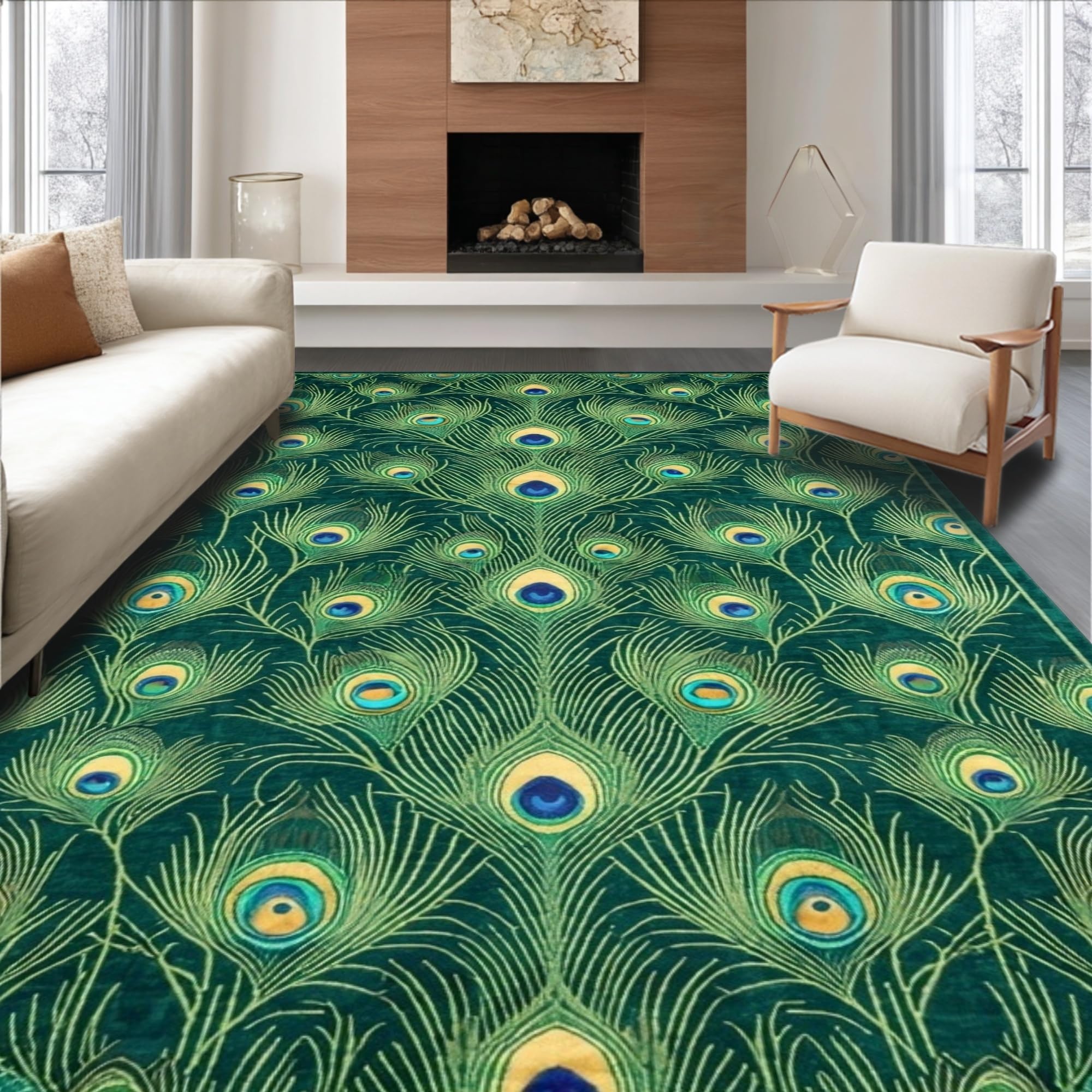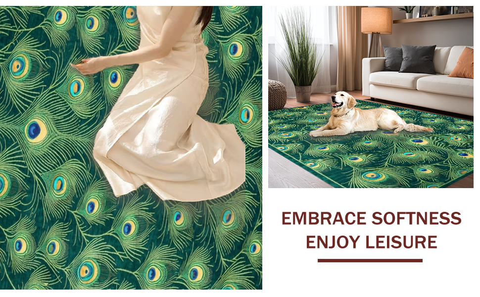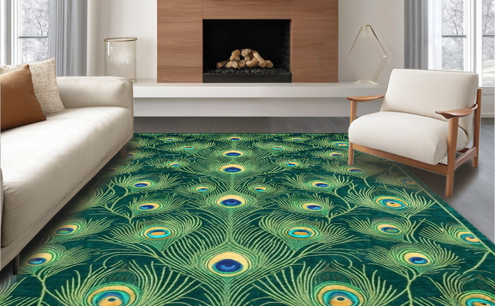 Ultra Soft Area Rug, Non Slip, Stain Resistant, Washable Area Rugs for Living Room, Bedroom, Lush Tropical Scalloped Edge Design(Green) Overview: