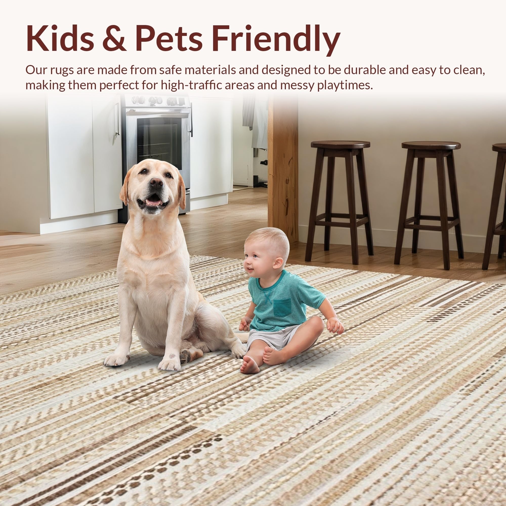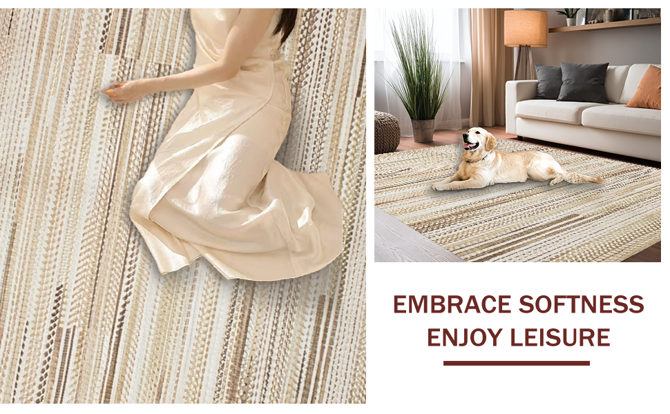 Ultra Soft Area Rug, Non Slip, Stain Resistant, Washable Area Rugs for Living Room, Bedroom, Luxe Chunky Woven Aesthetic(Beige) Overview: