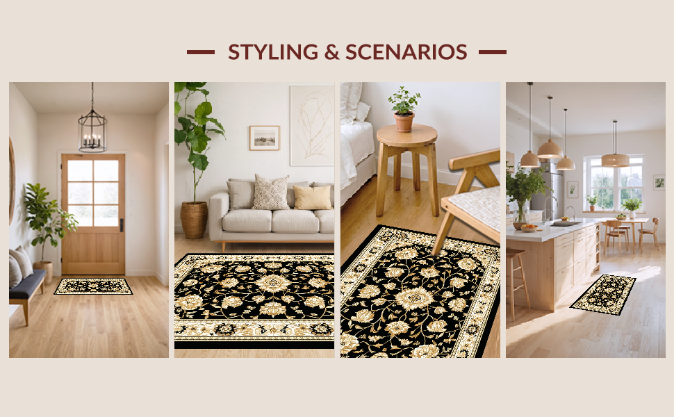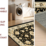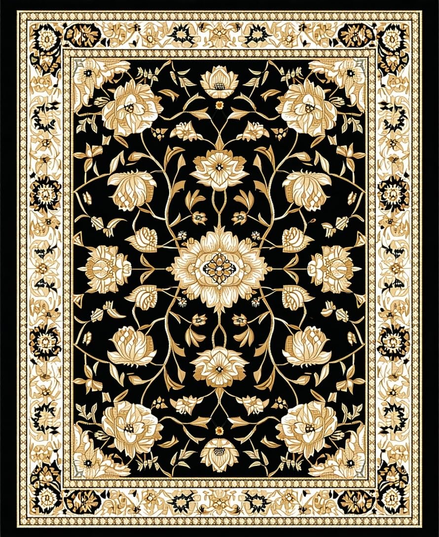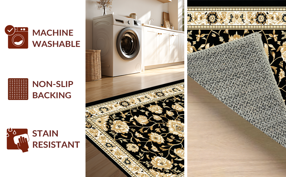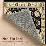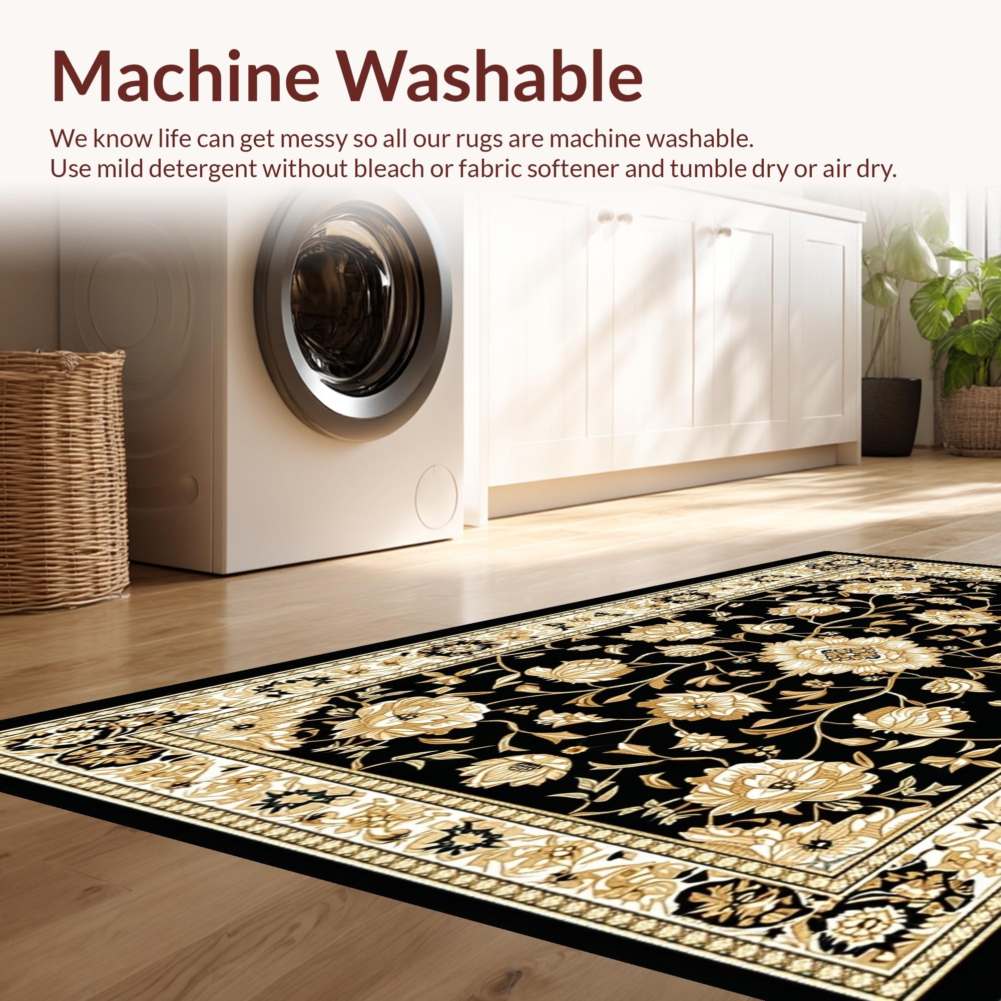 Ultra Soft Area Rug, Non Slip, Stain Resistant, Washable Area Rugs for Living Room, Bedroom, Luxe Gold Floral Aesthetic(Black) Overview: