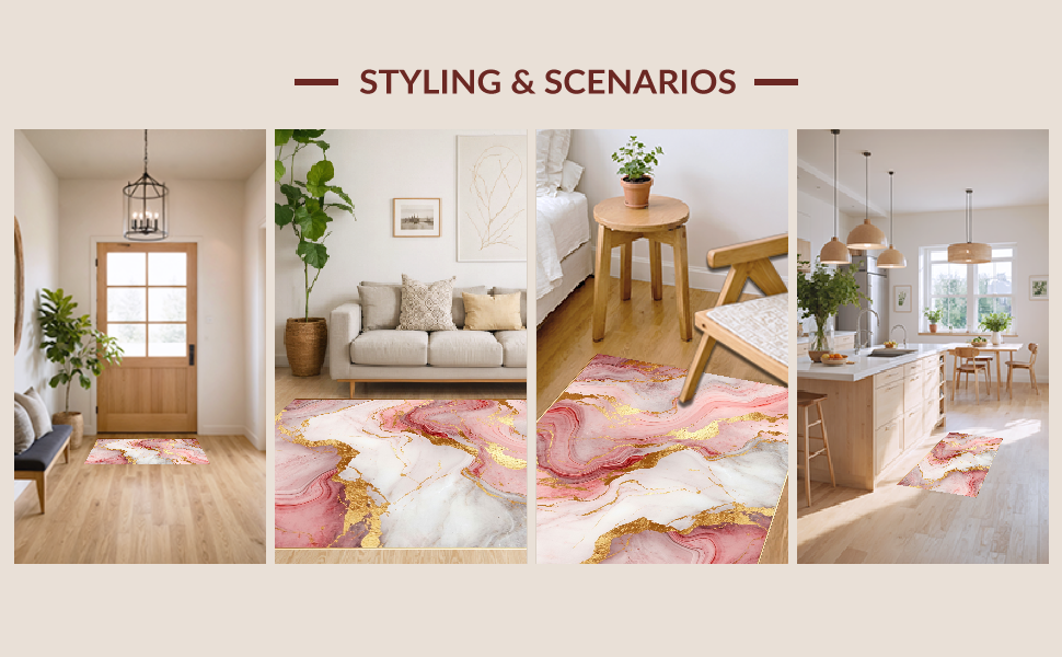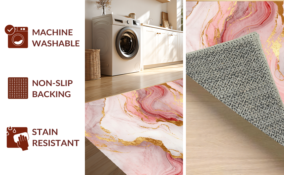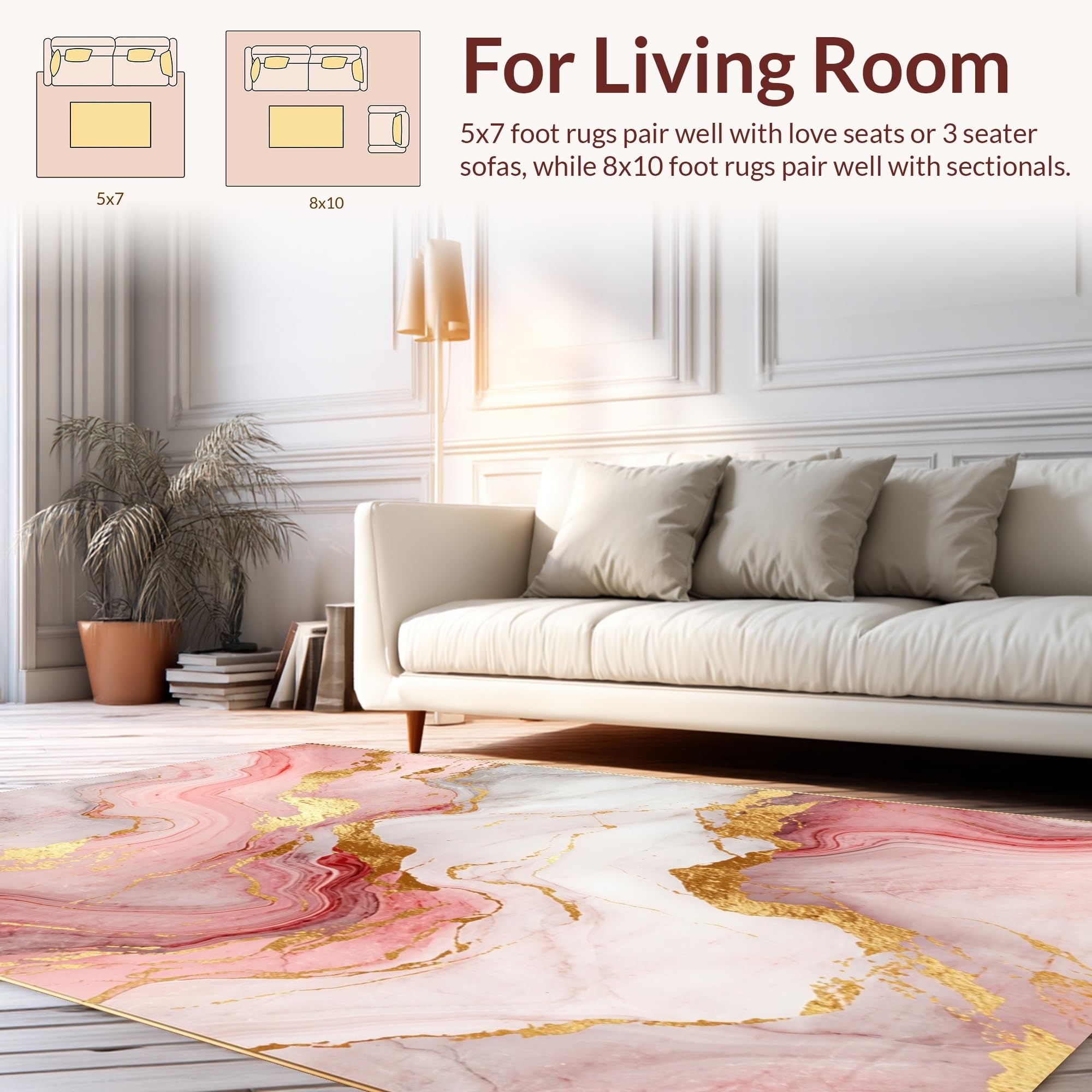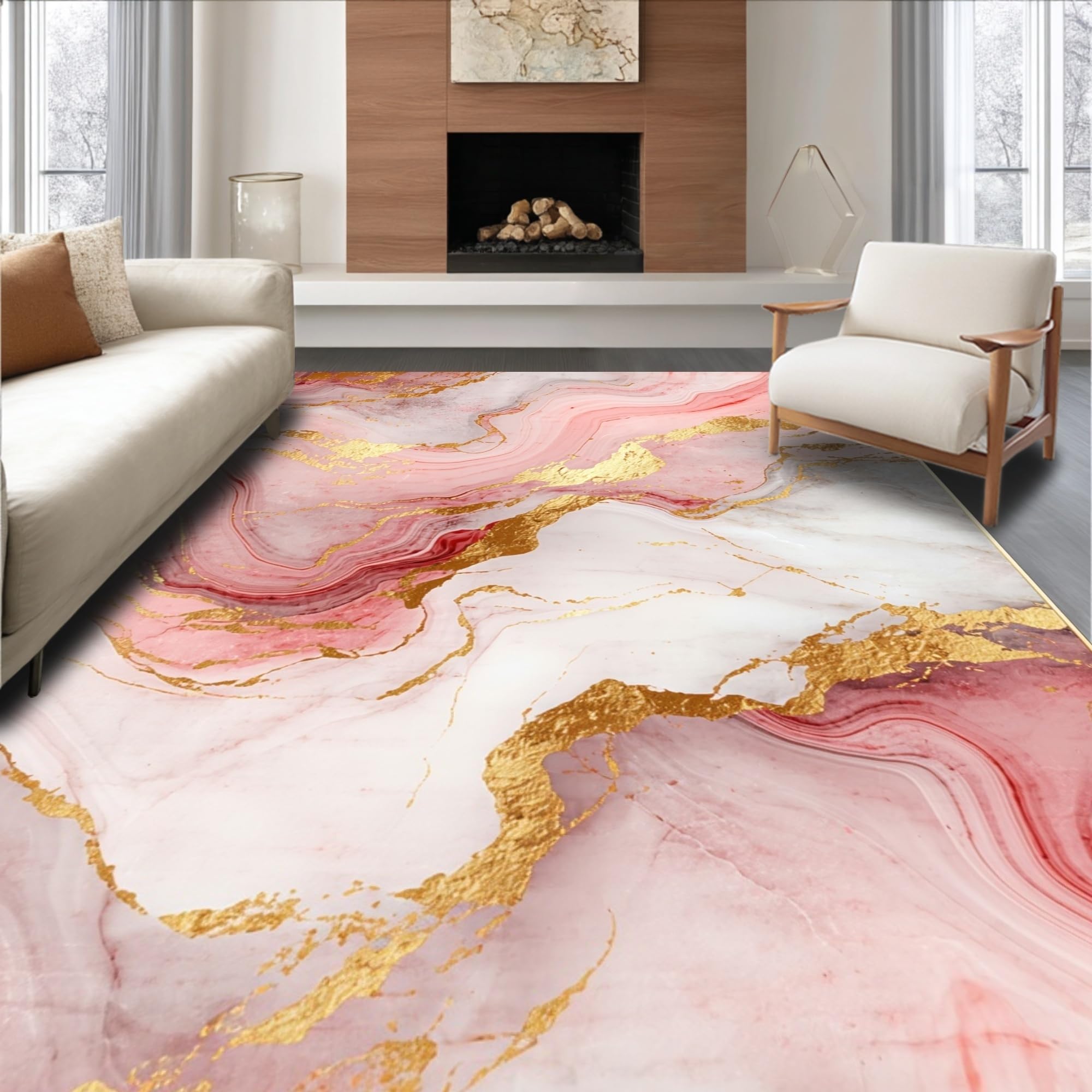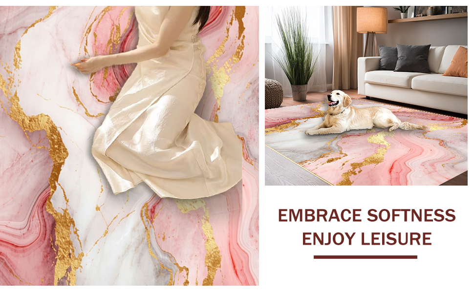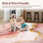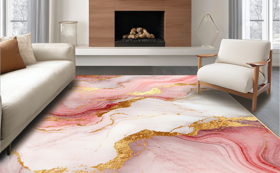 Ultra Soft Area Rug, Non Slip, Stain Resistant, Washable Area Rugs for Living Room, Bedroom, Luxe Soft Gold Pattern Play(Pink) Overview: