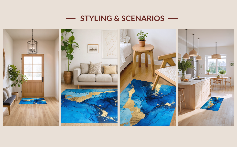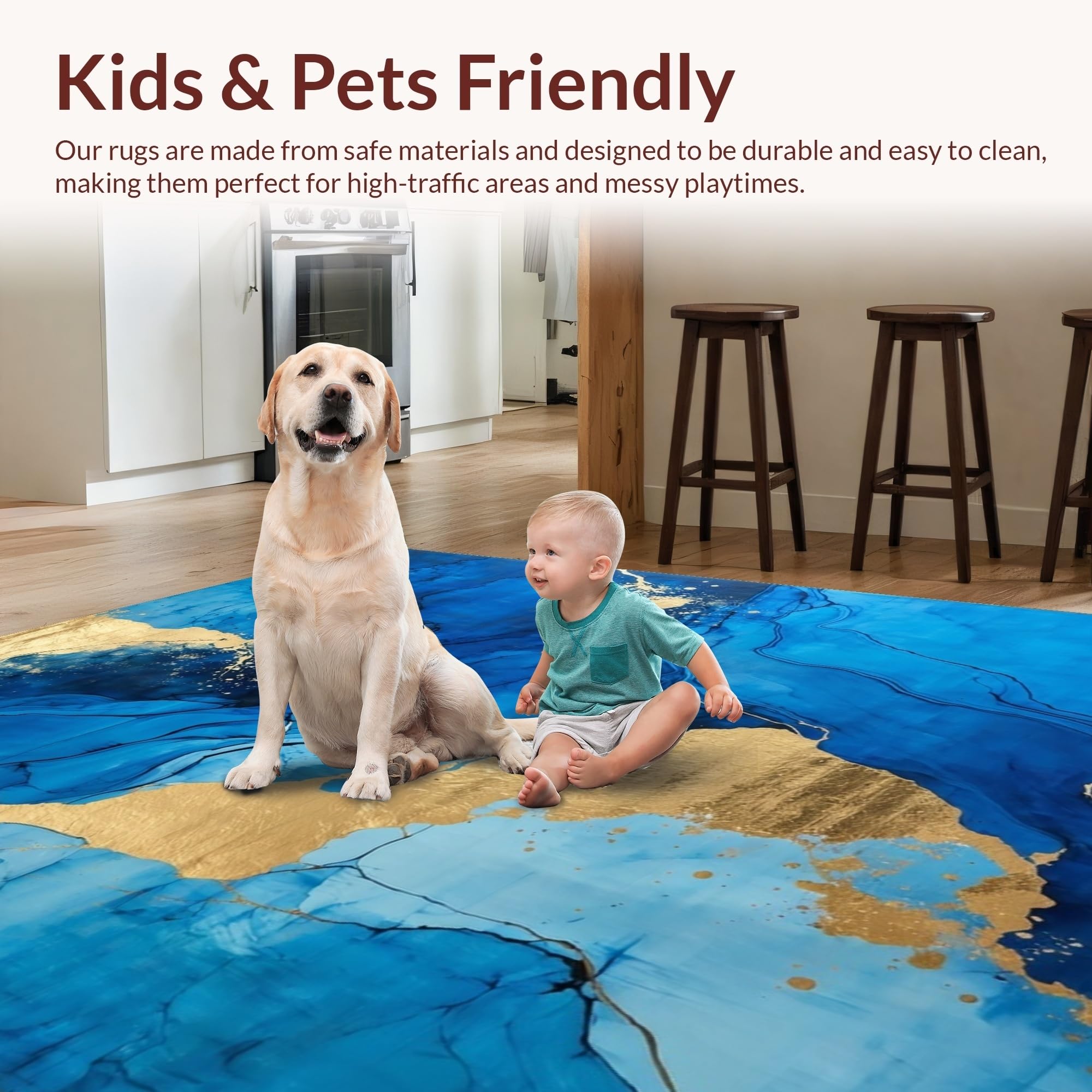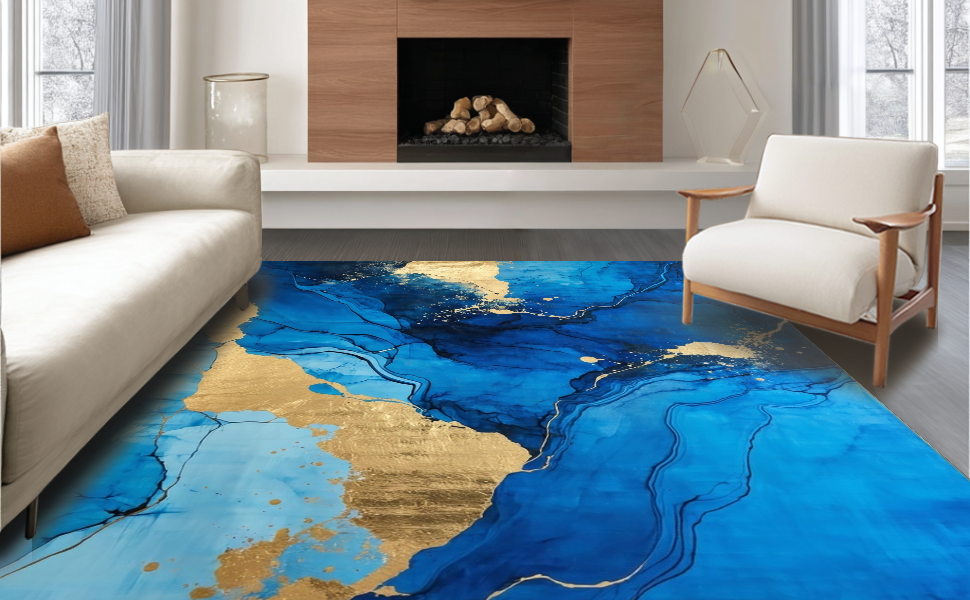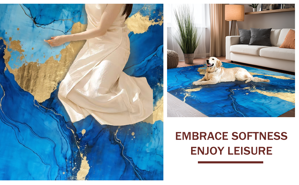 Ultra Soft Area Rug, Non Slip, Stain Resistant, Washable Area Rugs for Living Room, Bedroom, Luxurious Bold Color Fusion(Blue) Overview: