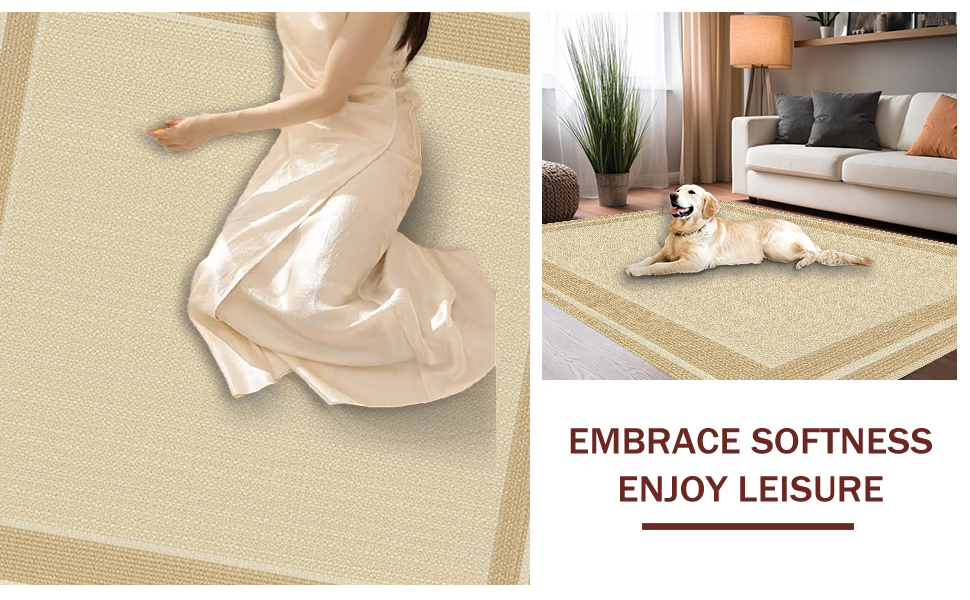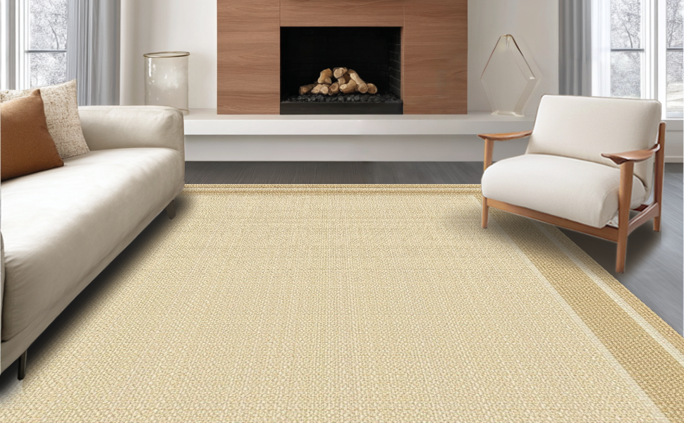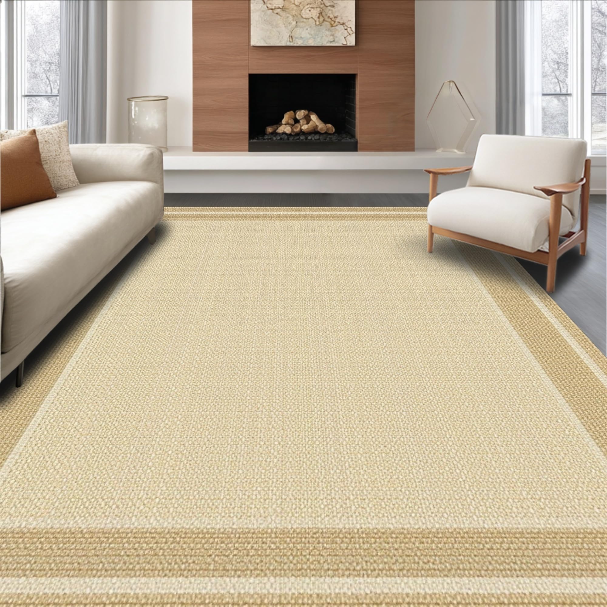 Ultra Soft Area Rug, Non Slip, Stain Resistant, Washable Area Rugs for Living Room, Bedroom, Luxurious Cream Herringbone Weave(Beige) Overview: