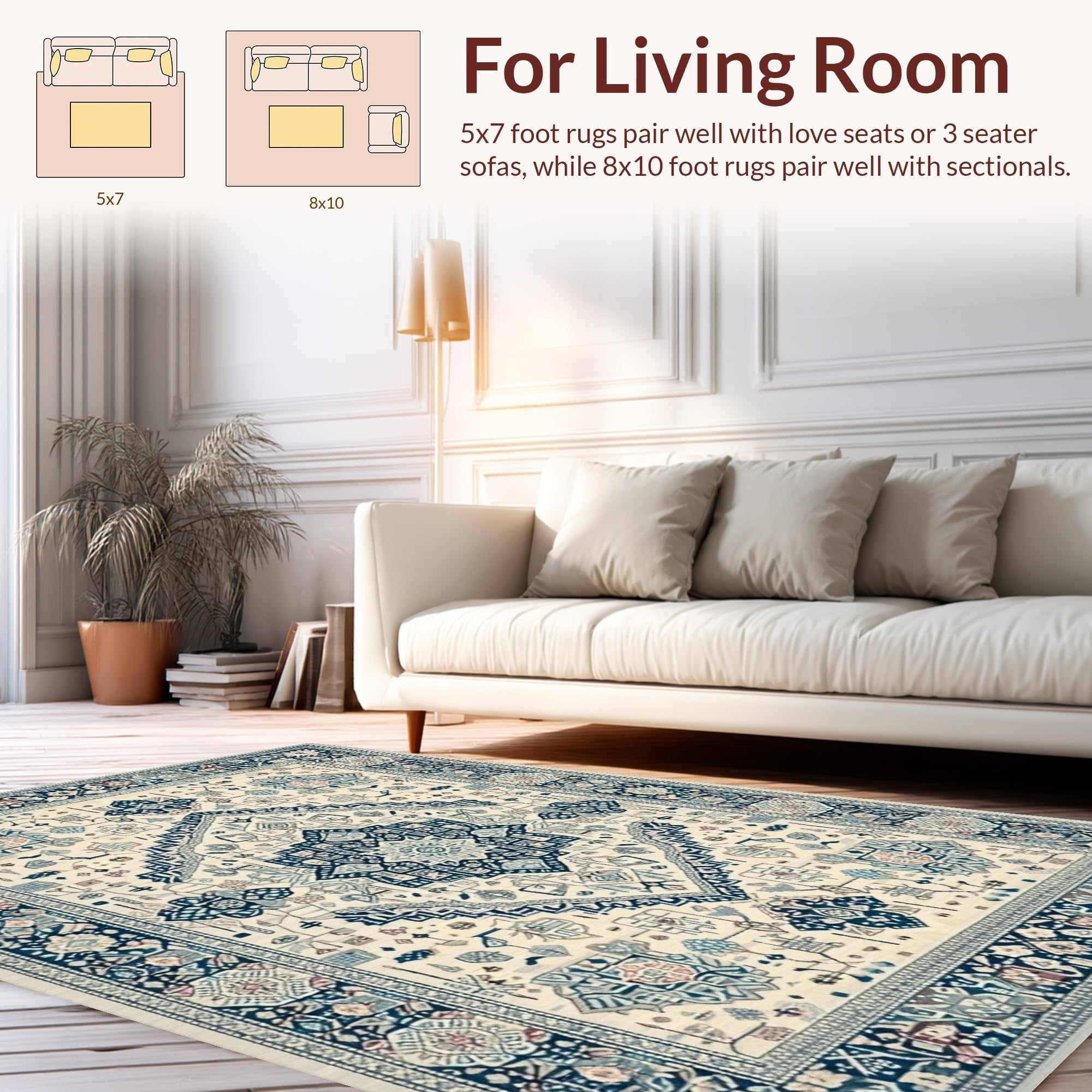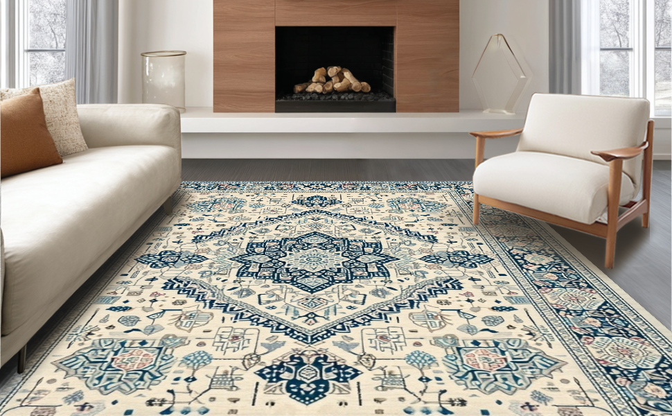 Ultra Soft Area Rug, Non Slip, Stain Resistant, Washable Area Rugs for Living Room, Bedroom, Luxurious Creamy Tiled Arrangement(Ivory) Overview: