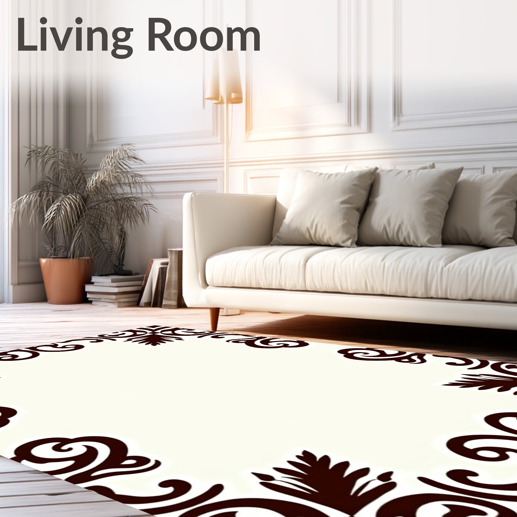 Ultra Soft Area Rug, Non Slip, Stain Resistant, Washable Area Rugs for Living Room, Bedroom, Luxurious Damask Scroll Ornate Filigree(Brown) Overview: