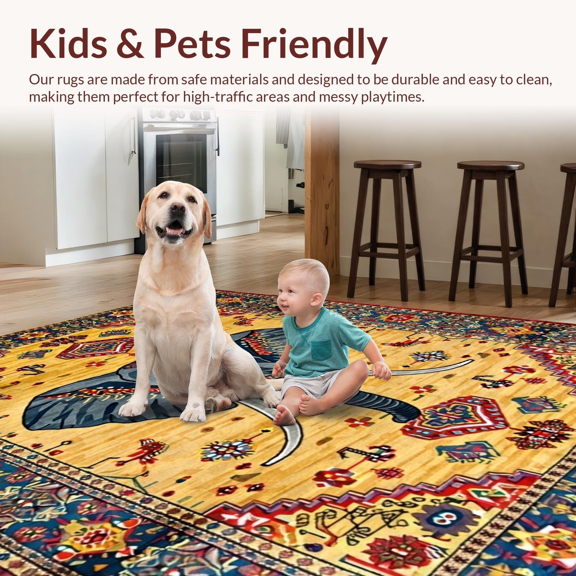 Ultra Soft Area Rug, Non Slip, Stain Resistant, Washable Area Rugs for Living Room, Bedroom, Luxurious Earth Tone Mandala(Yellow) Overview: