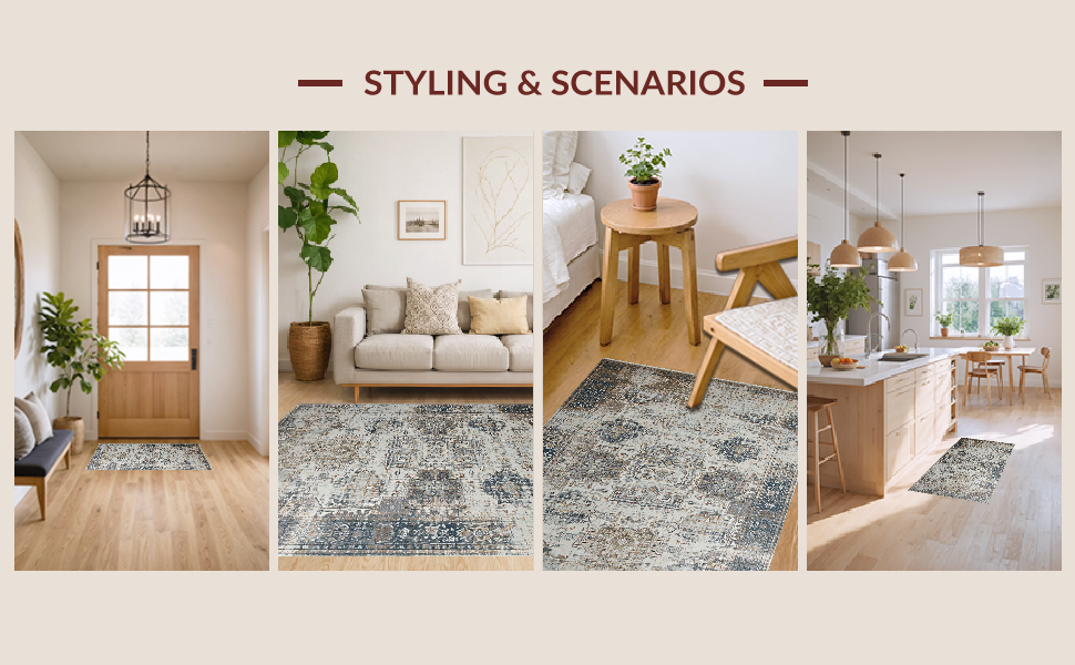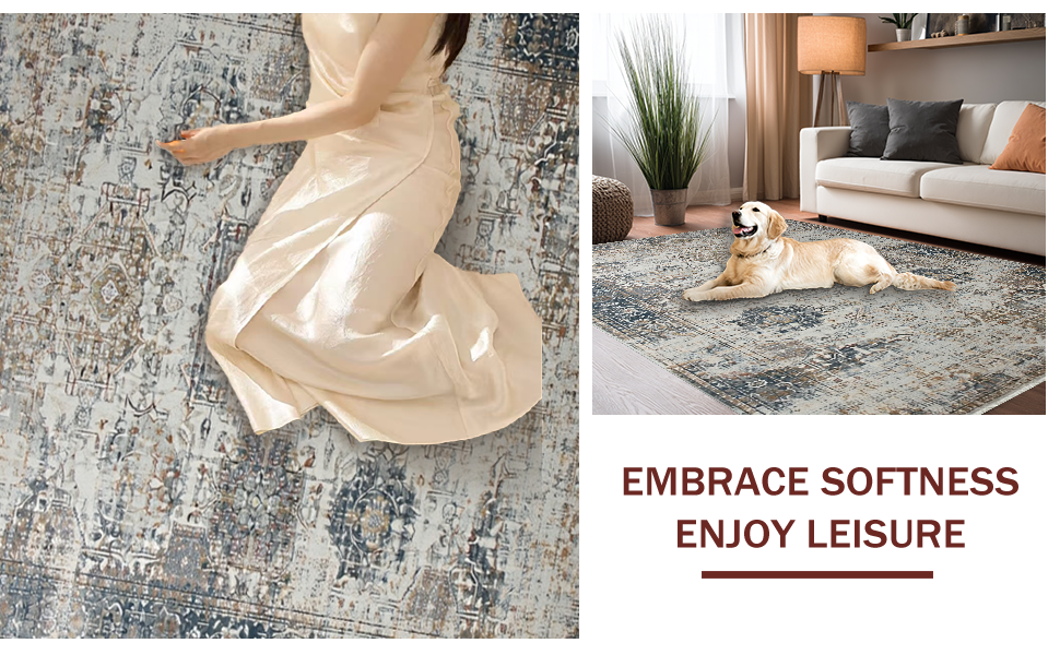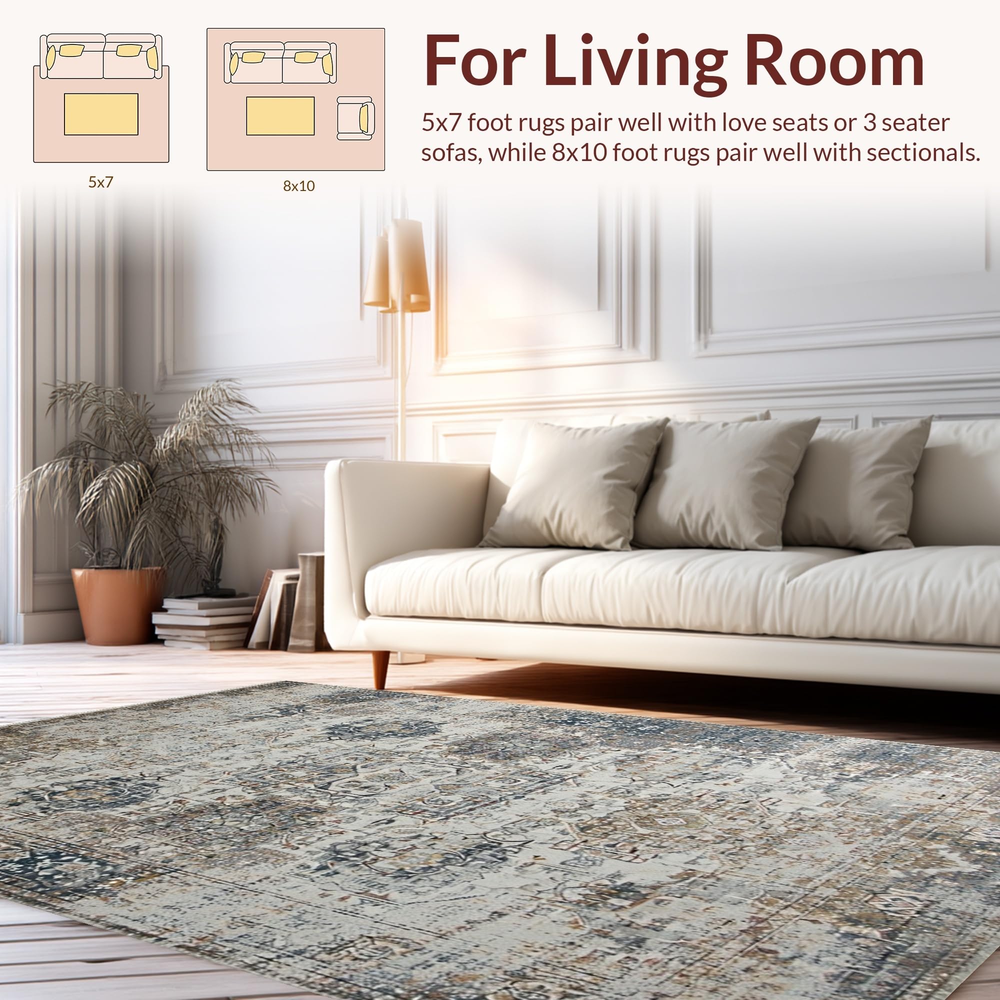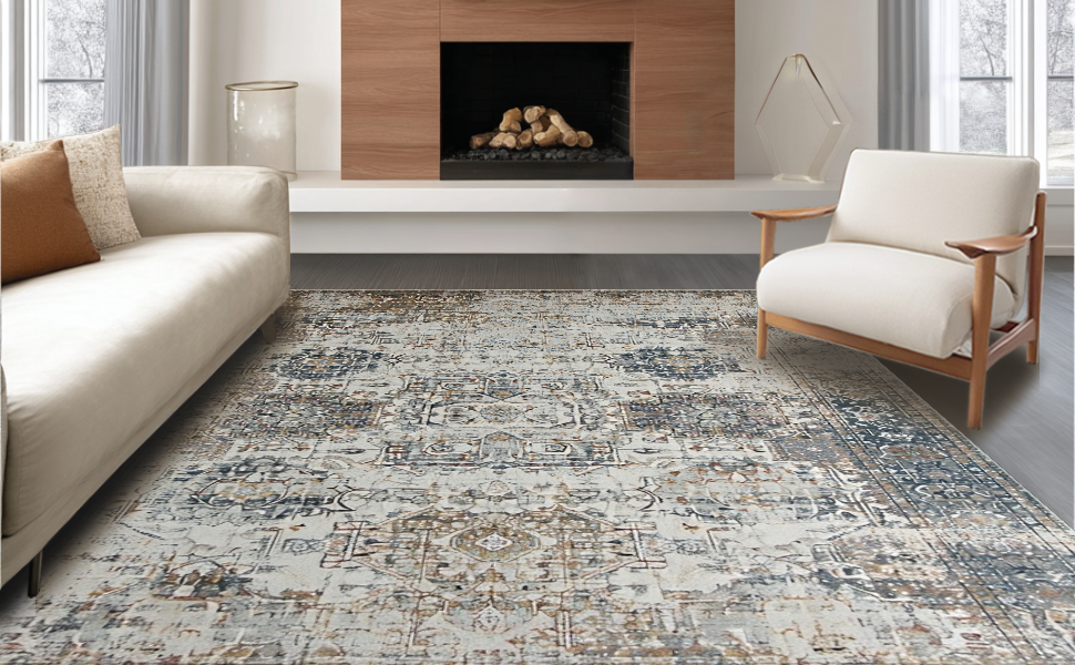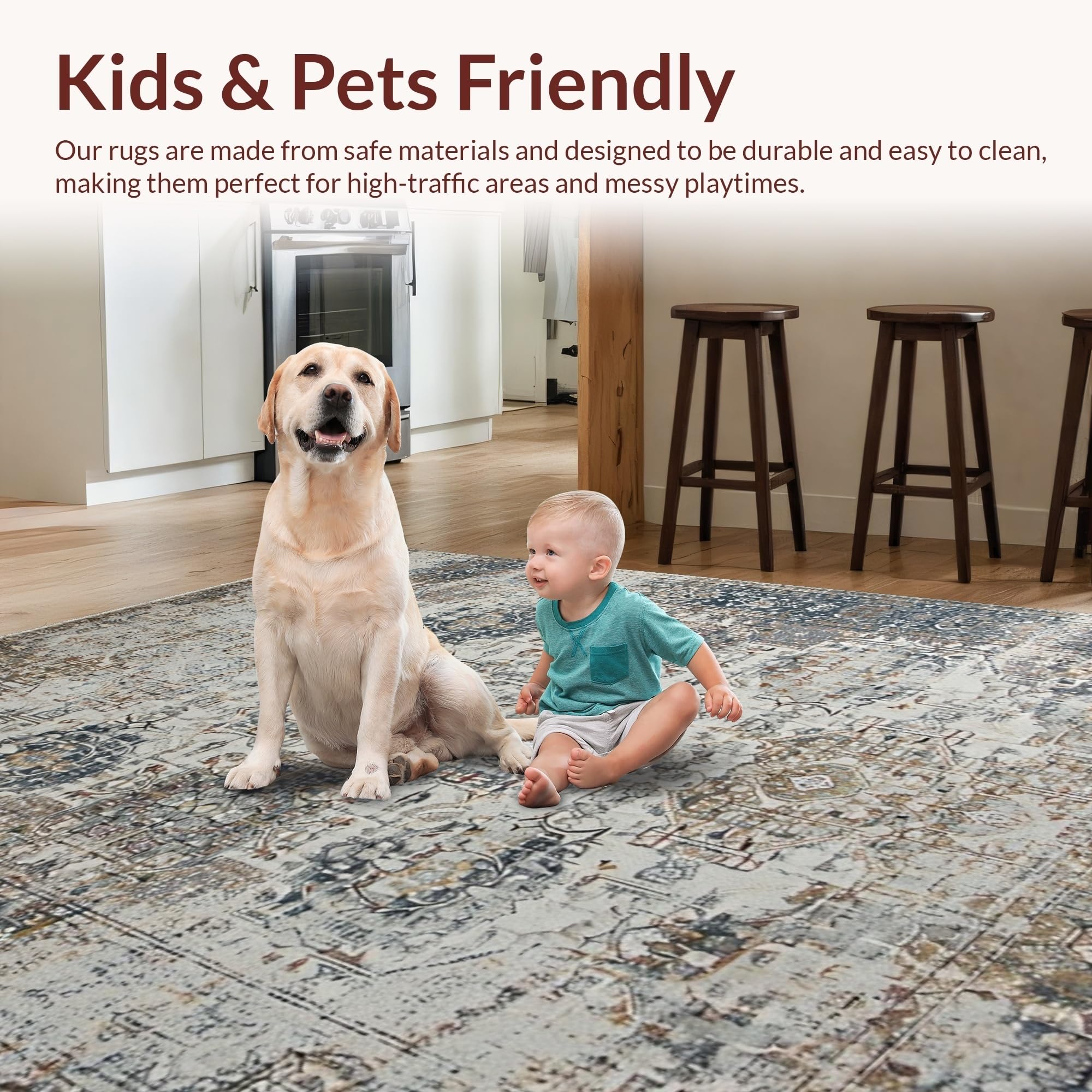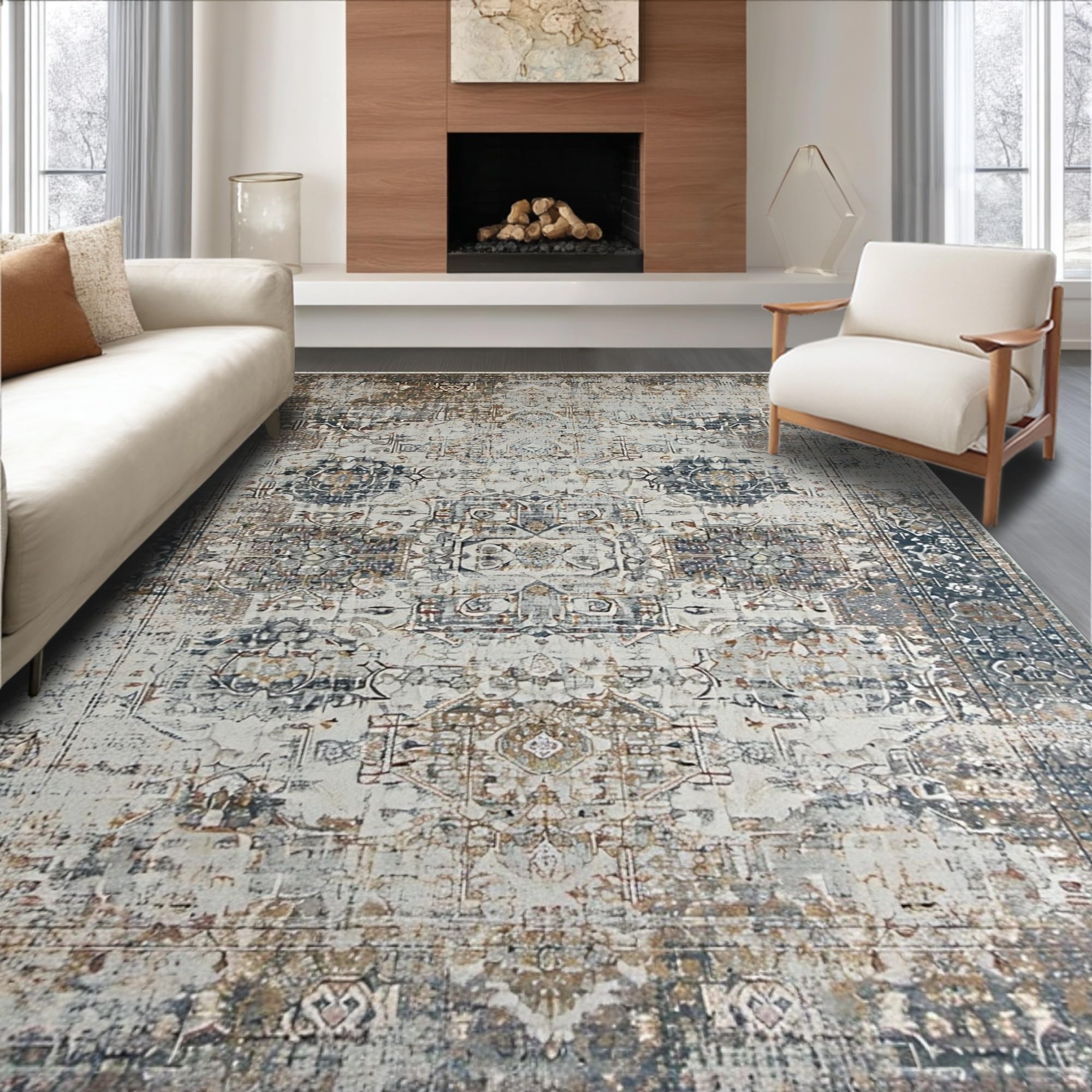 Ultra Soft Area Rug, Non Slip, Stain Resistant, Washable Area Rugs for Living Room, Bedroom, Luxurious Earth Tone Medallion Design(Gray) Overview: