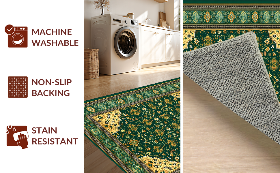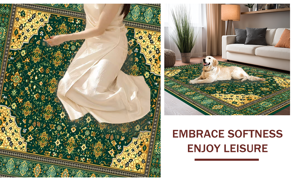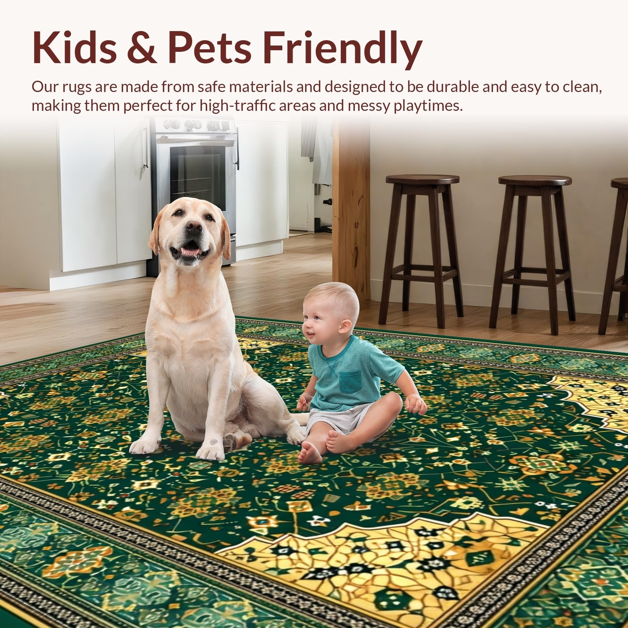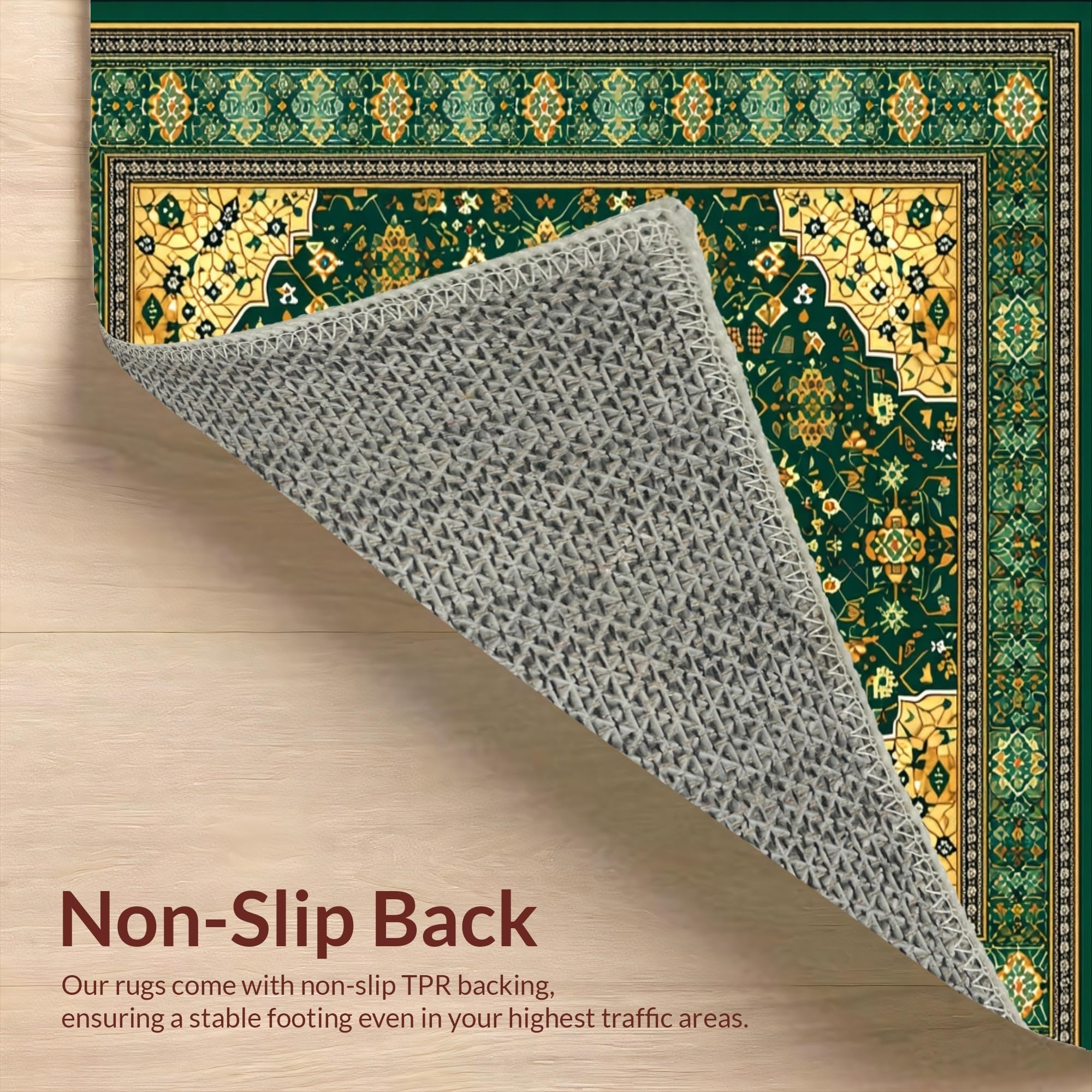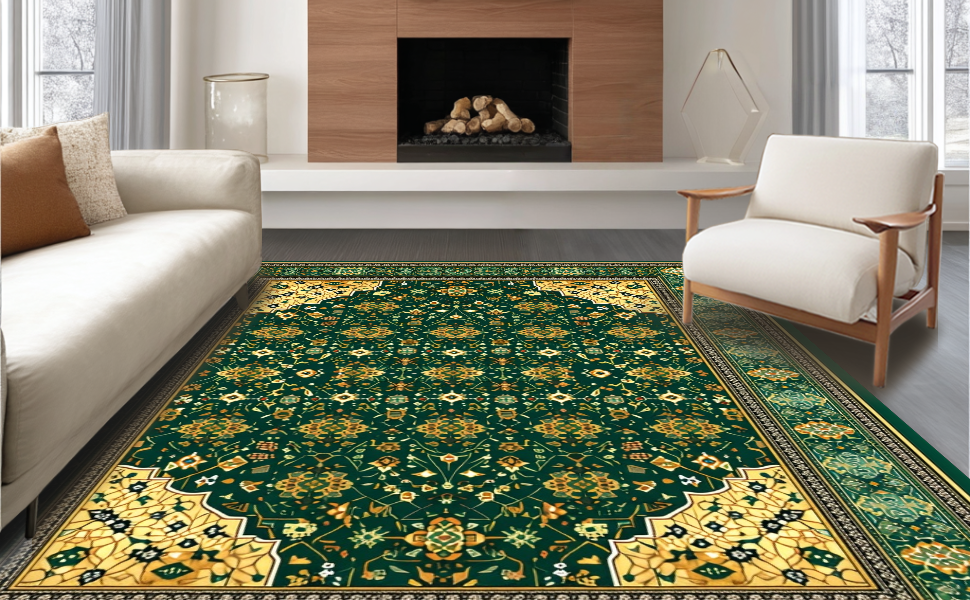 Ultra Soft Area Rug, Non Slip, Stain Resistant, Washable Area Rugs for Living Room, Bedroom, Luxurious Floral Ogee Arrangement(Green) Overview: