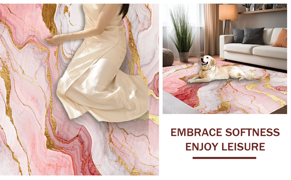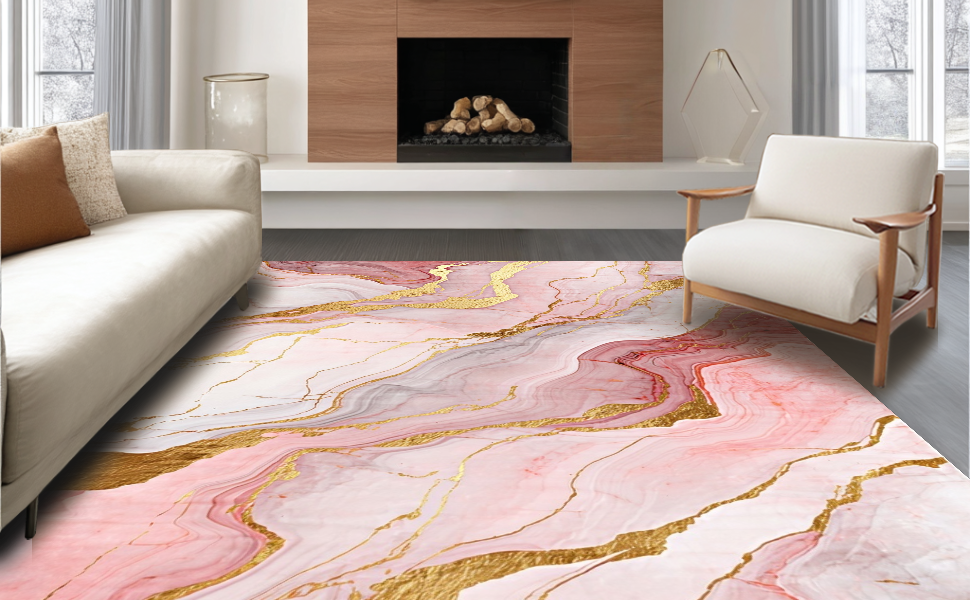 Ultra Soft Area Rug, Non Slip, Stain Resistant, Washable Area Rugs for Living Room, Bedroom, Luxurious Fluid Geometric Pattern(Pink) Overview:
