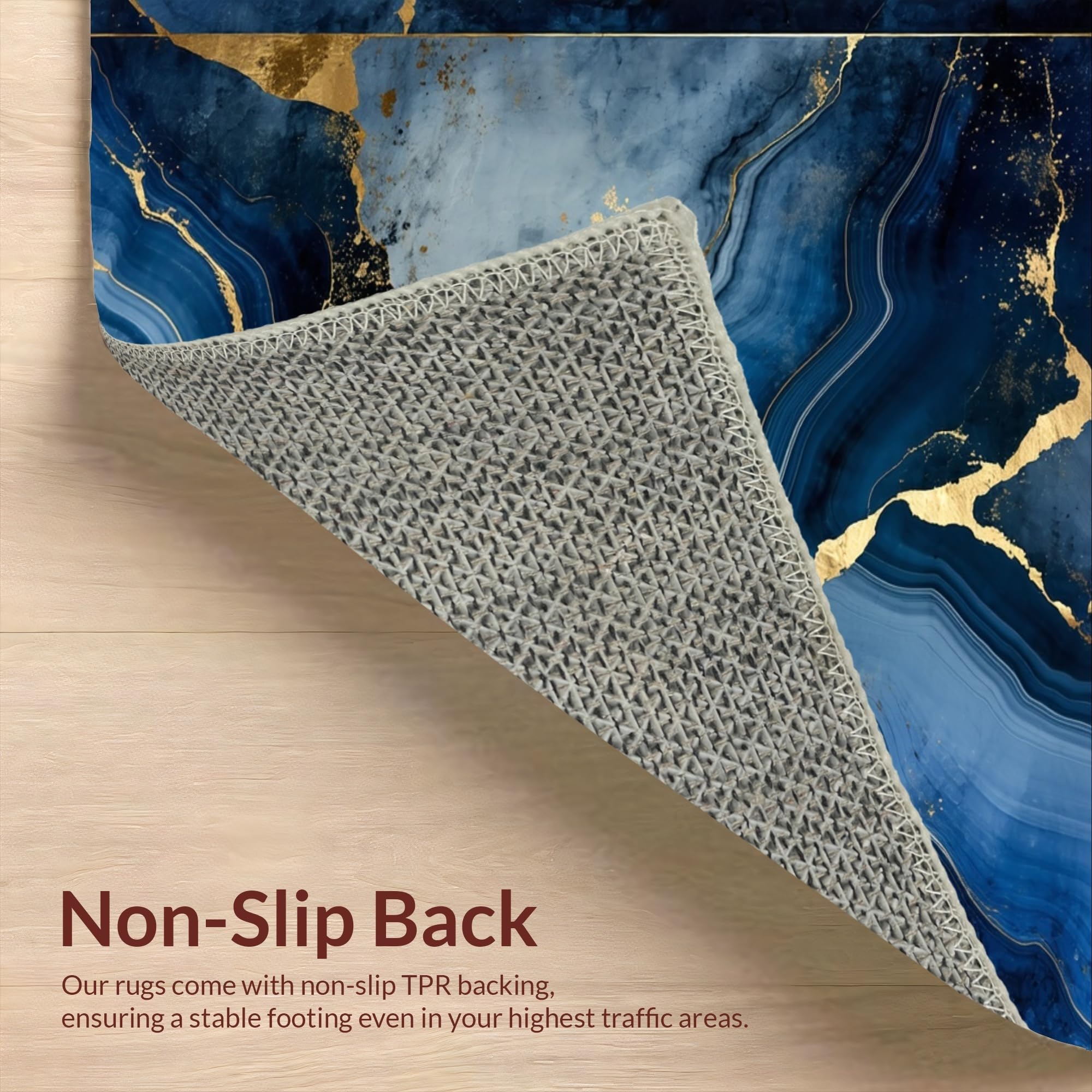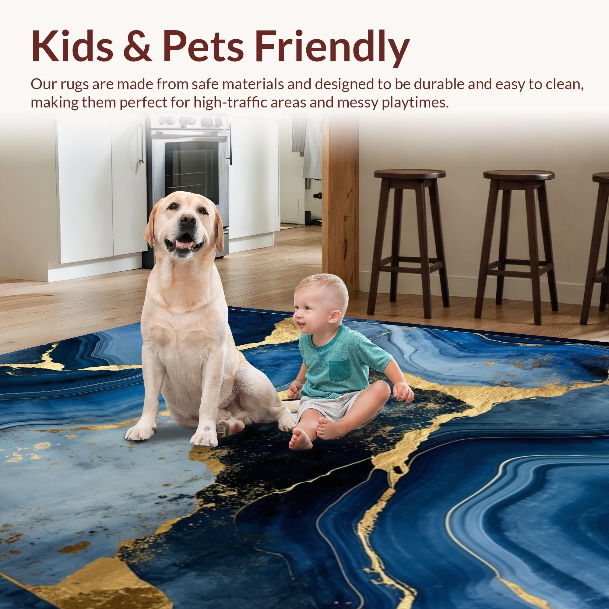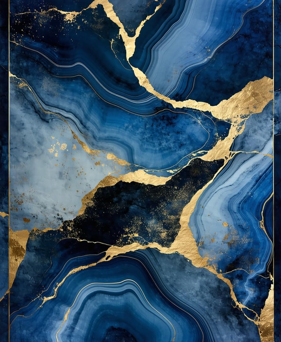 Ultra Soft Area Rug, Non Slip, Stain Resistant, Washable Area Rugs for Living Room, Bedroom, Luxurious Gold Abstract Waves(Blue) Overview: