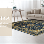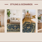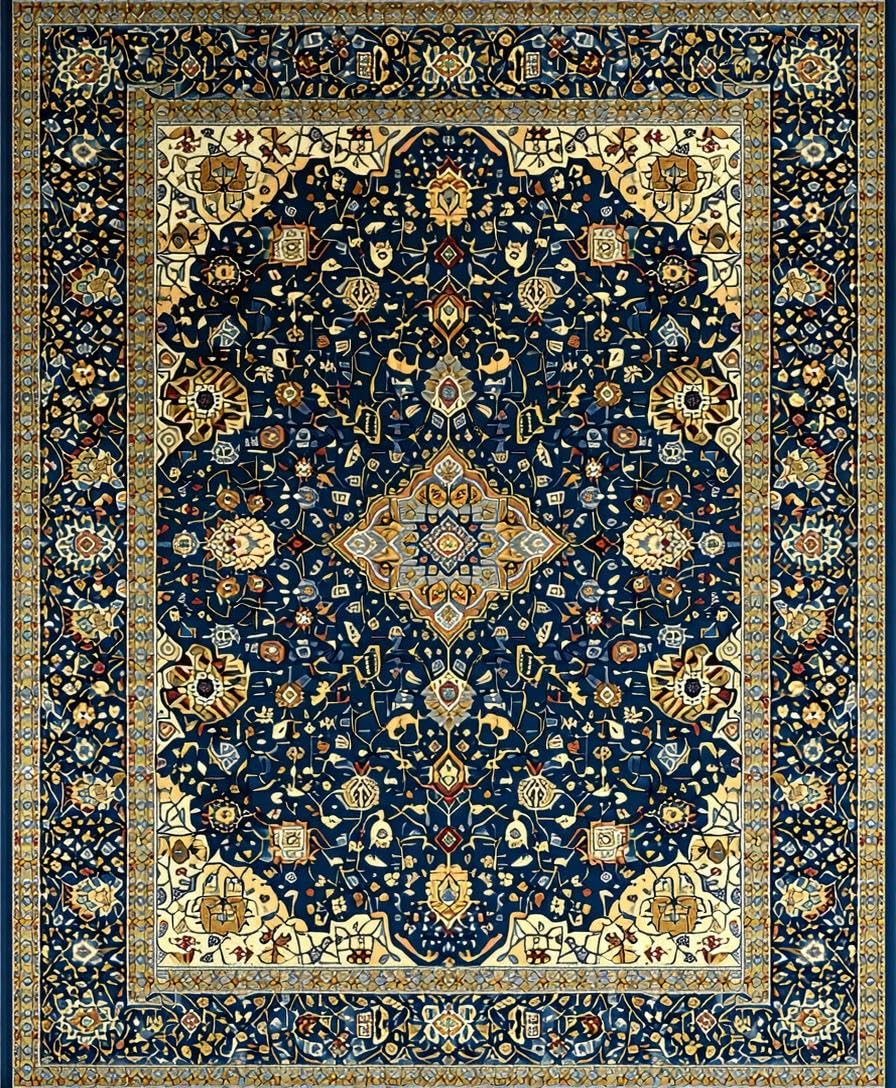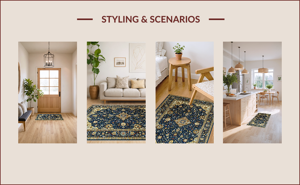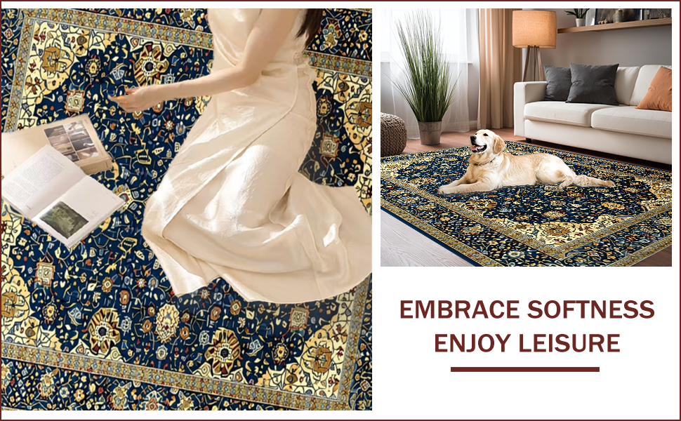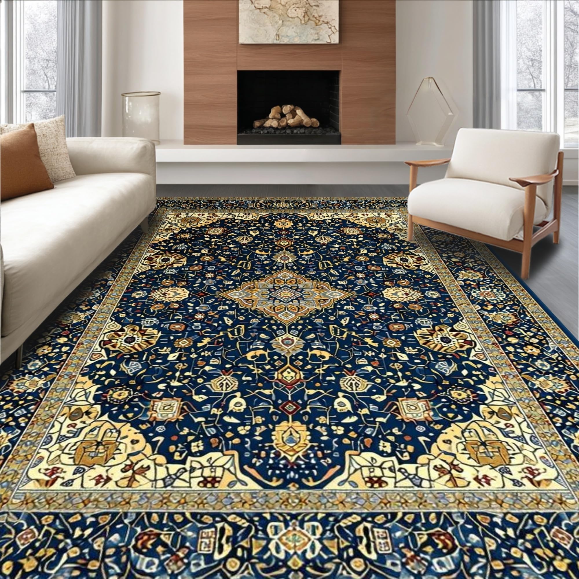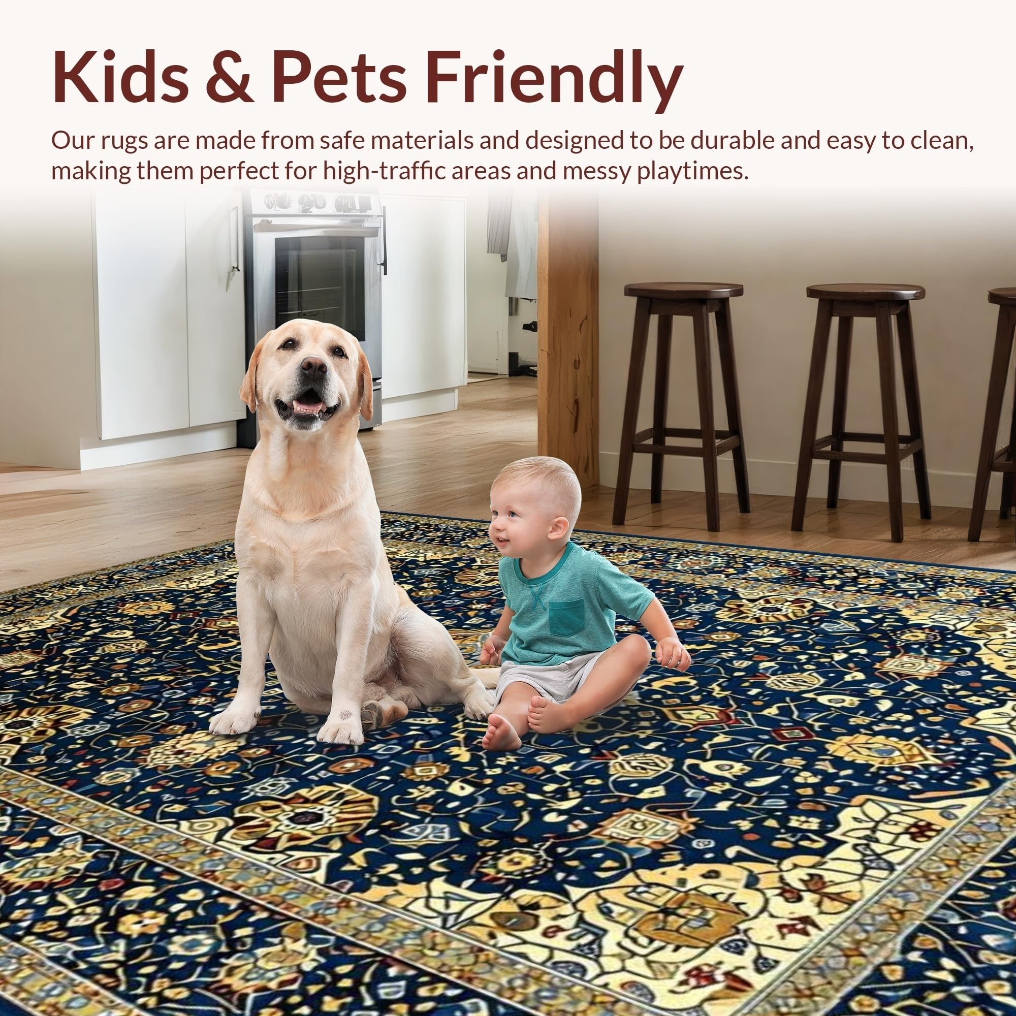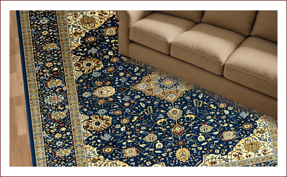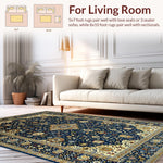 Ultra Soft Area Rug, Non Slip, Stain Resistant, Washable Area Rugs for Living Room, Bedroom, Luxurious Gold Accented Design(Blue) Overview: