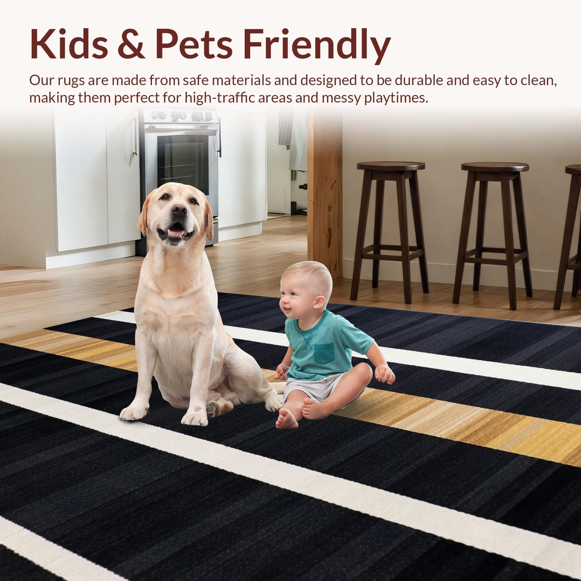 Ultra Soft Area Rug, Non Slip, Stain Resistant, Washable Area Rugs for Living Room, Bedroom, Luxurious Graphic Patterned Appeal(Black) Overview: