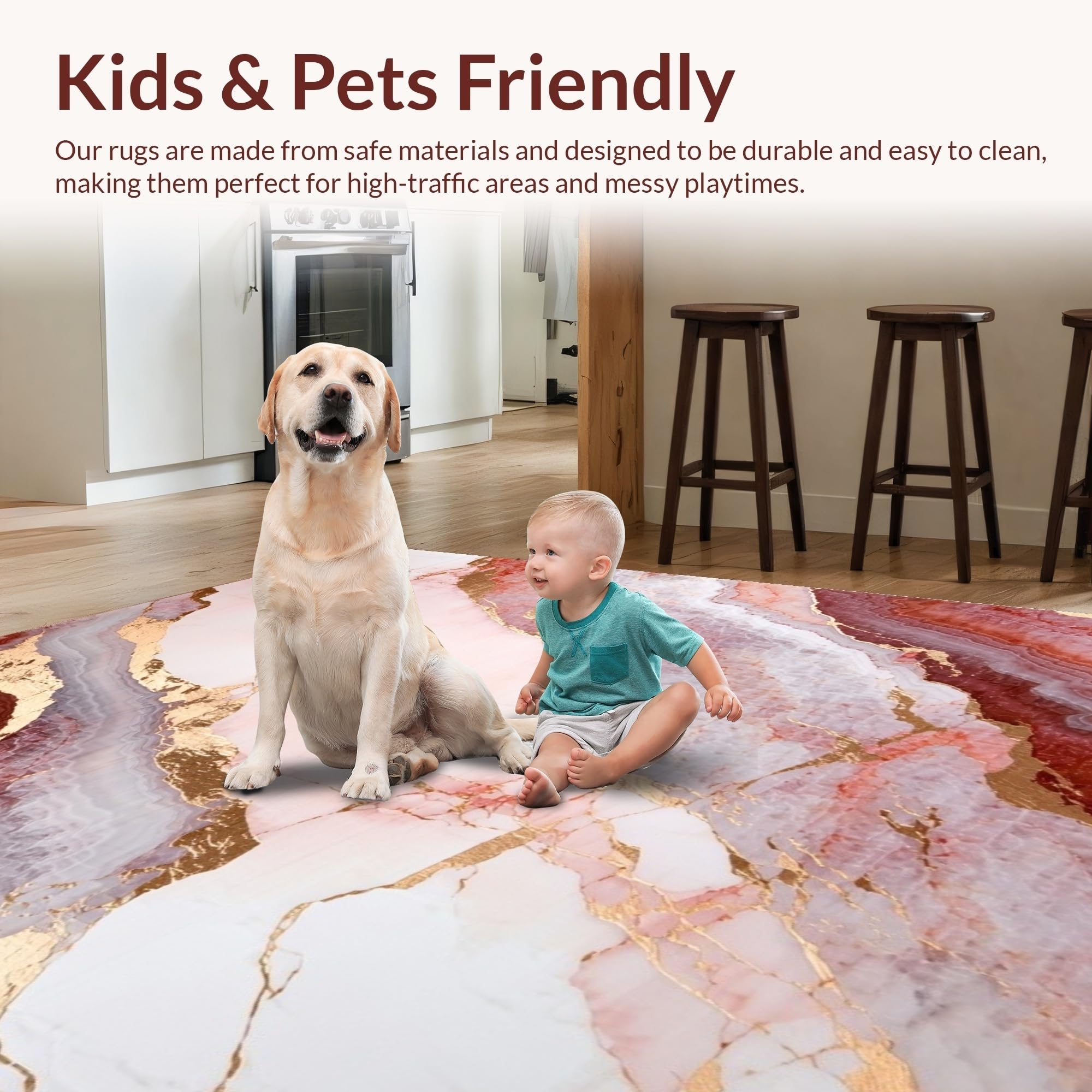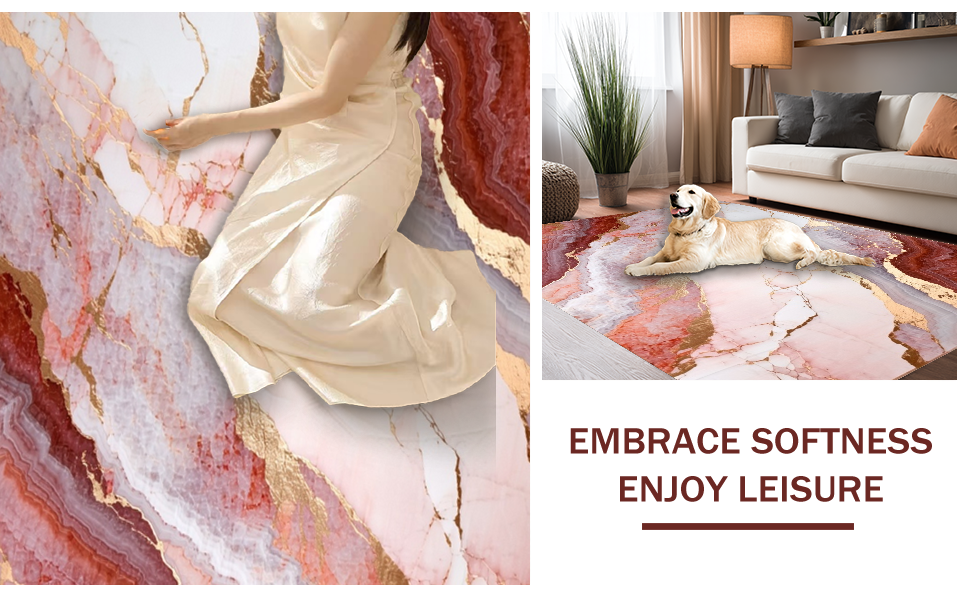 Ultra Soft Area Rug, Non Slip, Stain Resistant, Washable Area Rugs for Living Room, Bedroom, Luxurious Liquid Marble Pink Fusion(Red) Overview: