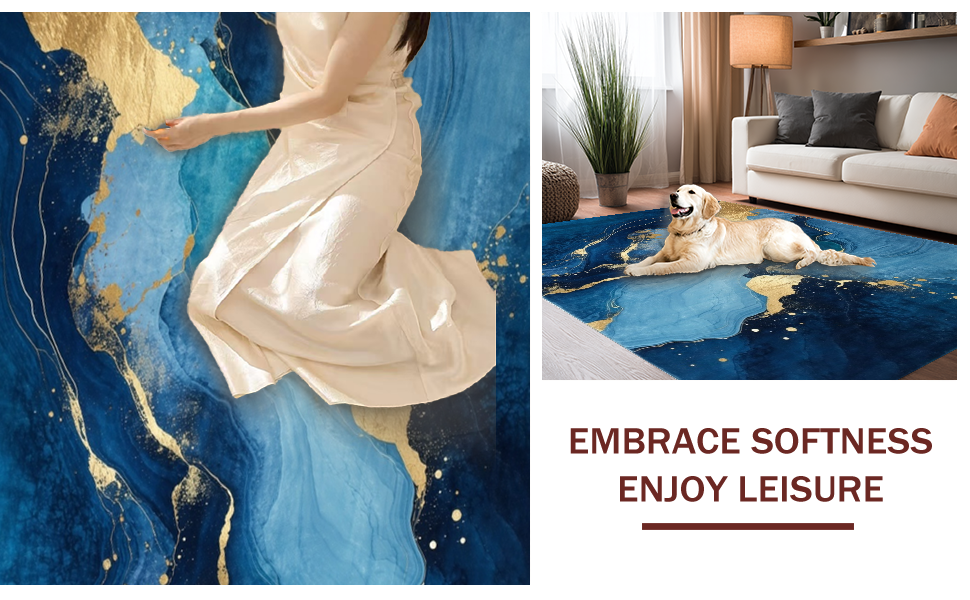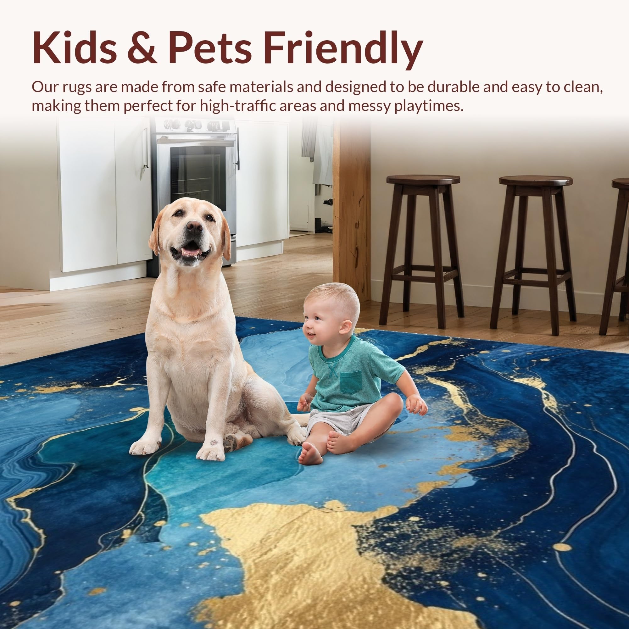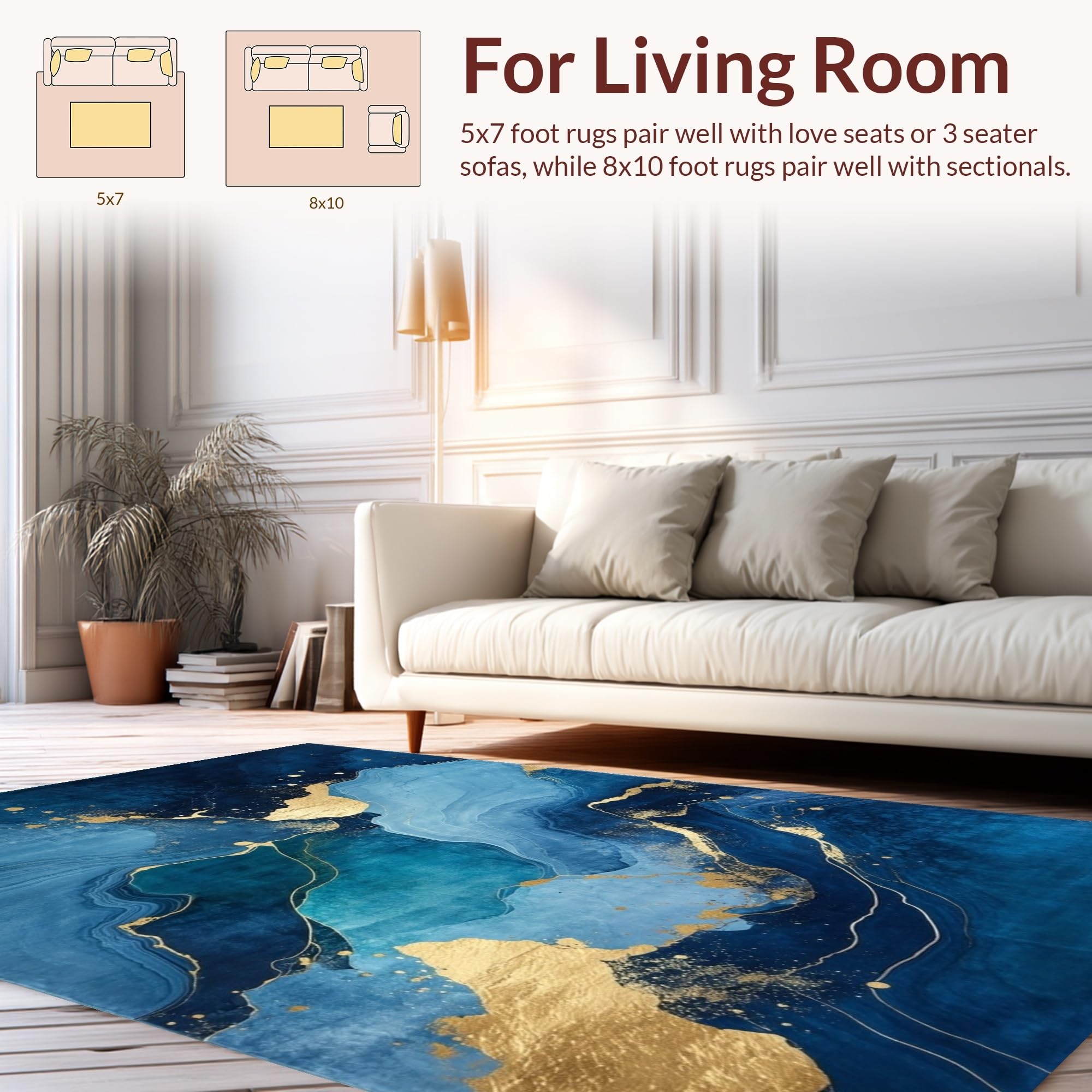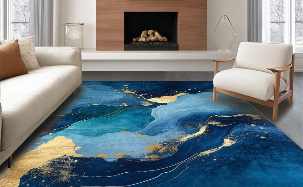 Ultra Soft Area Rug, Non Slip, Stain Resistant, Washable Area Rugs for Living Room, Bedroom, Luxurious Marble Swirl Aesthetic(Blue) Overview: