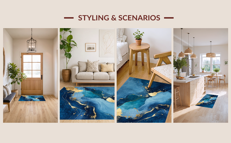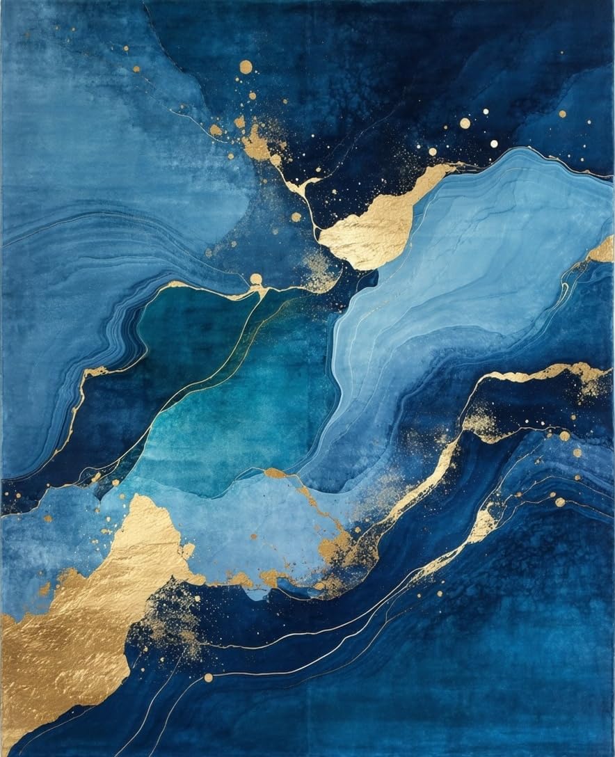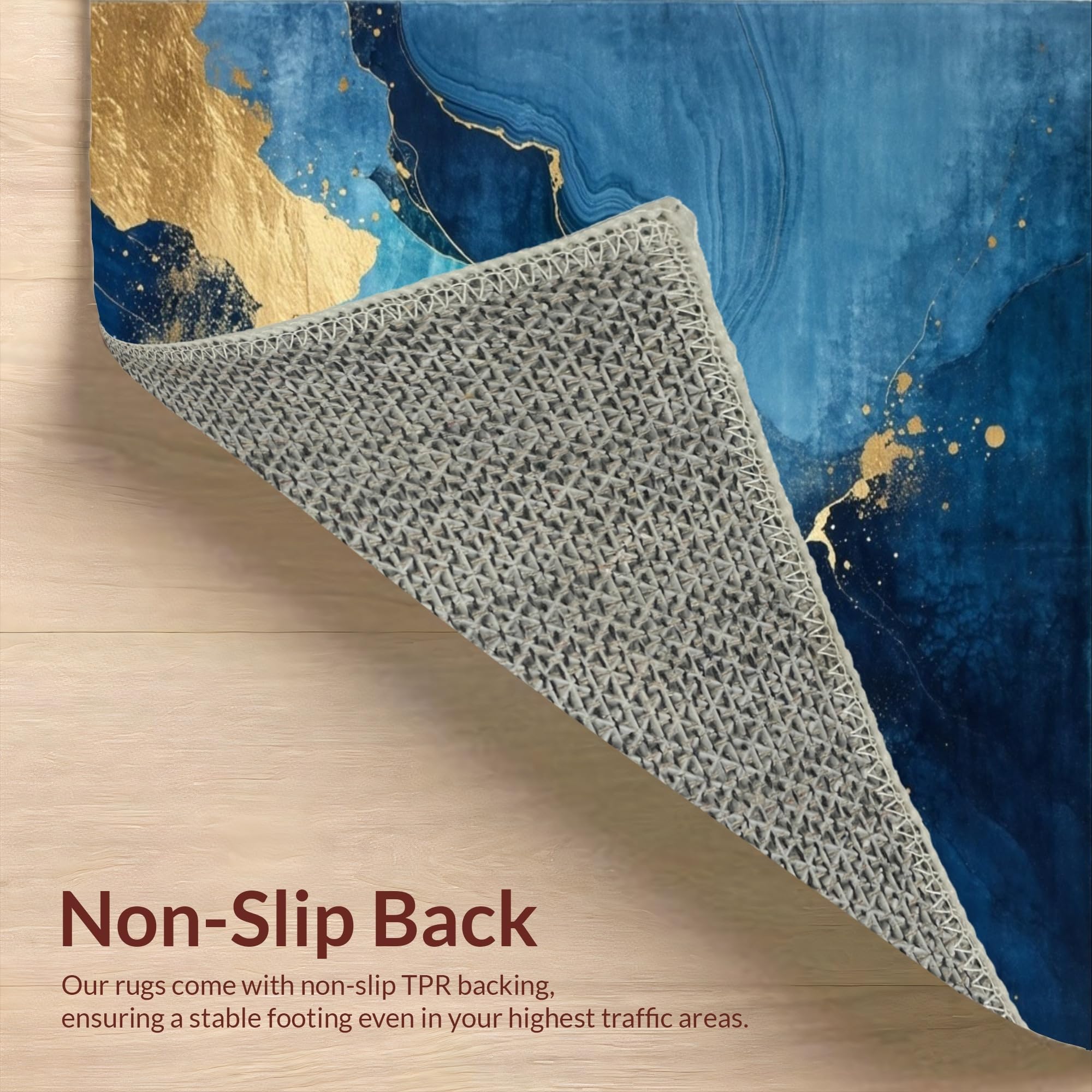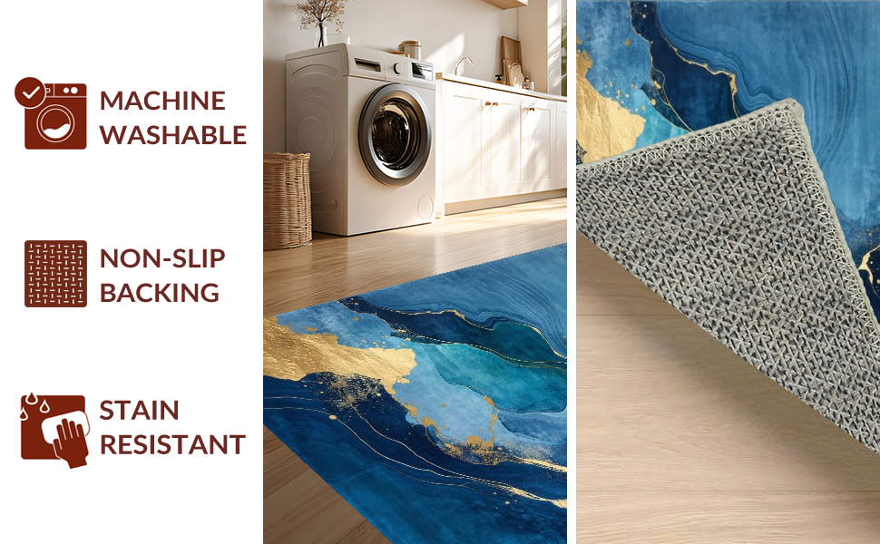 Ultra Soft Area Rug, Non Slip, Stain Resistant, Washable Area Rugs for Living Room, Bedroom, Luxurious Marble Swirl Aesthetic(Blue) Overview: