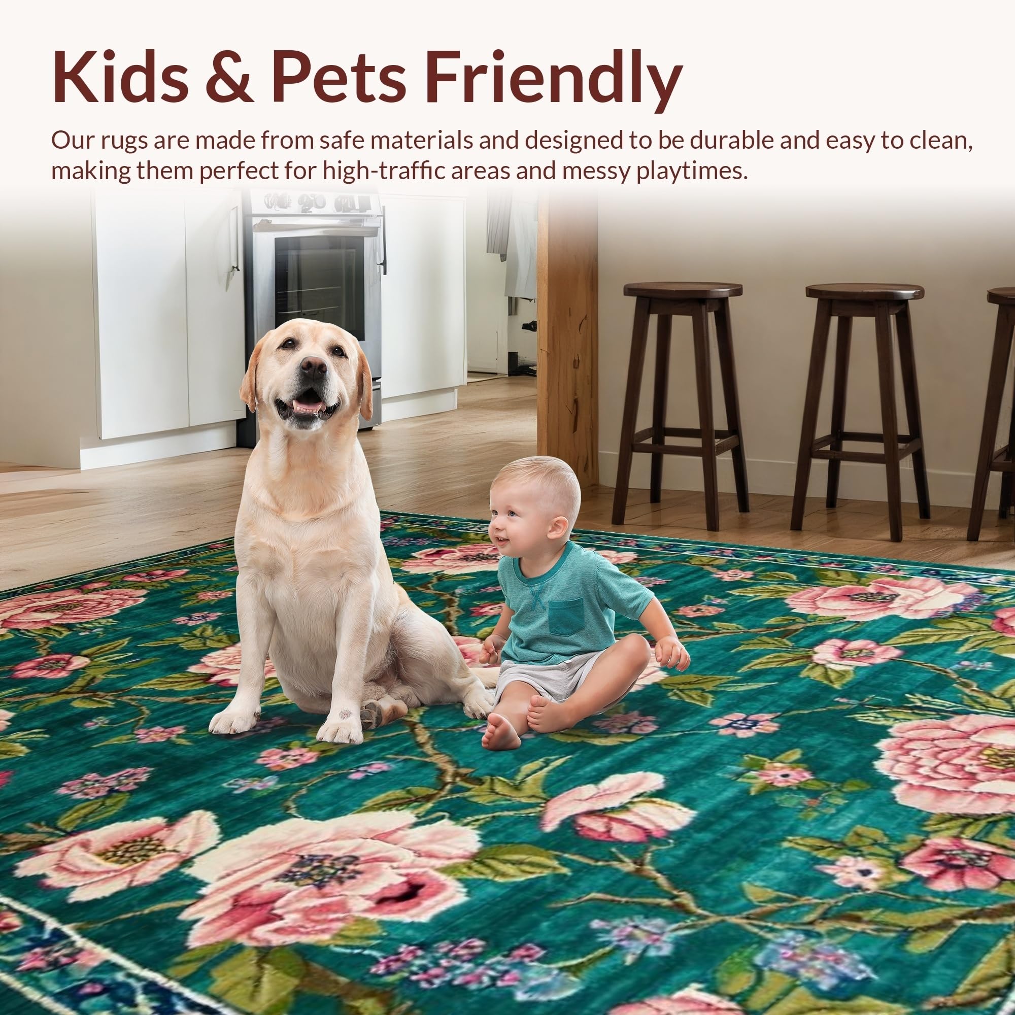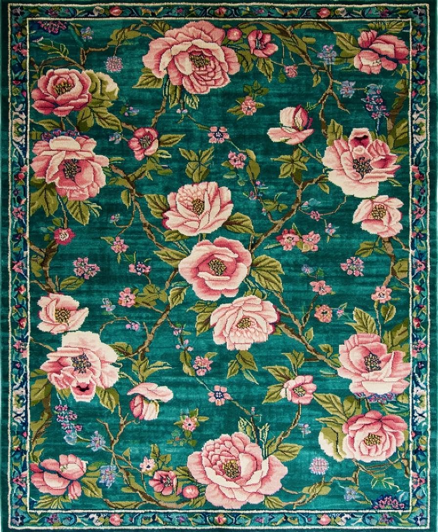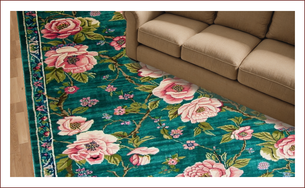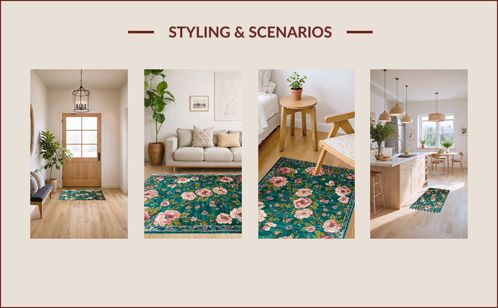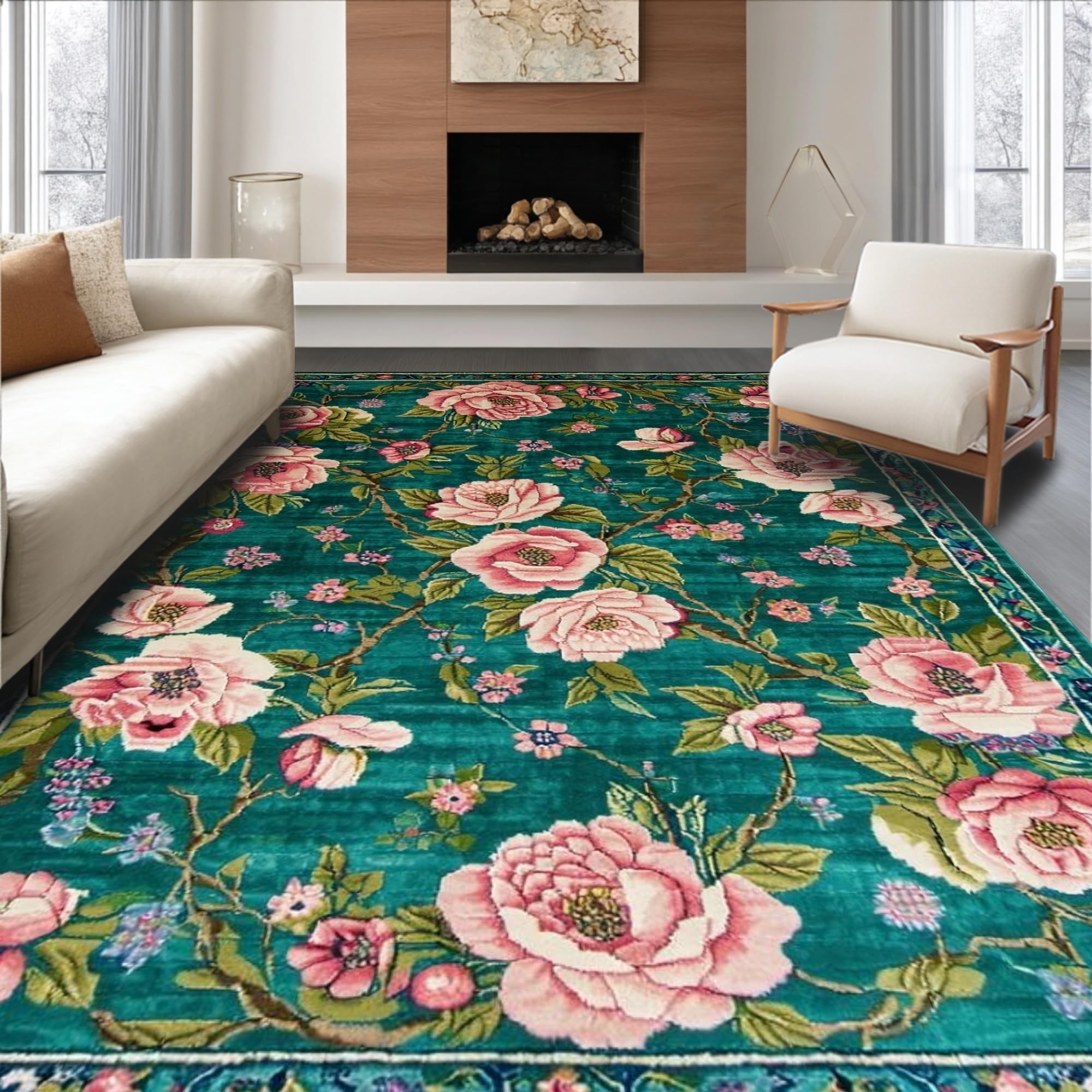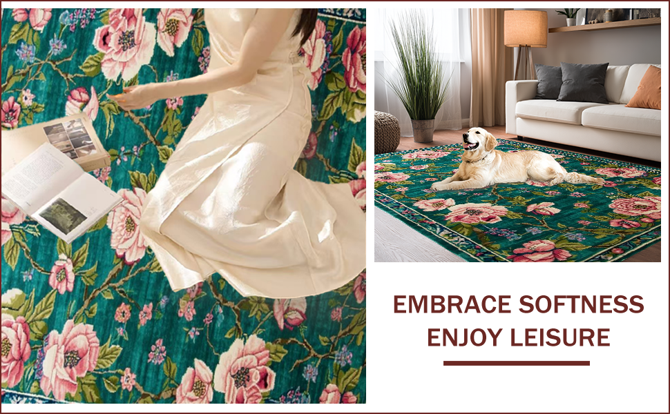 Ultra Soft Area Rug, Non Slip, Stain Resistant, Washable Area Rugs for Living Room, Bedroom, Luxurious Maximalist Nature Print(Green) Overview: