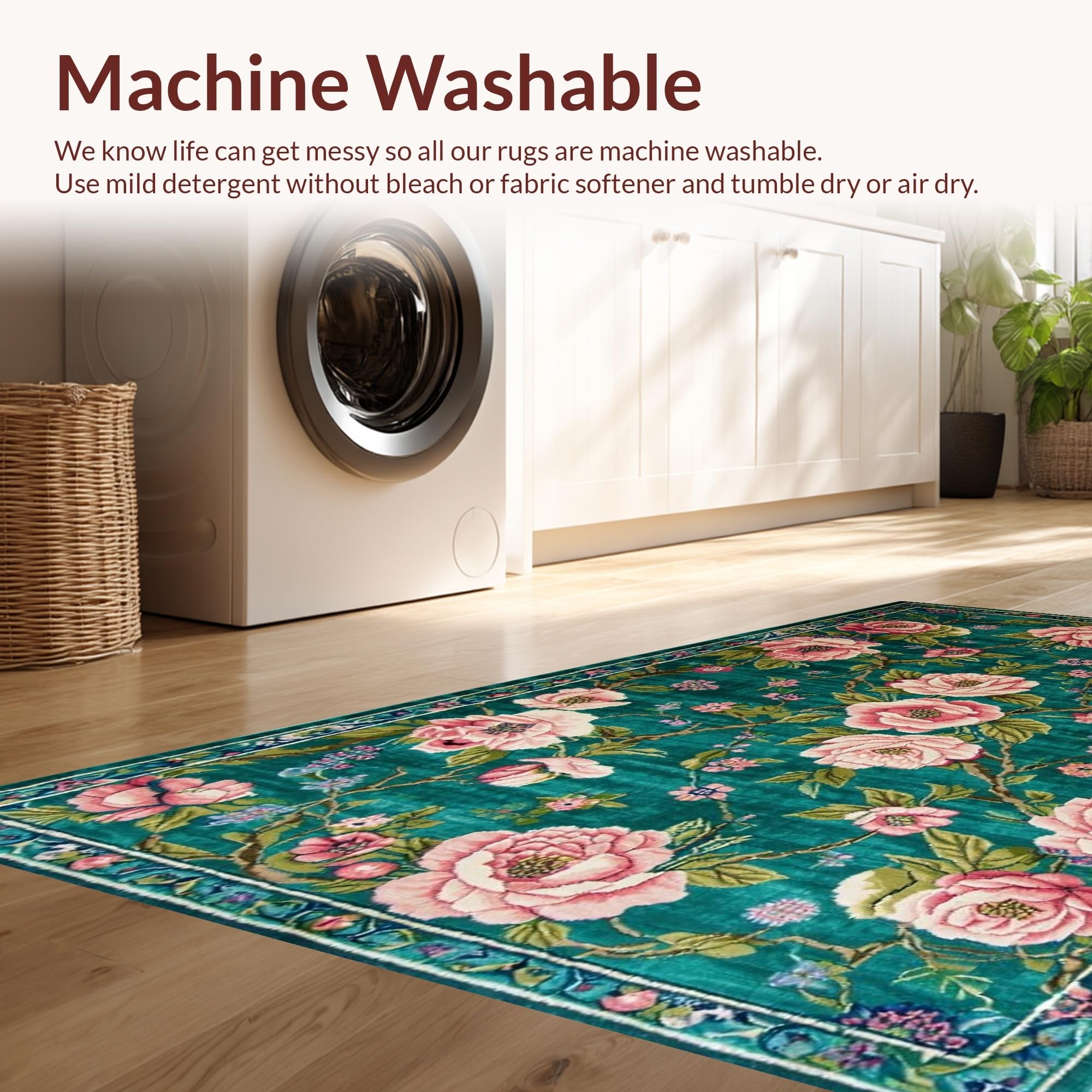 - Machine Washable: Our rugs can be easily thrown in the wash machine.
