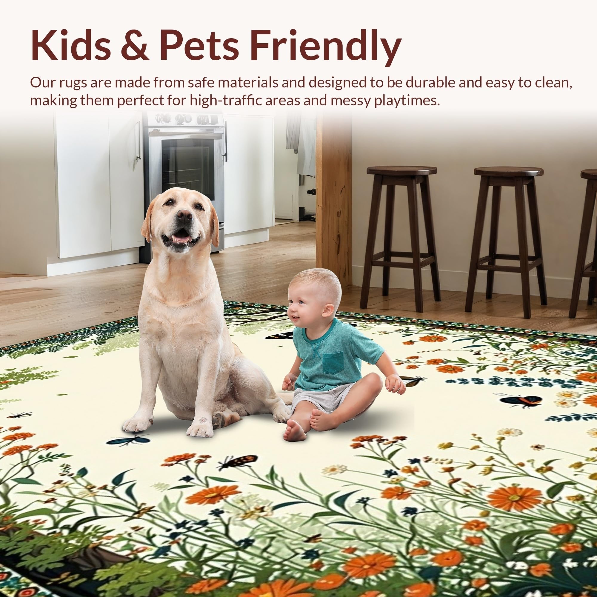 Ultra Soft Area Rug, Non Slip, Stain Resistant, Washable Area Rugs for Living Room, Bedroom, Luxurious Modern Nature Fusion(Beige) Overview: