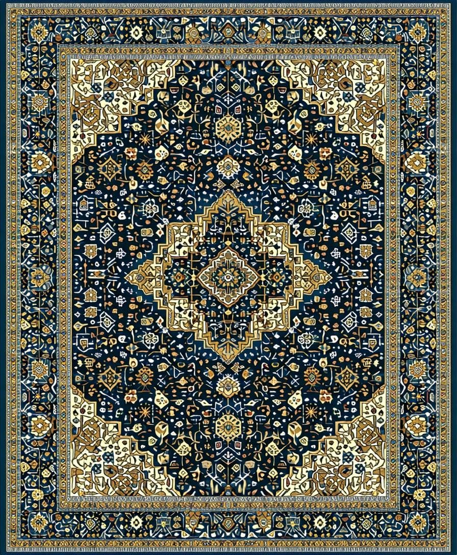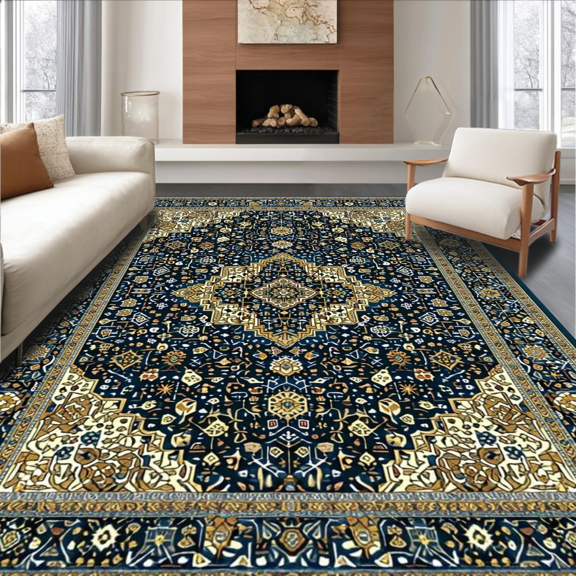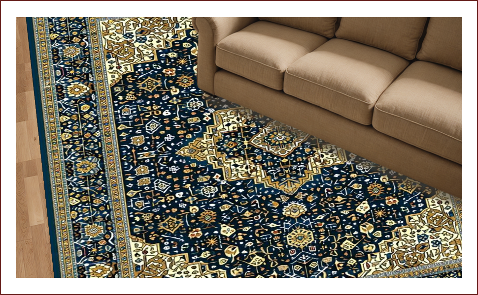 Ultra Soft Area Rug, Non Slip, Stain Resistant, Washable Area Rugs for Living Room, Bedroom, Luxurious Navy Blue Medallion Style(Blue) Overview: