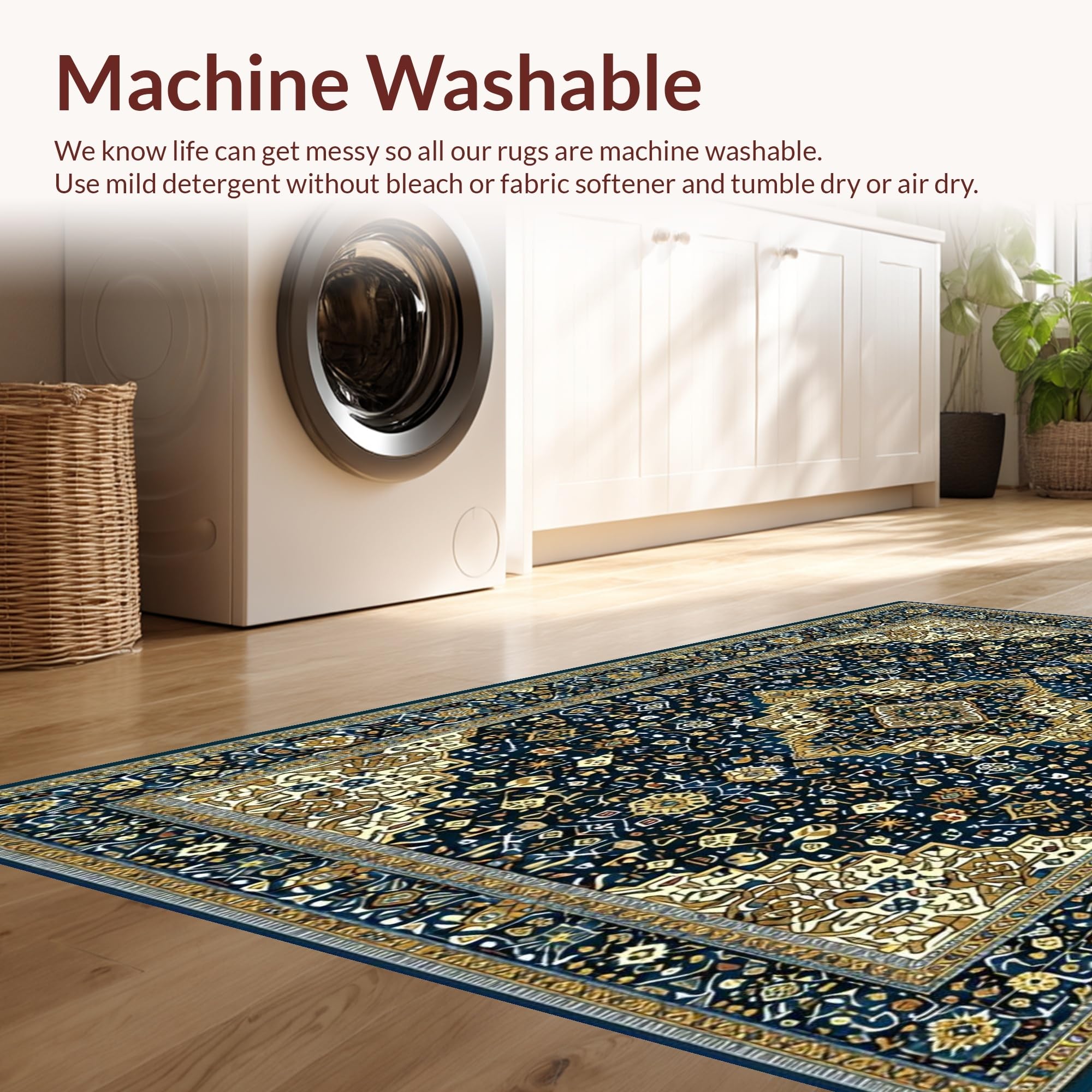 - Machine Washable: Our rugs can be easily thrown in the wash machine.