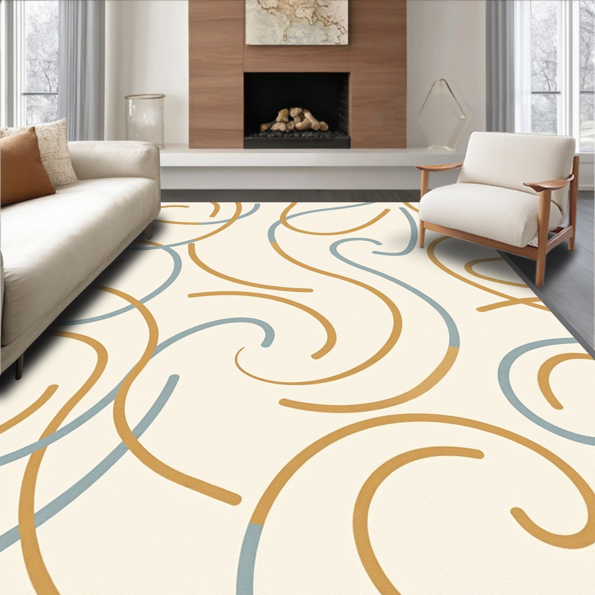 Ultra Soft Area Rug, Non Slip, Stain Resistant, Washable Area Rugs for Living Room, Bedroom, Luxurious Plush Cascade Swirl Textured Contemporary Accent(Ivory) Overview: