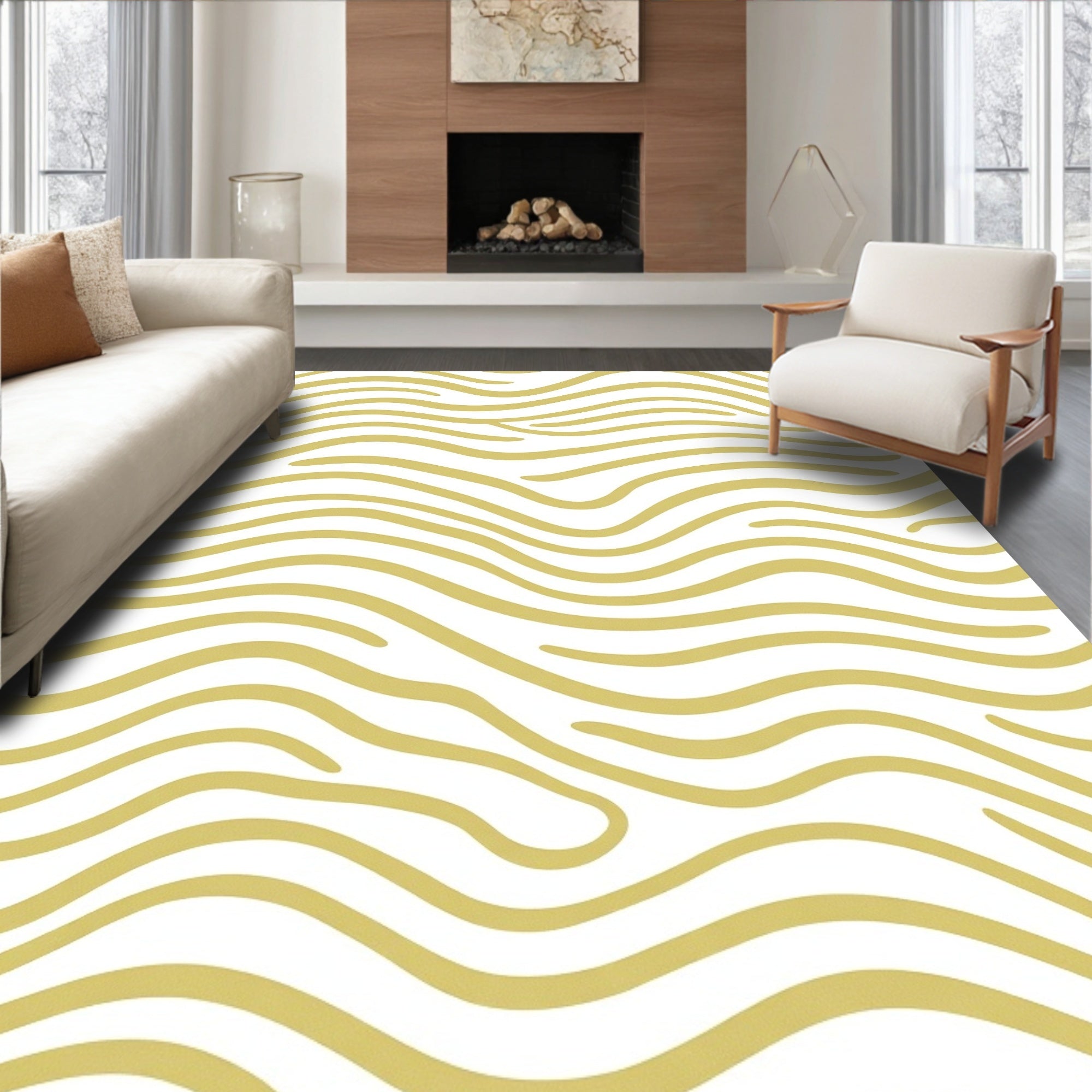 Flatwoven High Traffic Area Rug, Luxurious Plush Shag With Wavy Textured Surface, Non Slip, Stain Resistant, Washable Area Rugs for Living Room, Bedroom (Gold) Overview: