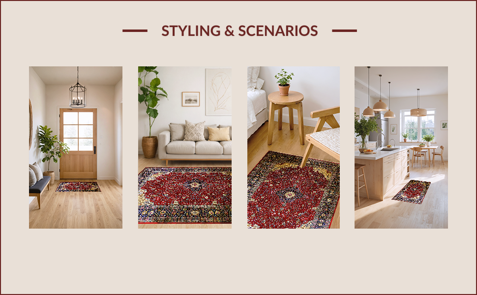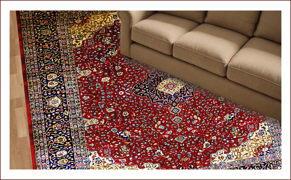 Ultra Soft Area Rug, Non Slip, Stain Resistant, Washable Area Rugs for Living Room, Bedroom, Luxurious Red Medallion Aesthetic(Red) Overview: