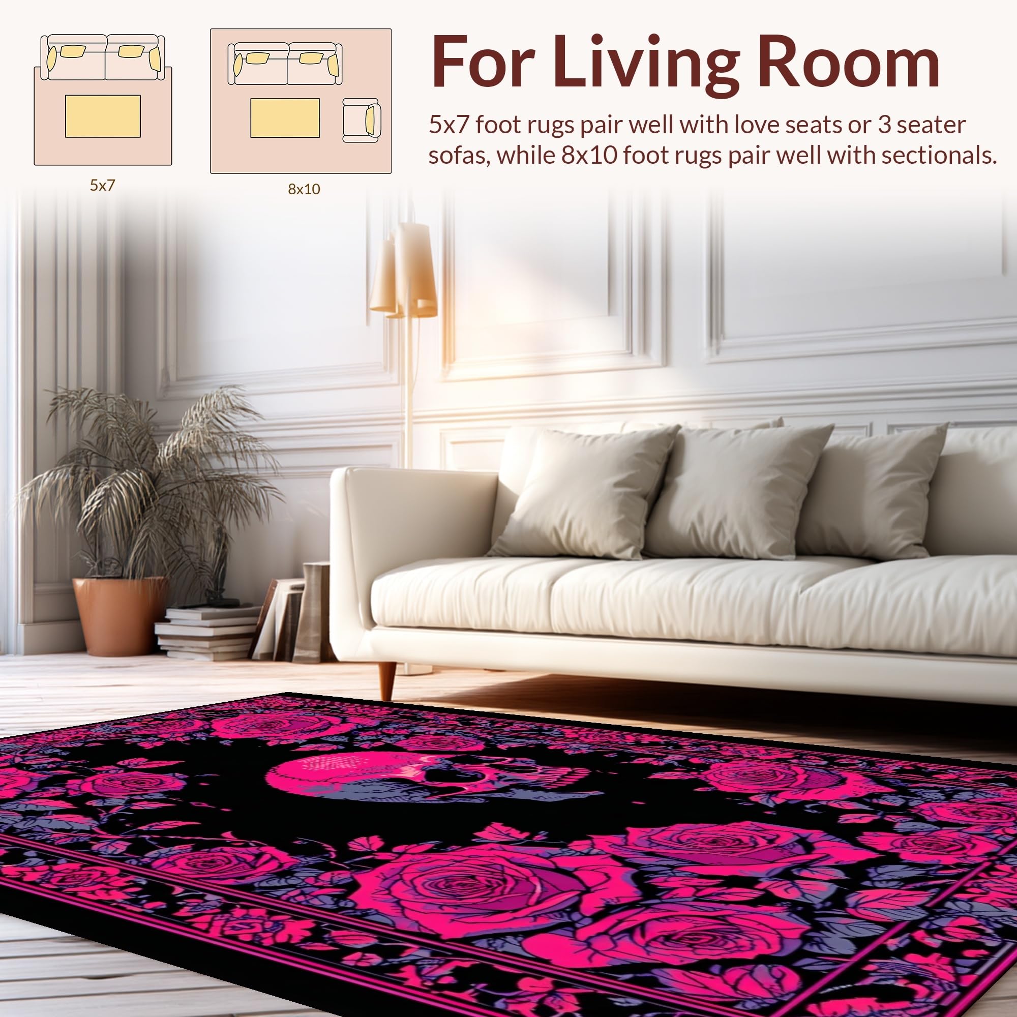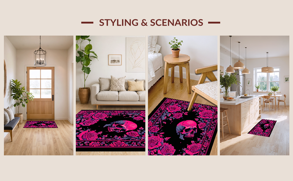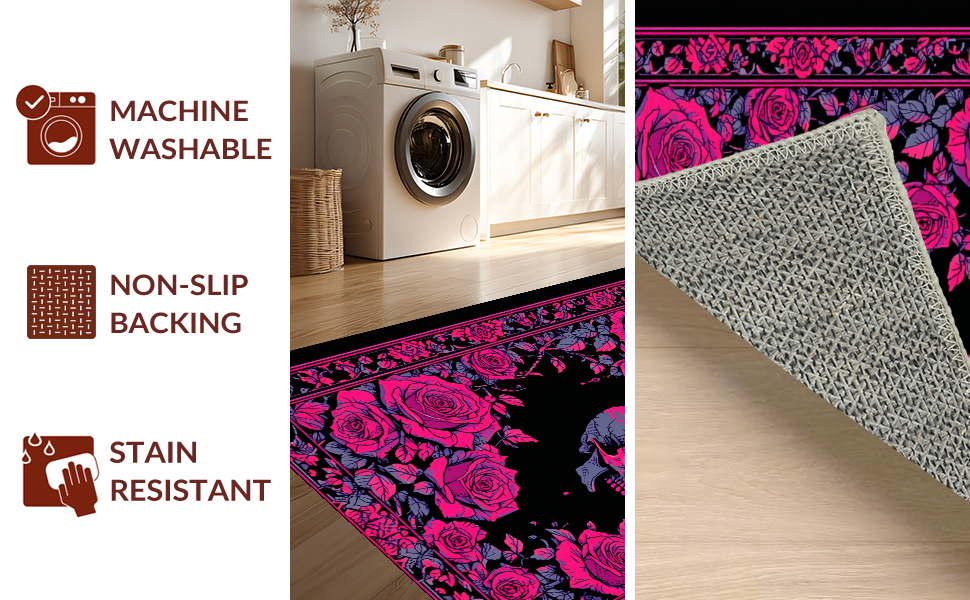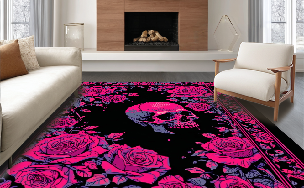 Ultra Soft Area Rug, Non Slip, Stain Resistant, Washable Area Rugs for Living Room, Bedroom, Luxurious Skull Petal Fusion(Pink) Overview: