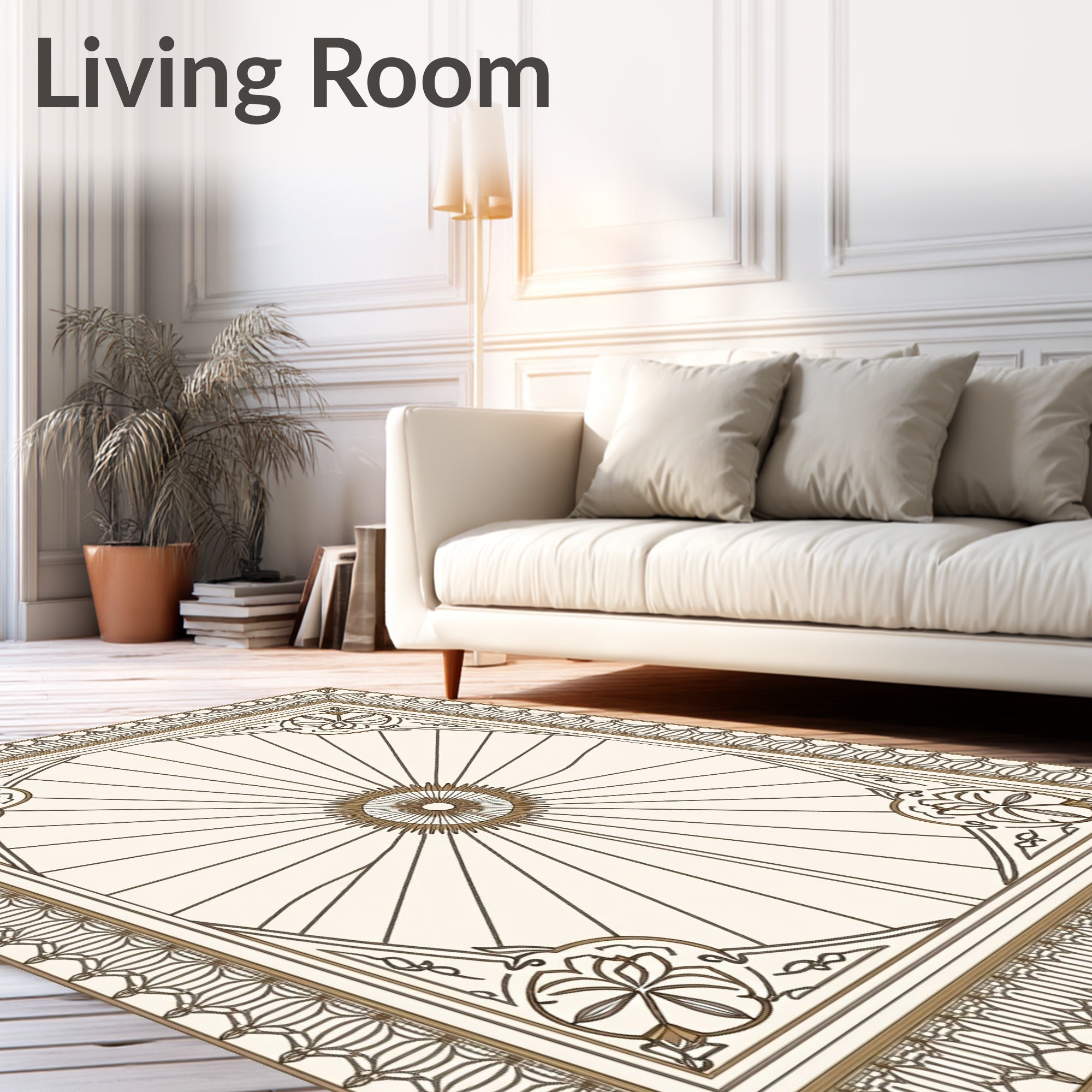 Ultra Soft Area Rug, Non Slip, Stain Resistant, Washable Area Rugs for Living Room, Bedroom, Luxurious Stripe Medallion Artisan(Beige) Overview: