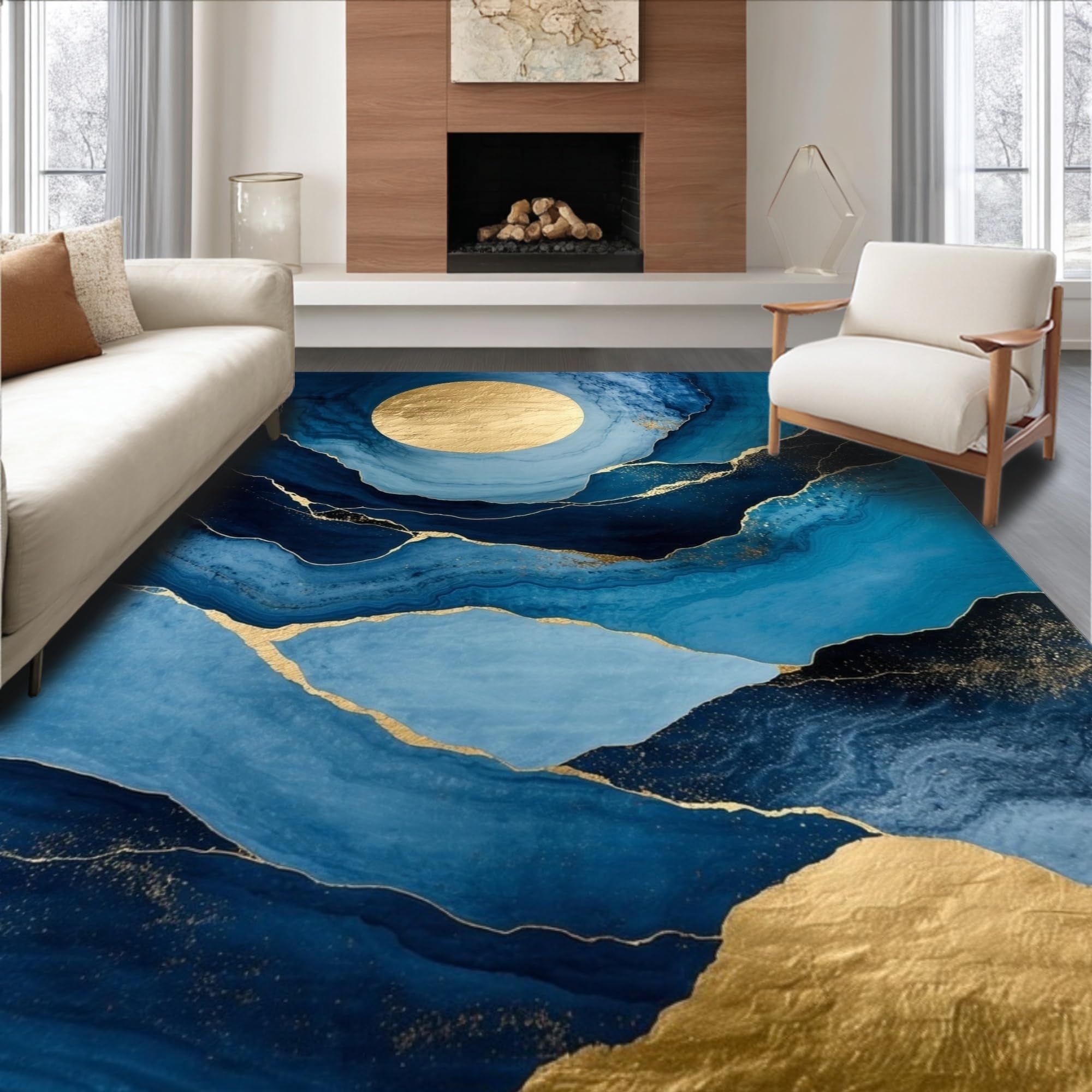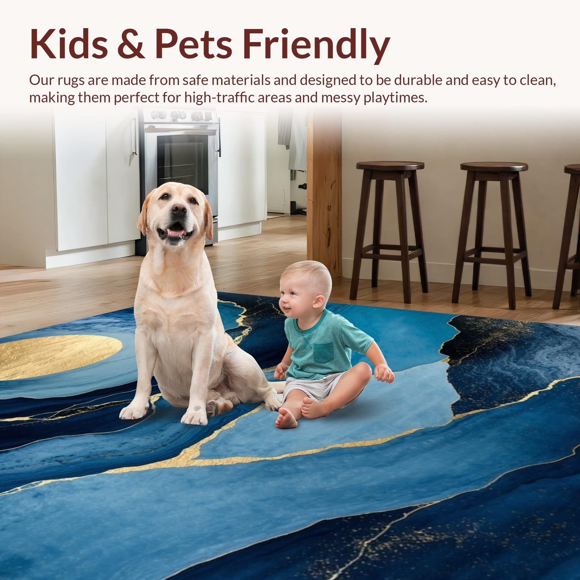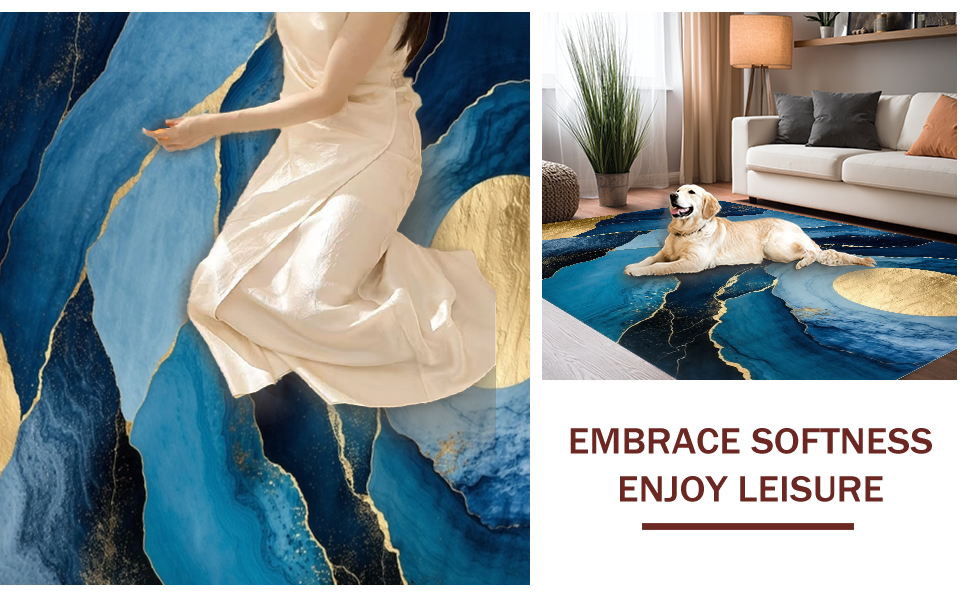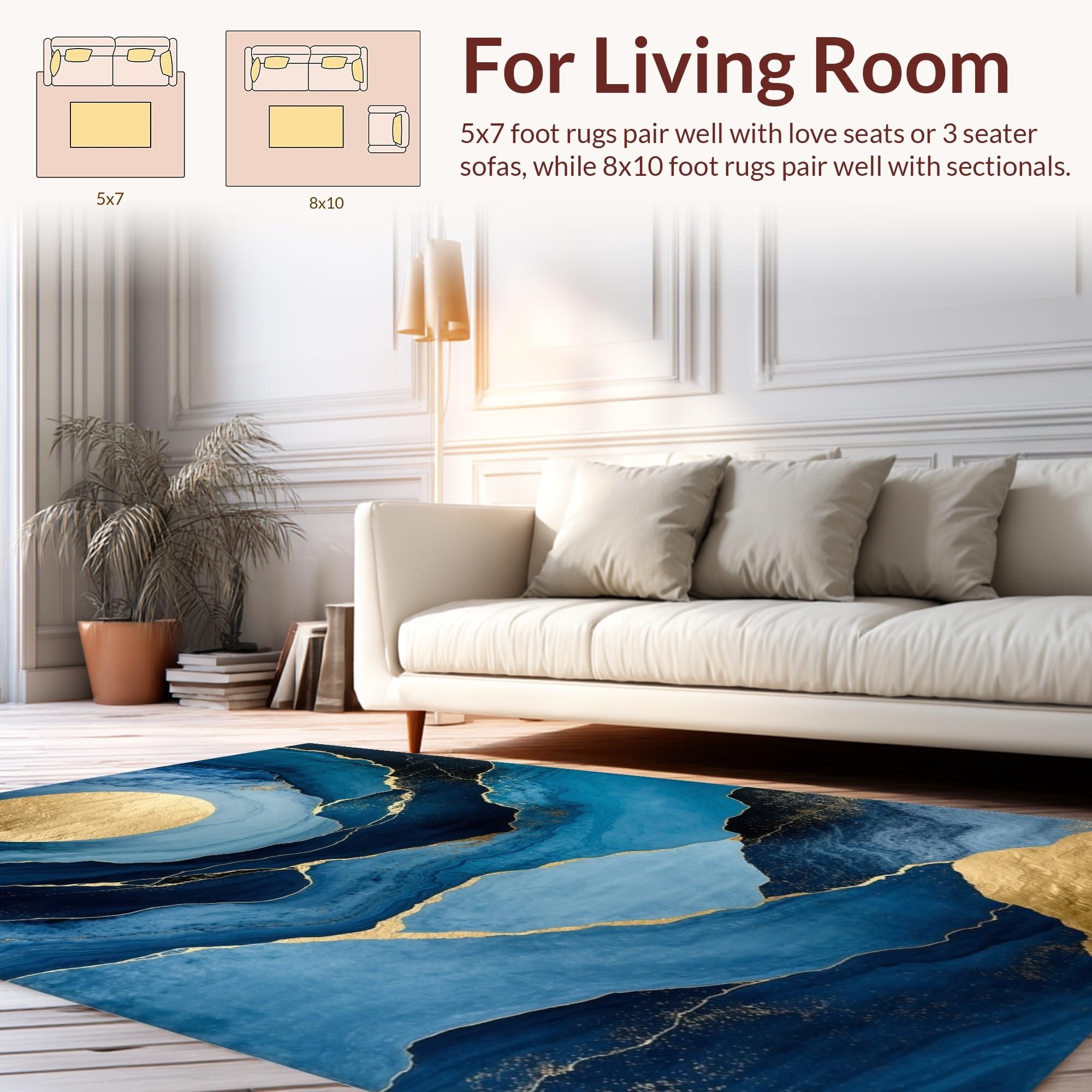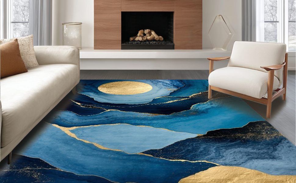 Ultra Soft Area Rug, Non Slip, Stain Resistant, Washable Area Rugs for Living Room, Bedroom, Luxurious Textured Blue Gradient(Blue) Overview: