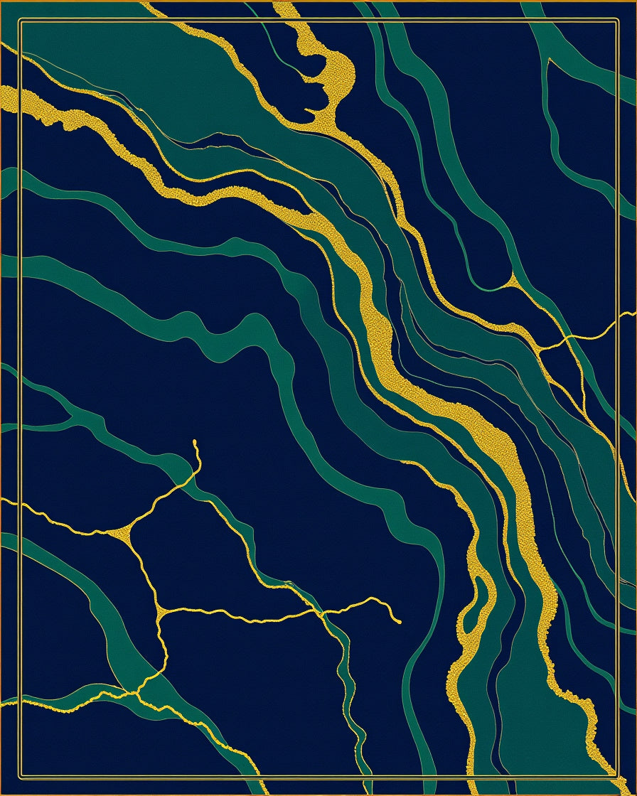 Luxurious Veined Stone with Metallic Accents Contemporary Design(Blue)