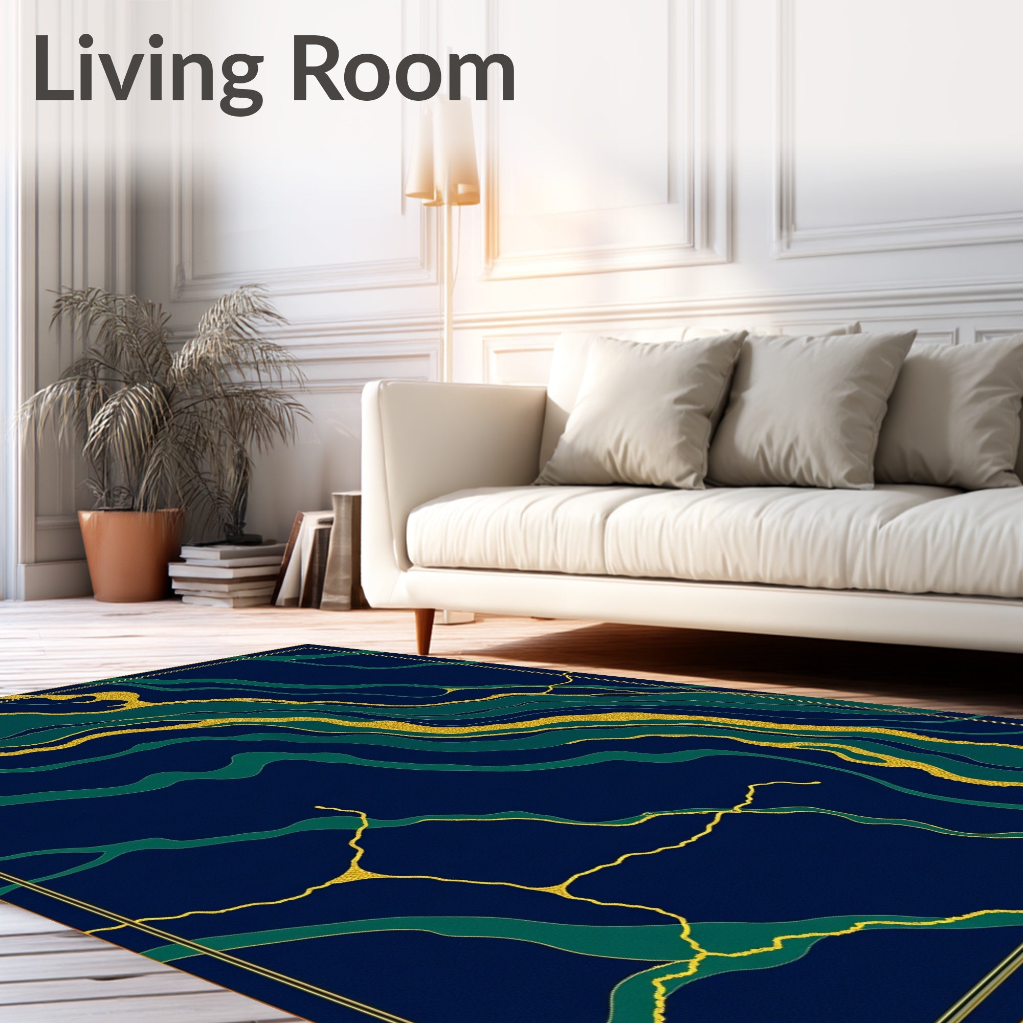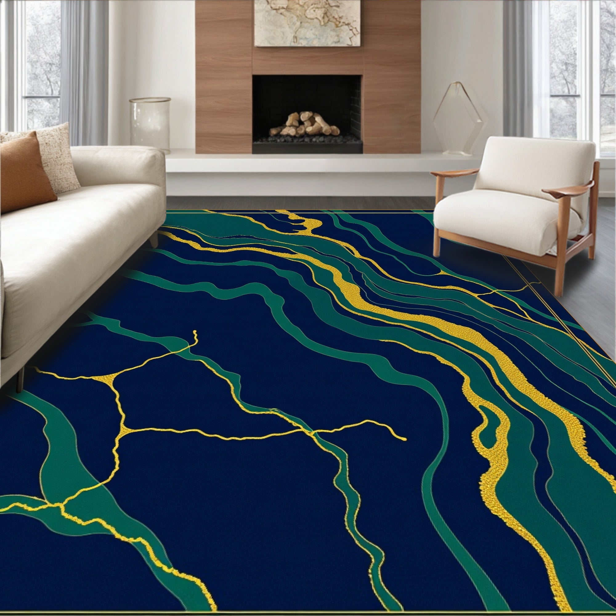 Ultra Soft Area Rug, Non Slip, Stain Resistant, Washable Area Rugs for Living Room, Bedroom, Luxurious Veined Stone with Metallic Accents Contemporary Design(Blue) Overview: