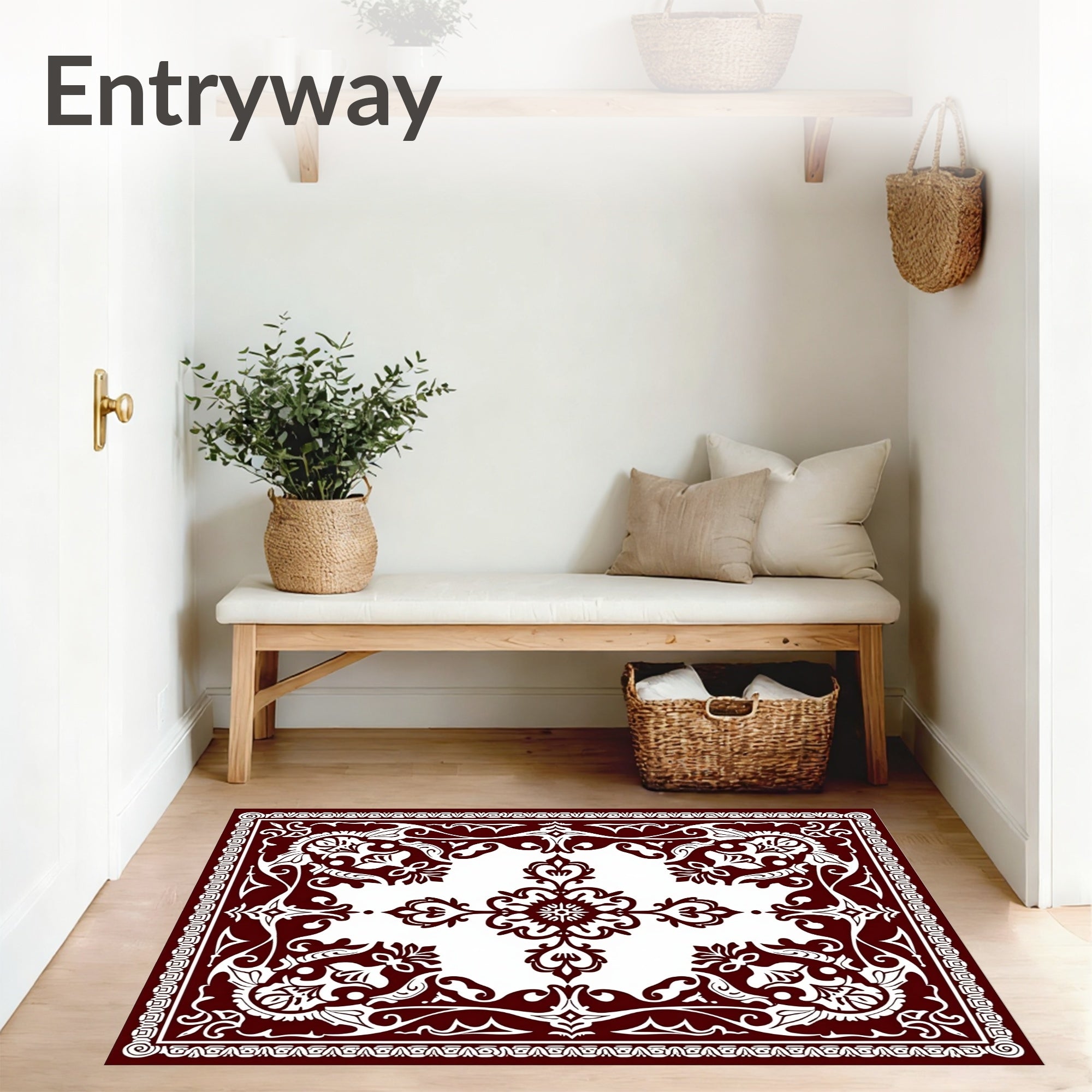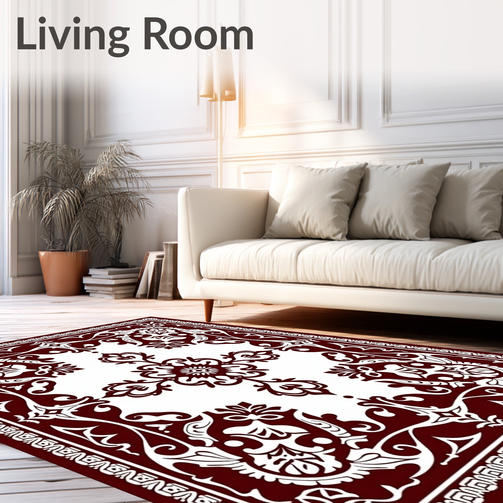 Ultra Soft Area Rug, Non Slip, Stain Resistant, Washable Area Rugs for Living Room, Bedroom, Luxurious Velvet Damask Ornamental Flourish Decorative Accent(Brown) Overview: