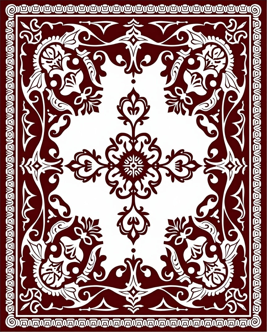 Luxurious Velvet Damask Ornamental Flourish Decorative Accent(Brown)