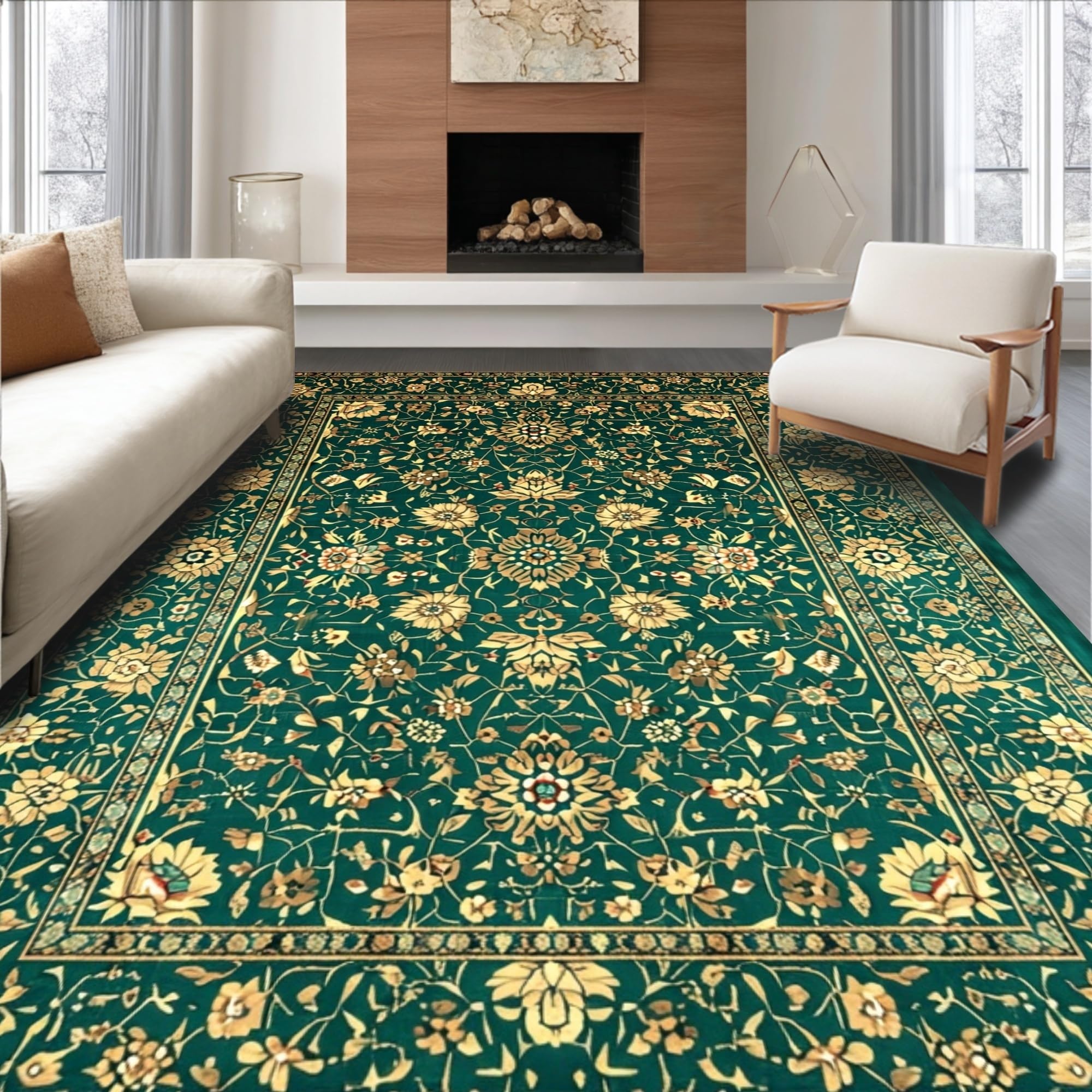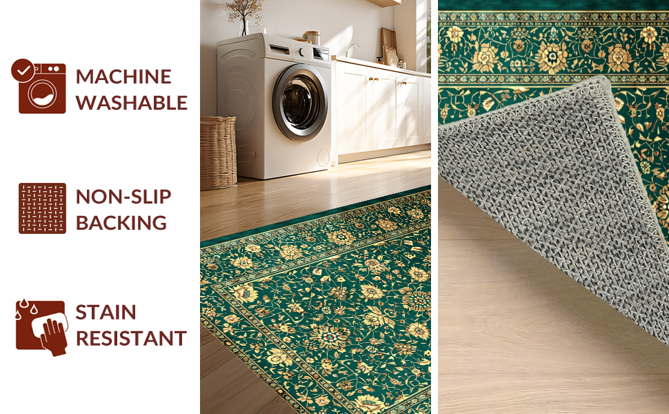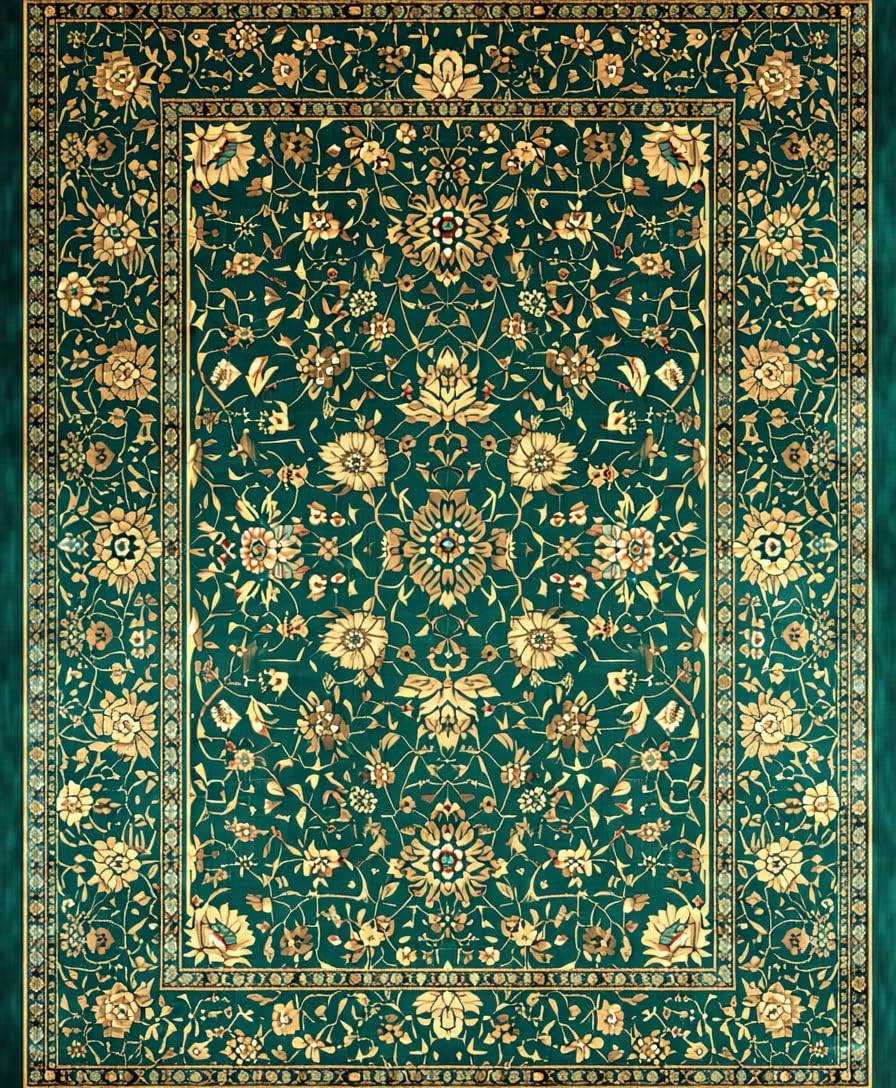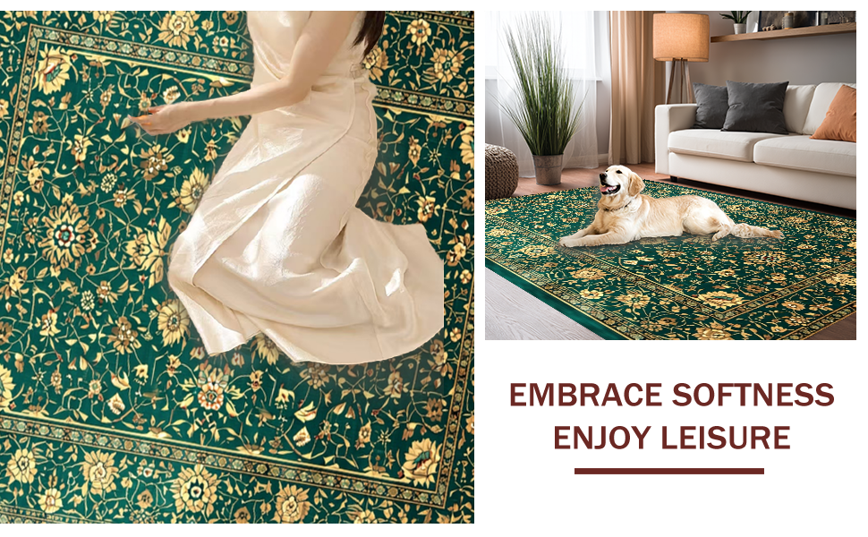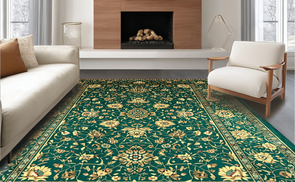 Ultra Soft Area Rug, Non Slip, Stain Resistant, Washable Area Rugs for Living Room, Bedroom, Luxurious Vintage Floral Arrangement(Green) Overview: