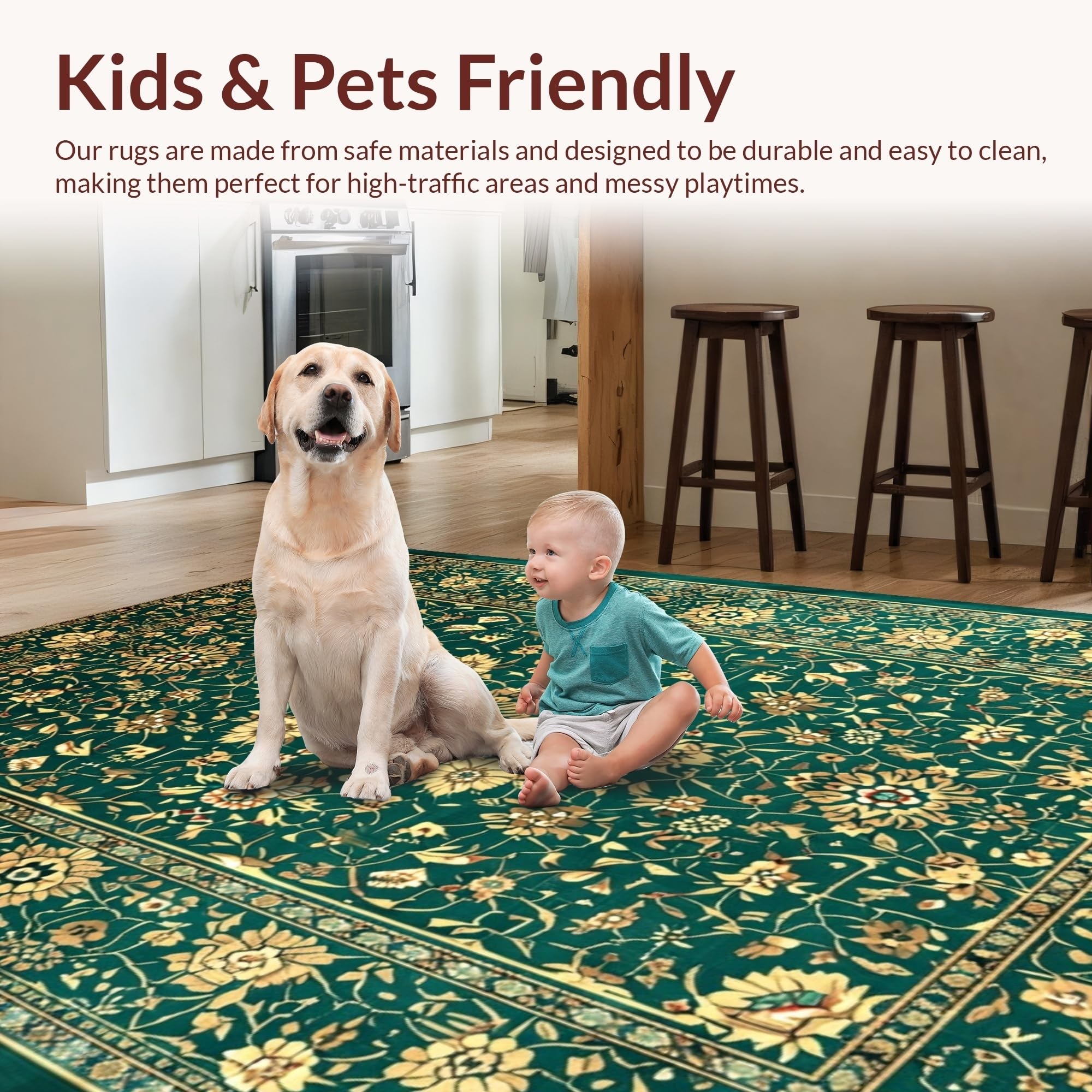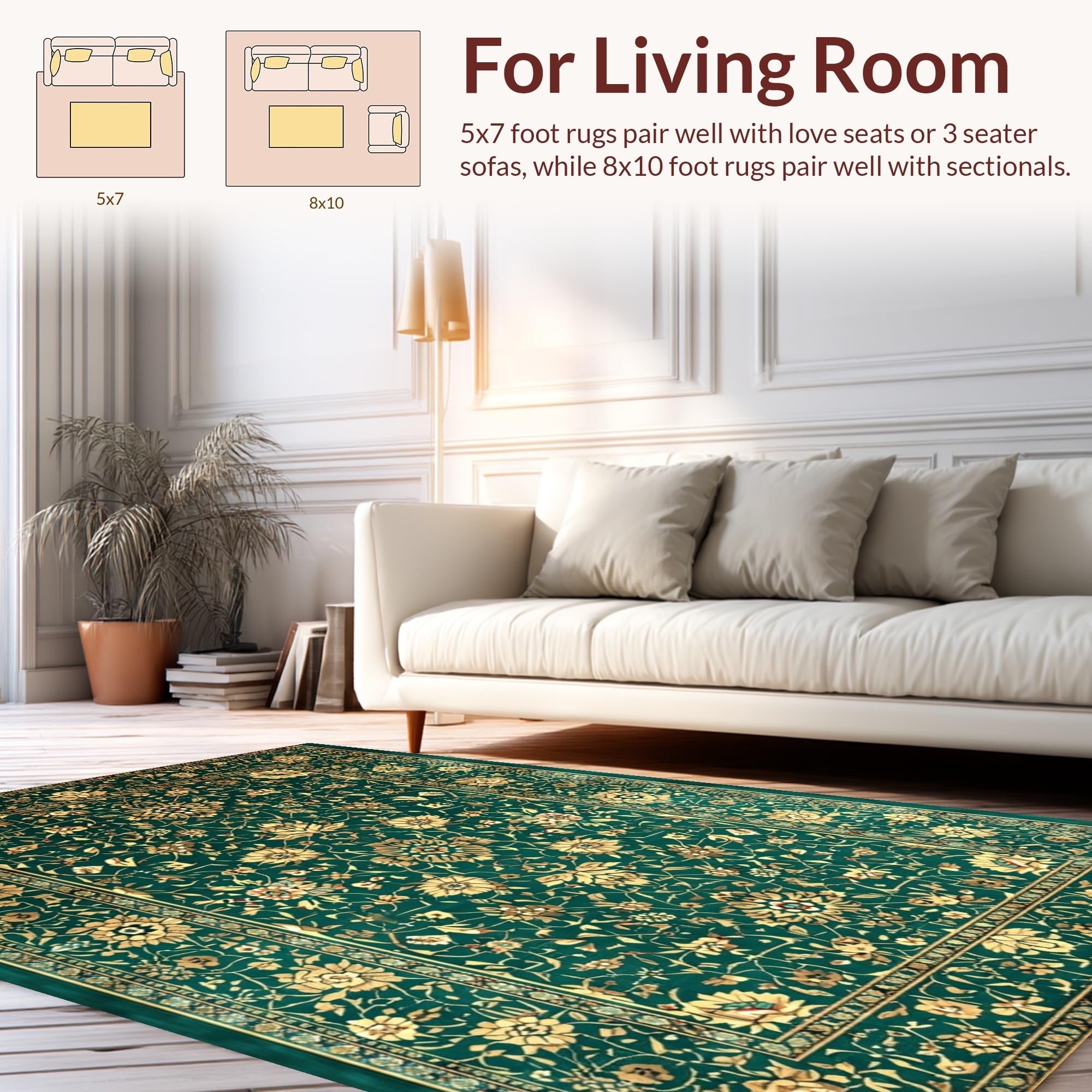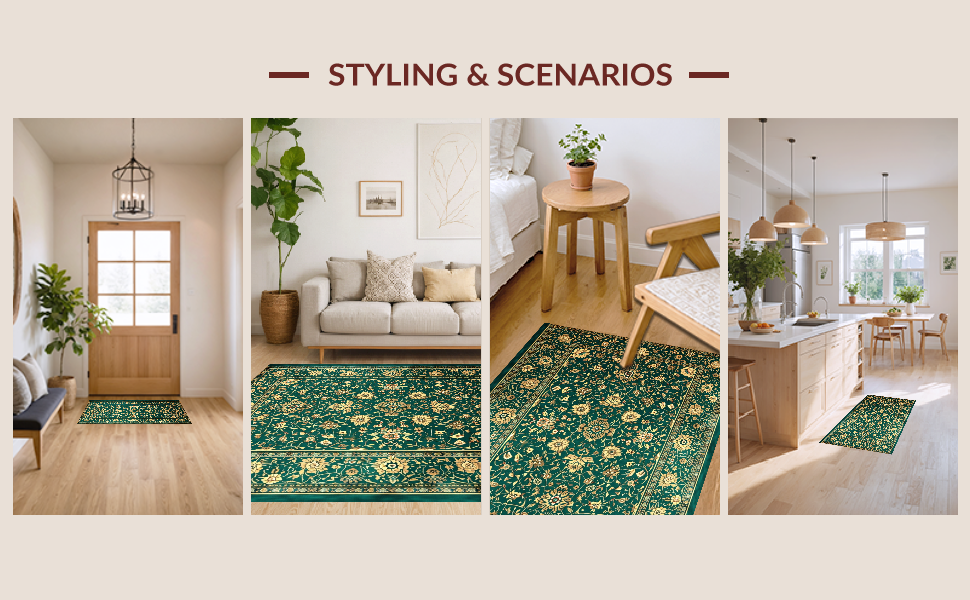 Ultra Soft Area Rug, Non Slip, Stain Resistant, Washable Area Rugs for Living Room, Bedroom, Luxurious Vintage Floral Arrangement(Green) Overview: