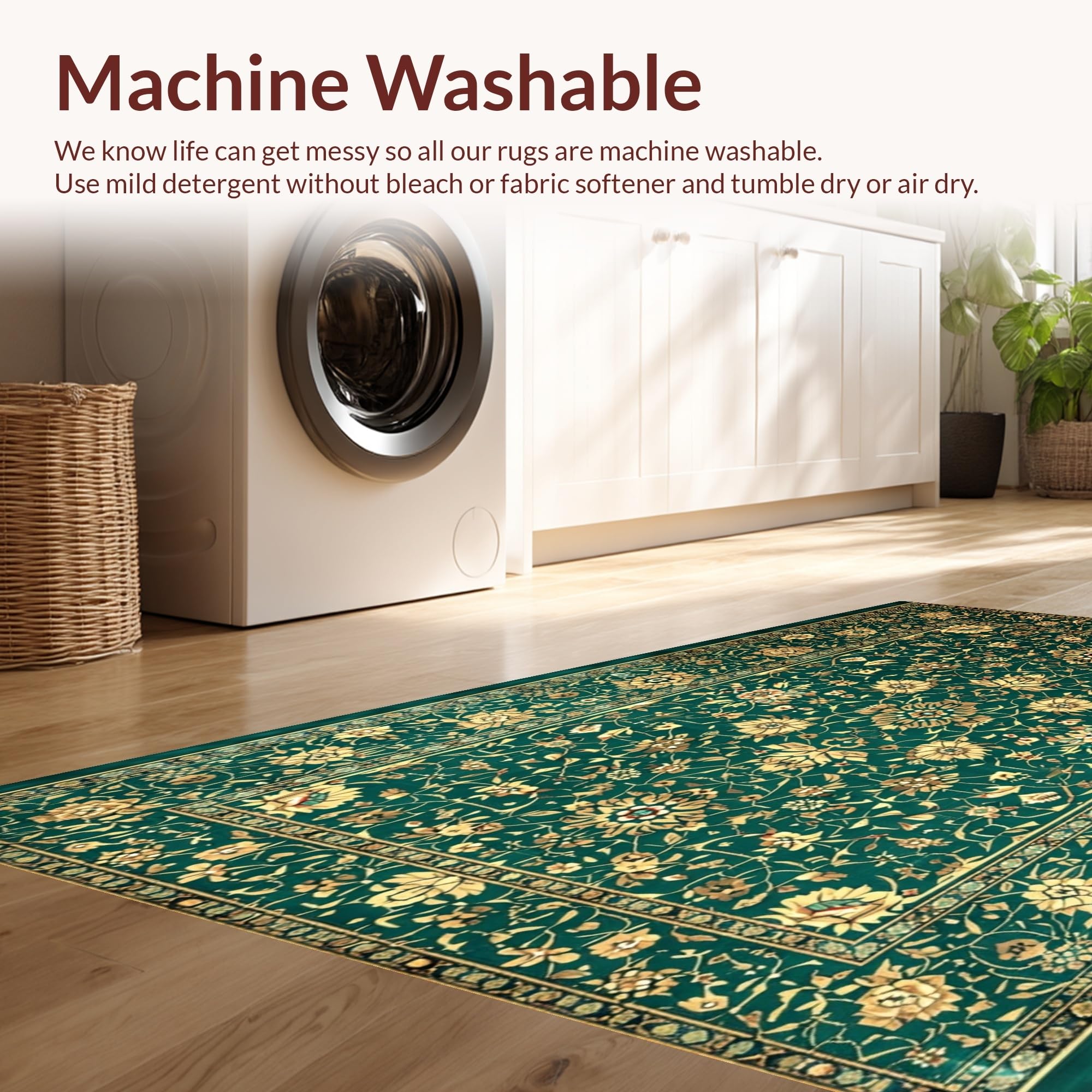 - Machine Washable: Our rugs can be easily thrown in the wash machine.