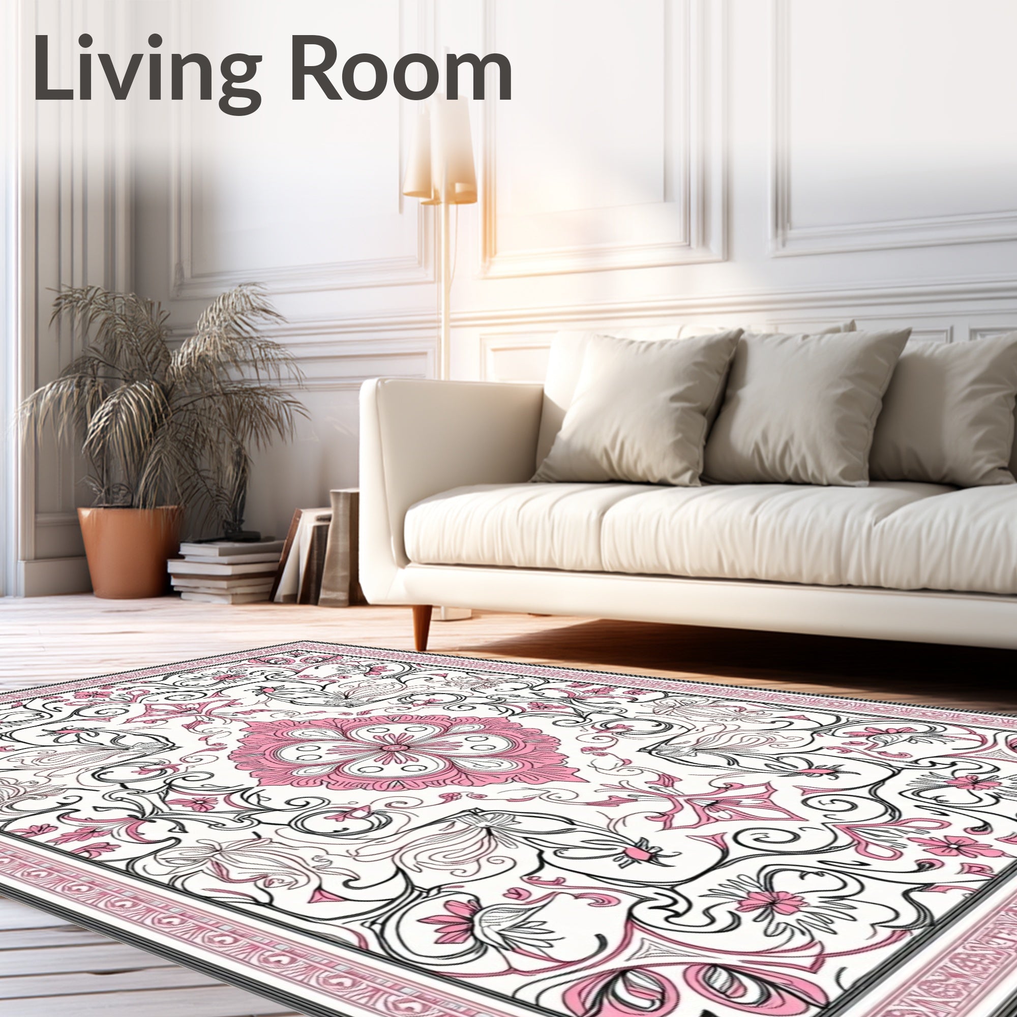 Ultra Soft Area Rug, Non Slip, Stain Resistant, Washable Area Rugs for Living Room, Bedroom, Luxurious Vintage Inspired Floral Arabesque Artistry(Pink) Overview: