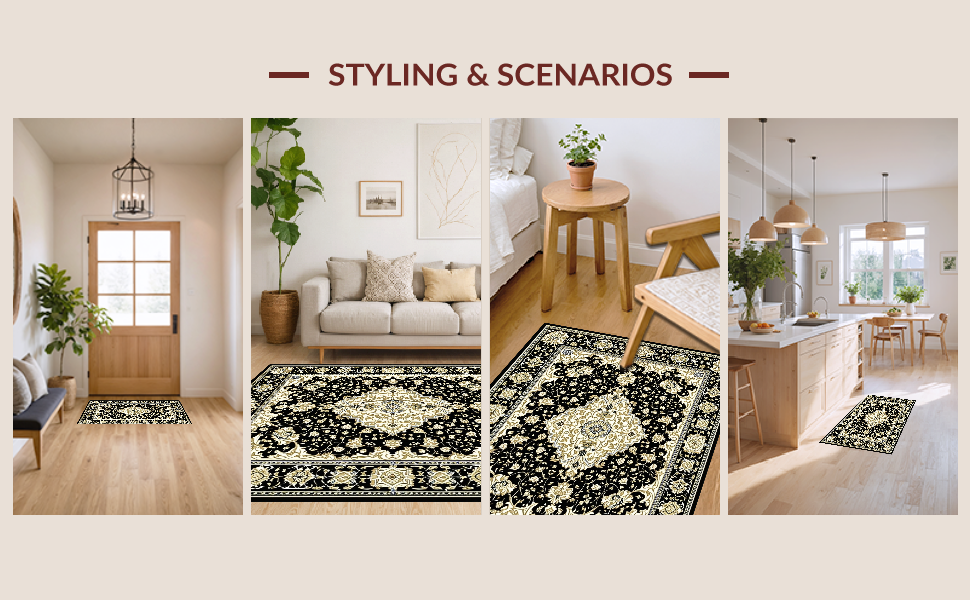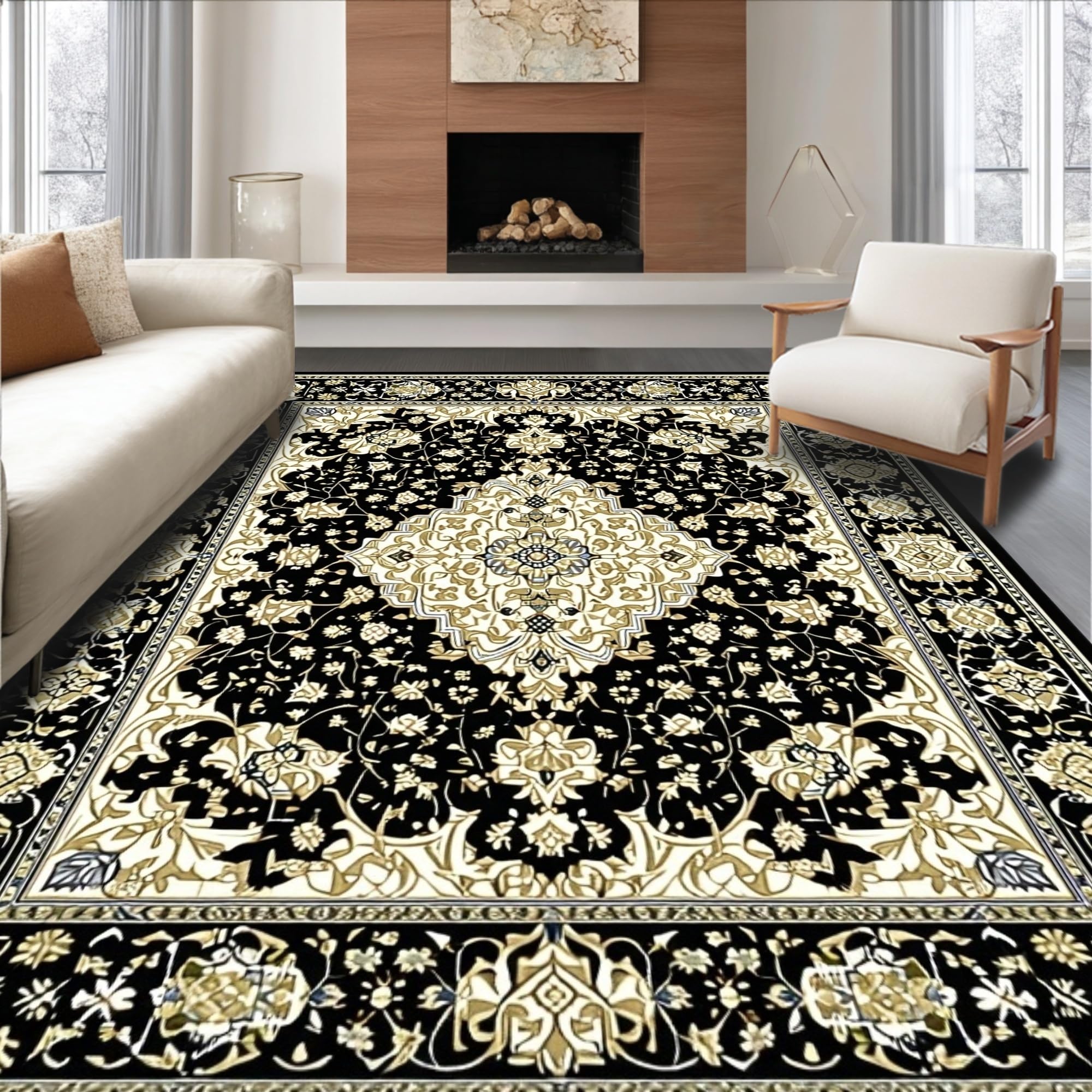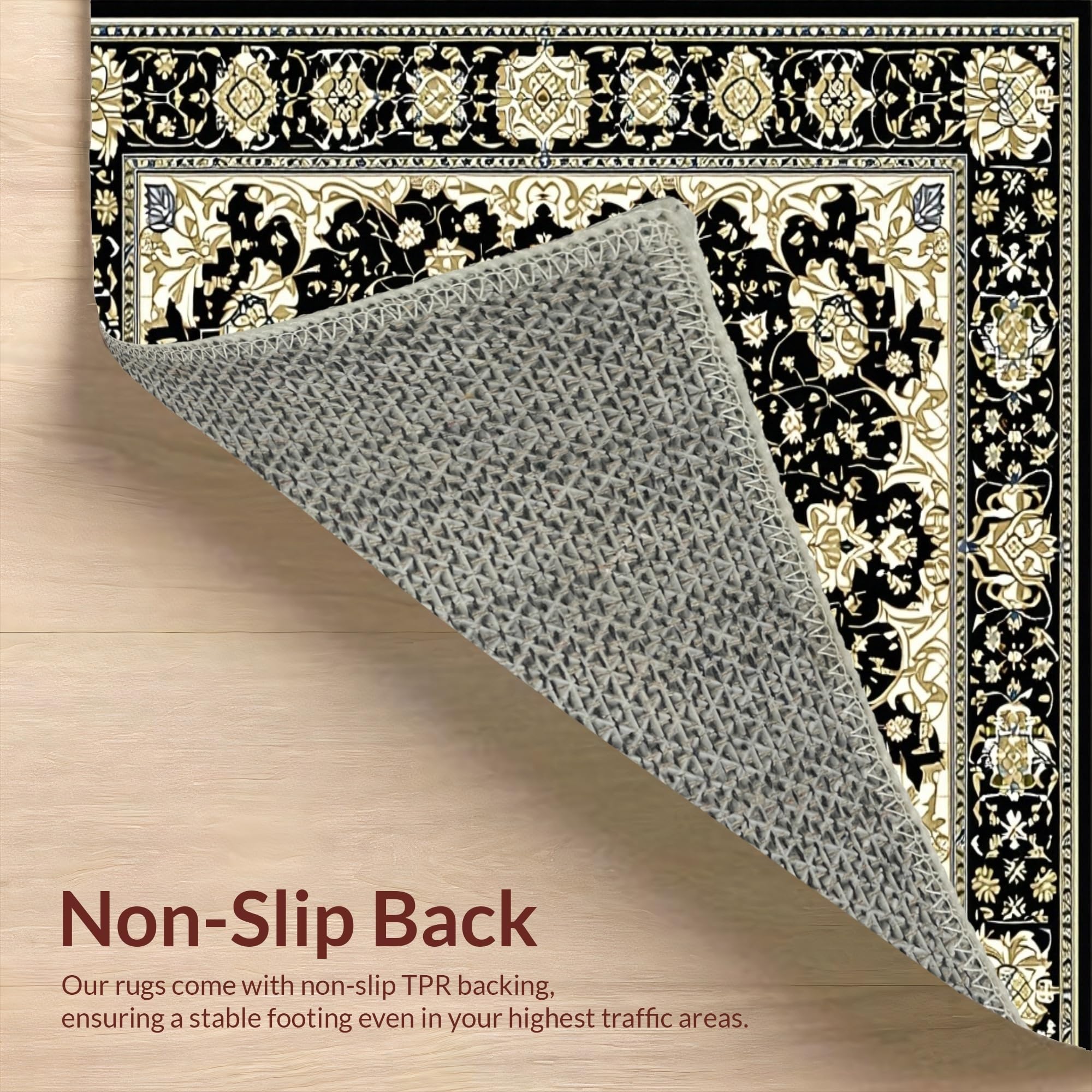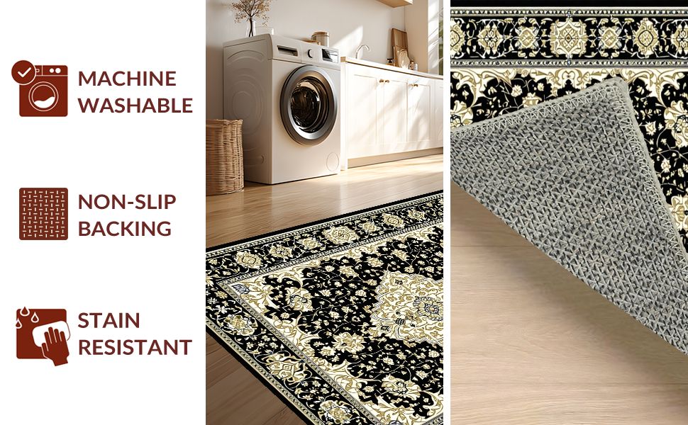 Ultra Soft Area Rug, Non Slip, Stain Resistant, Washable Area Rugs for Living Room, Bedroom, Luxurious Vintage Inspired Ornate Design(Black) Overview: