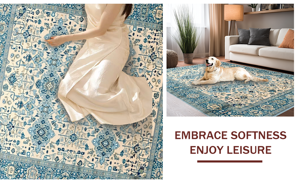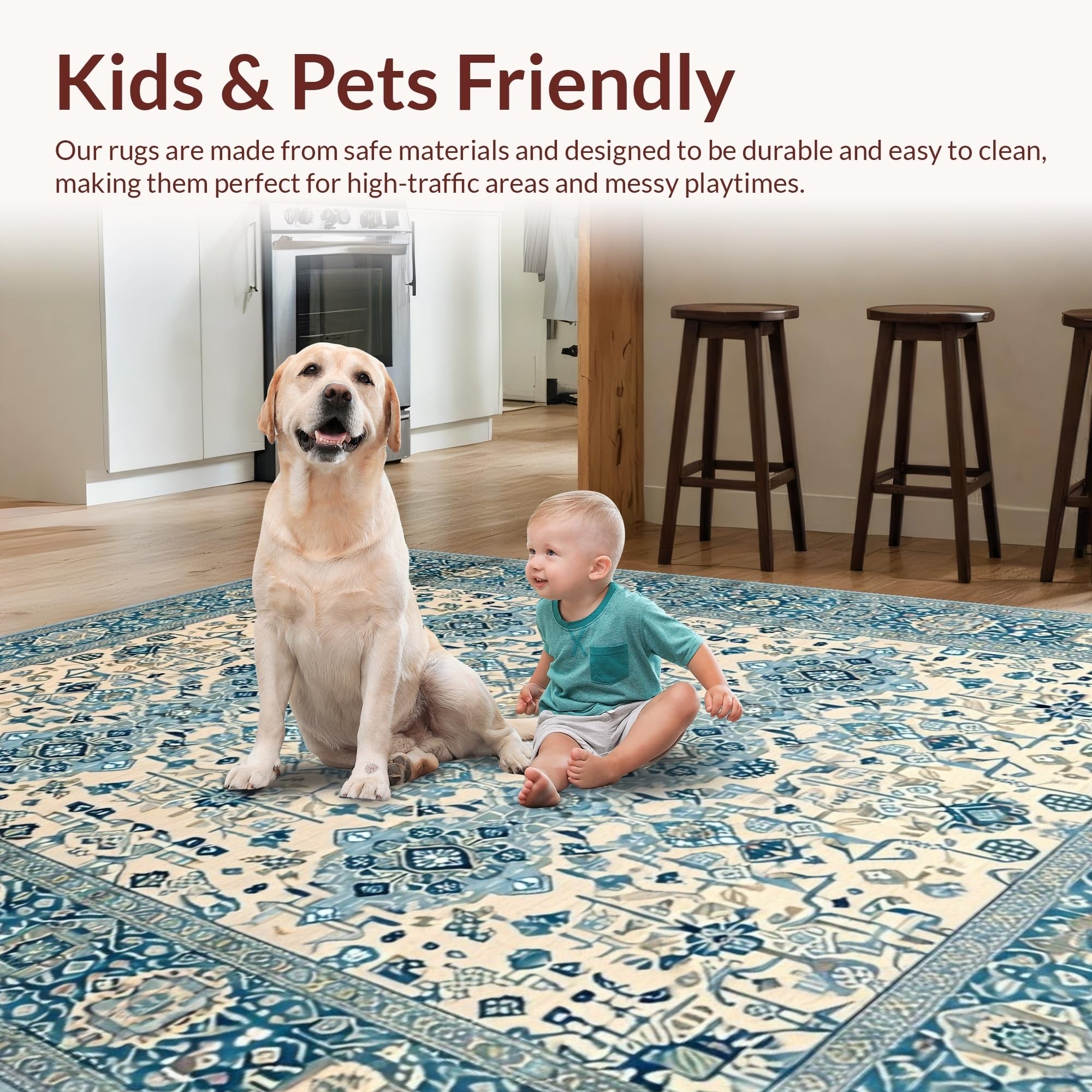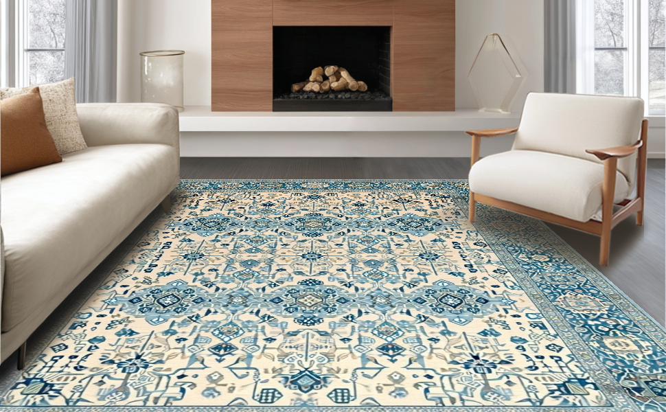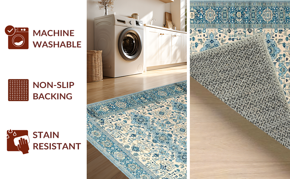 Ultra Soft Area Rug, Non Slip, Stain Resistant, Washable Area Rugs for Living Room, Bedroom, Luxurious Vintage-Inspired Tiled Motif(Beige) Overview: