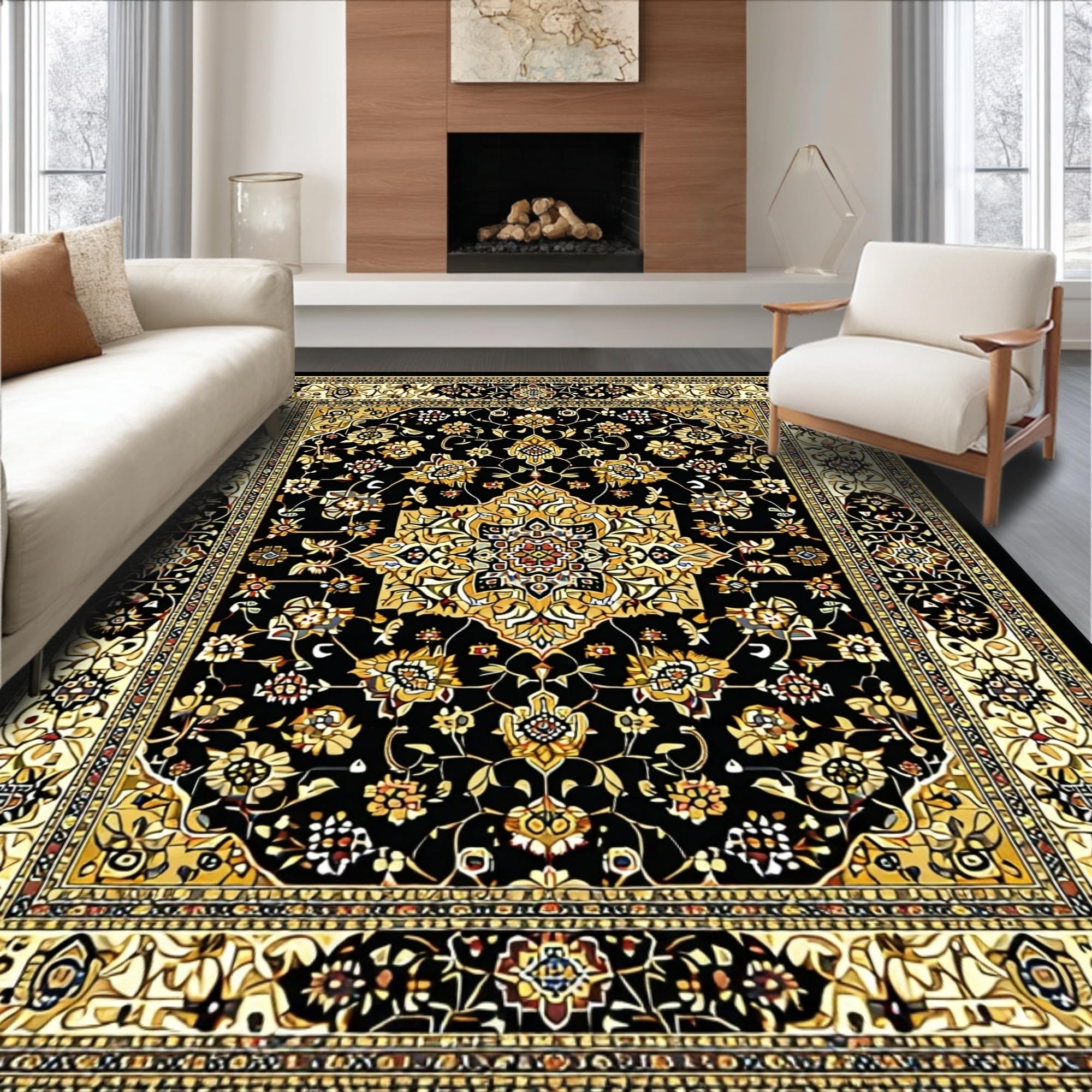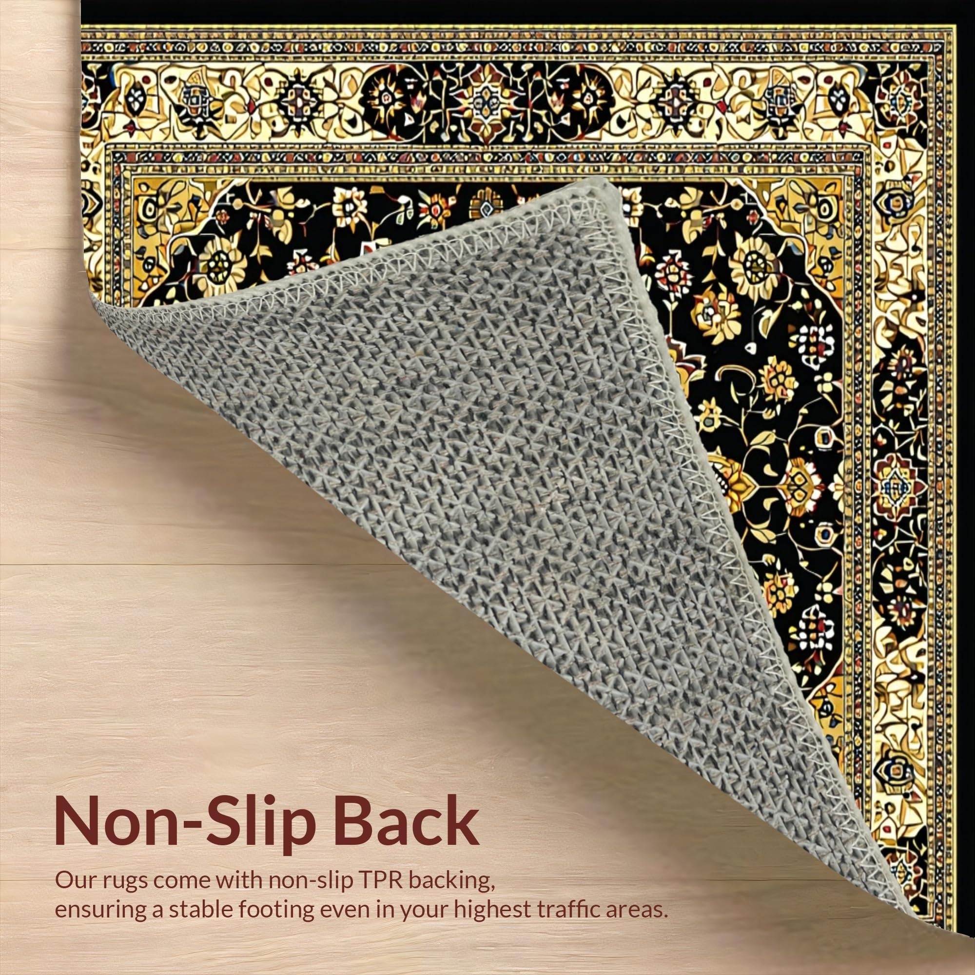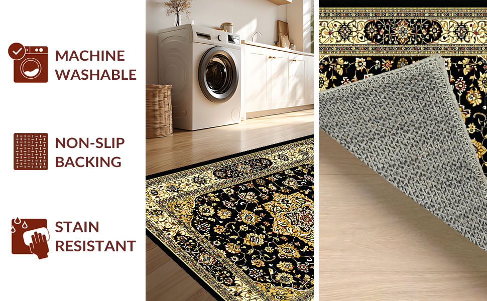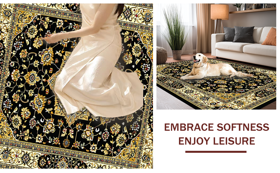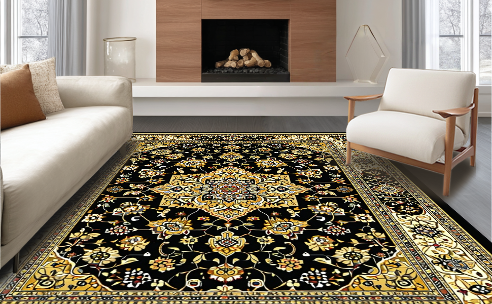 Ultra Soft Area Rug, Non Slip, Stain Resistant, Washable Area Rugs for Living Room, Bedroom, Luxurious Vintage Oriental Tapestry(Black) Overview: