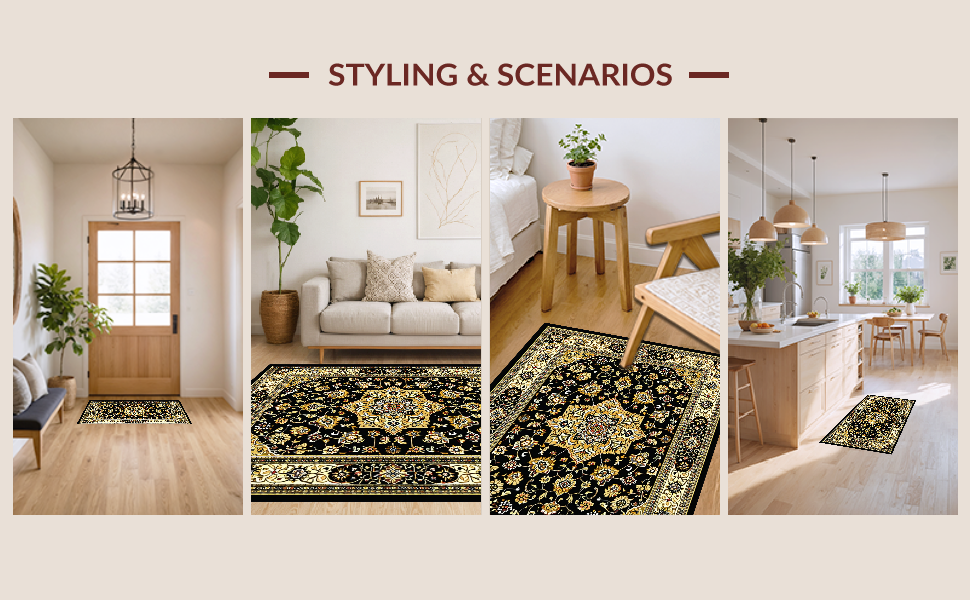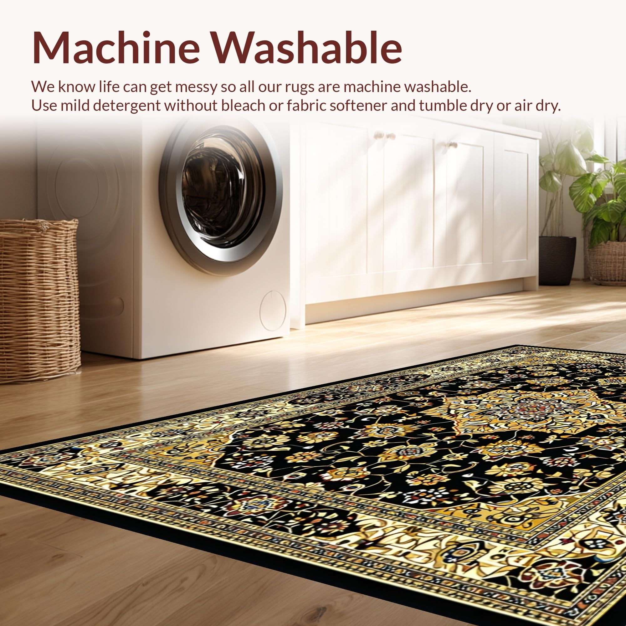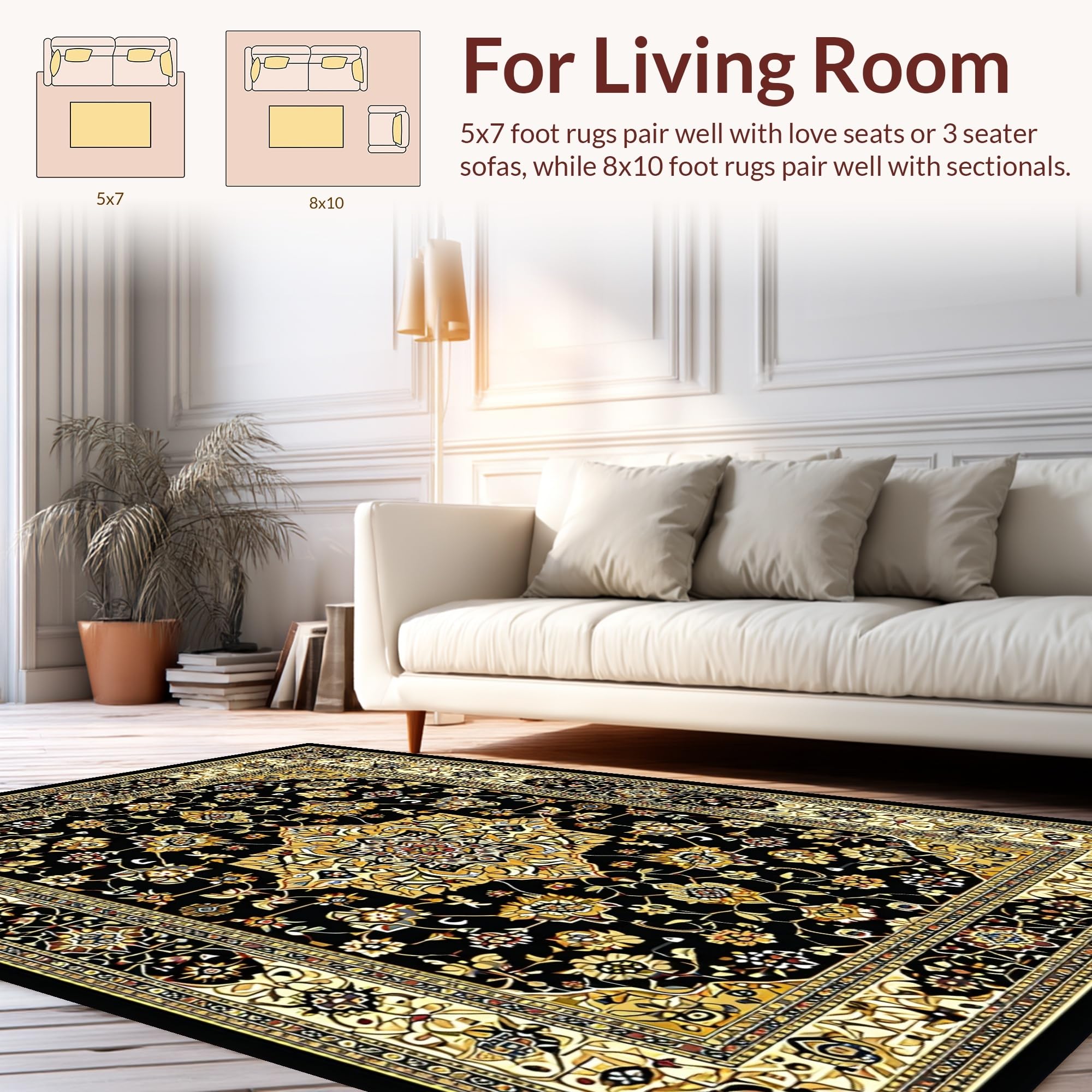 Ultra Soft Area Rug, Non Slip, Stain Resistant, Washable Area Rugs for Living Room, Bedroom, Luxurious Vintage Oriental Tapestry(Black) Overview: