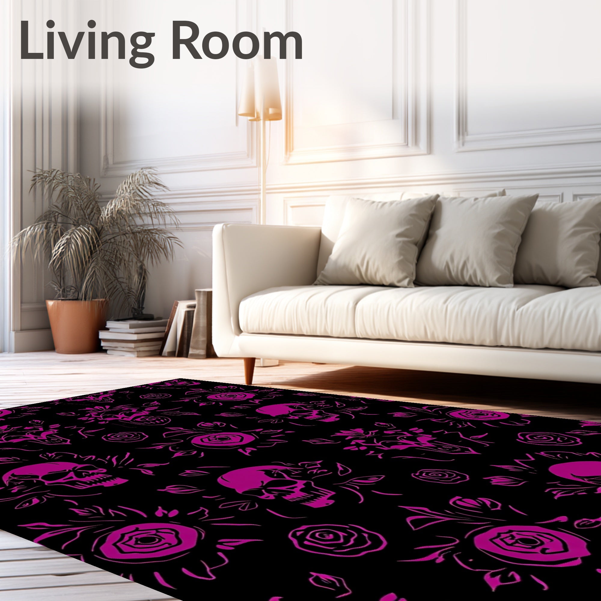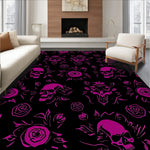 Ultra Soft Area Rug, Non Slip, Stain Resistant, Washable Area Rugs for Living Room, Bedroom, Macabre Rose Skull Tapestry Interlocking Floral Gothic Art(Black) Overview: