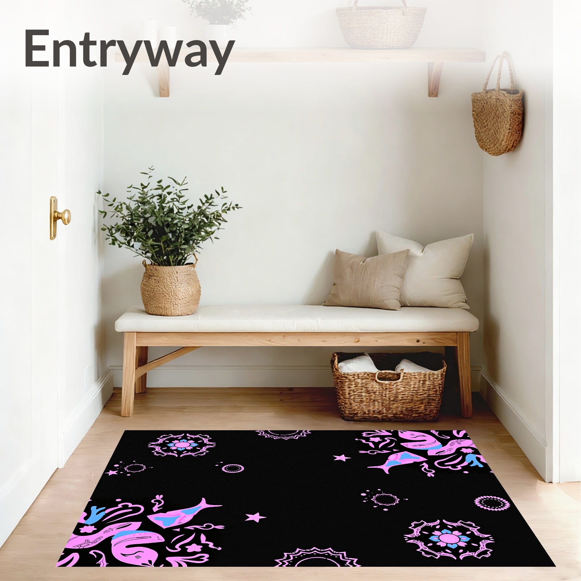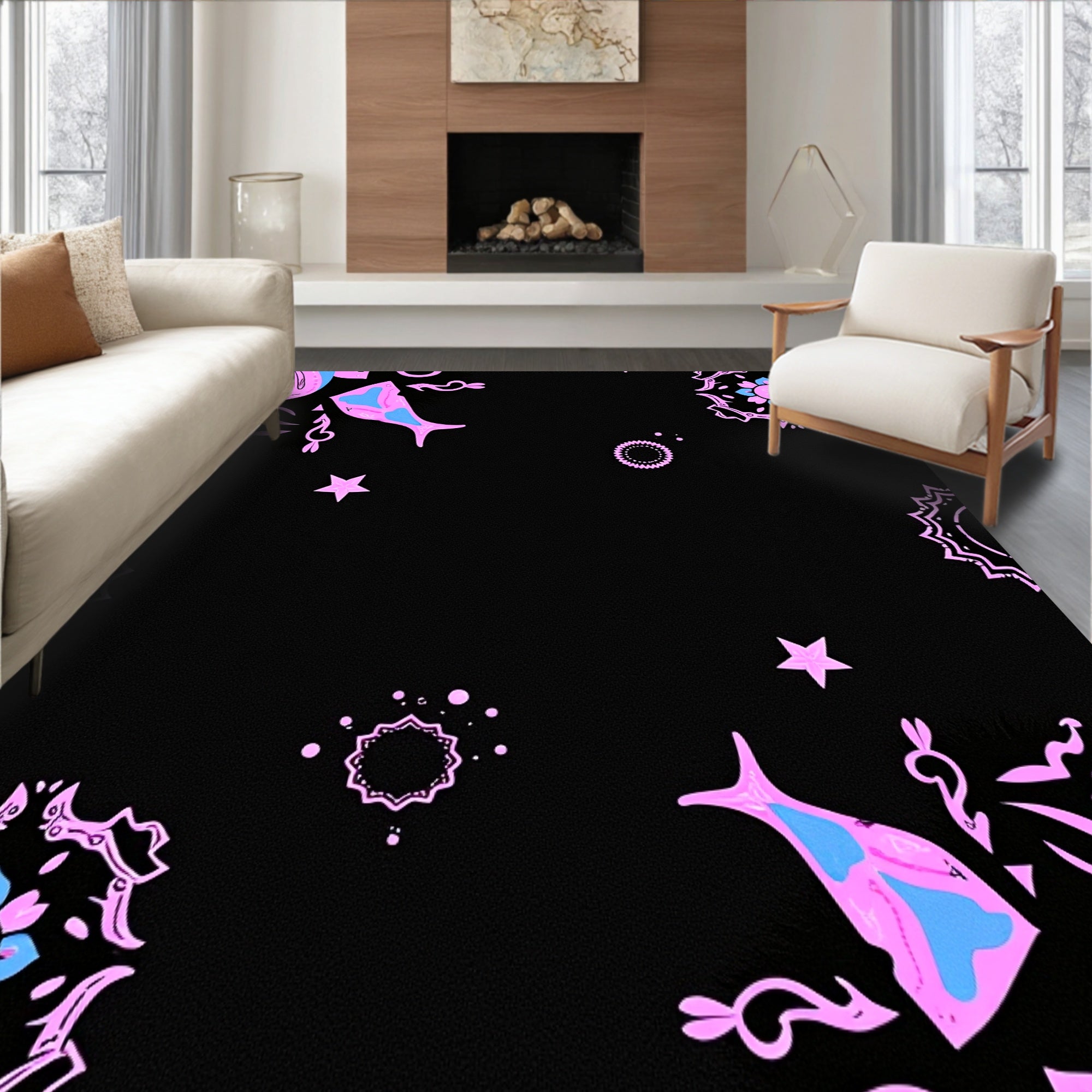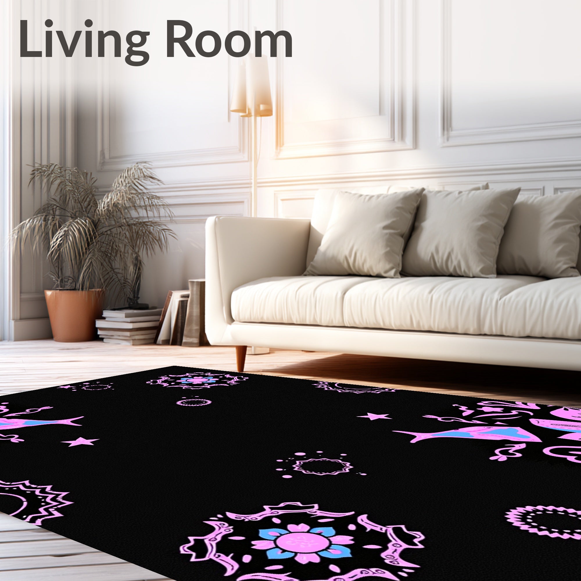Ultra Soft Area Rug, Non Slip, Stain Resistant, Washable Area Rugs for Living Room, Bedroom, Magical Fairytale Wonderland Dreamy Ethereal Swirl Constellation Design(Black) Overview: