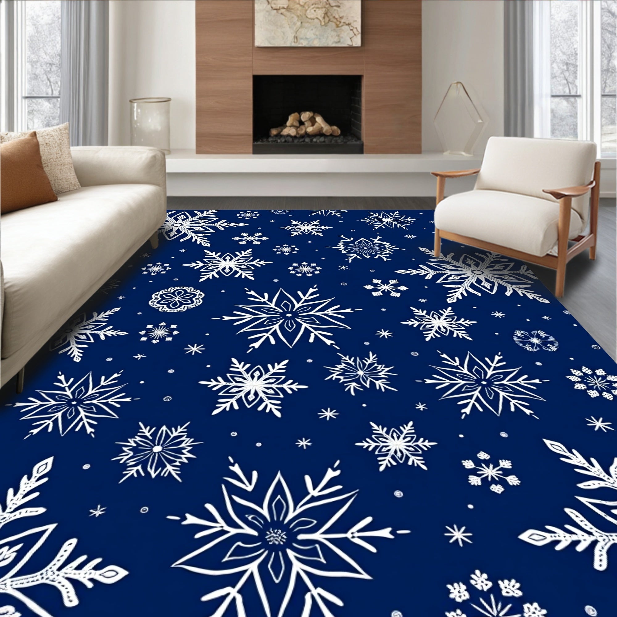 Flatwoven High Traffic Area Rug, Magical Frosty Night Seasonal Elegant Surface Protection, Non Slip, Stain Resistant, Washable Area Rugs for Living Room, Bedroom (Blue) Overview: