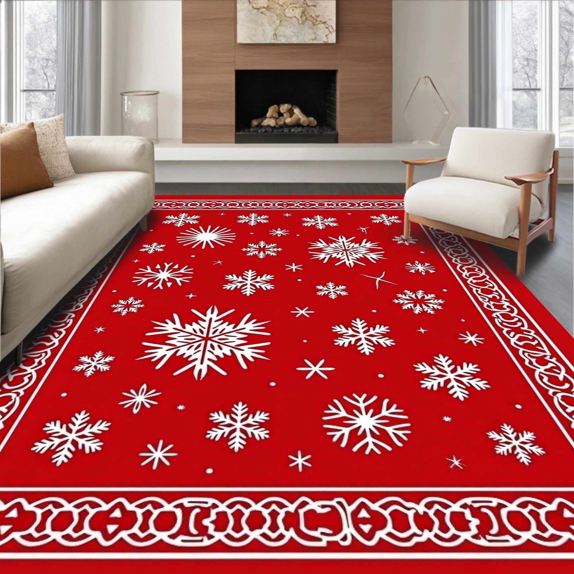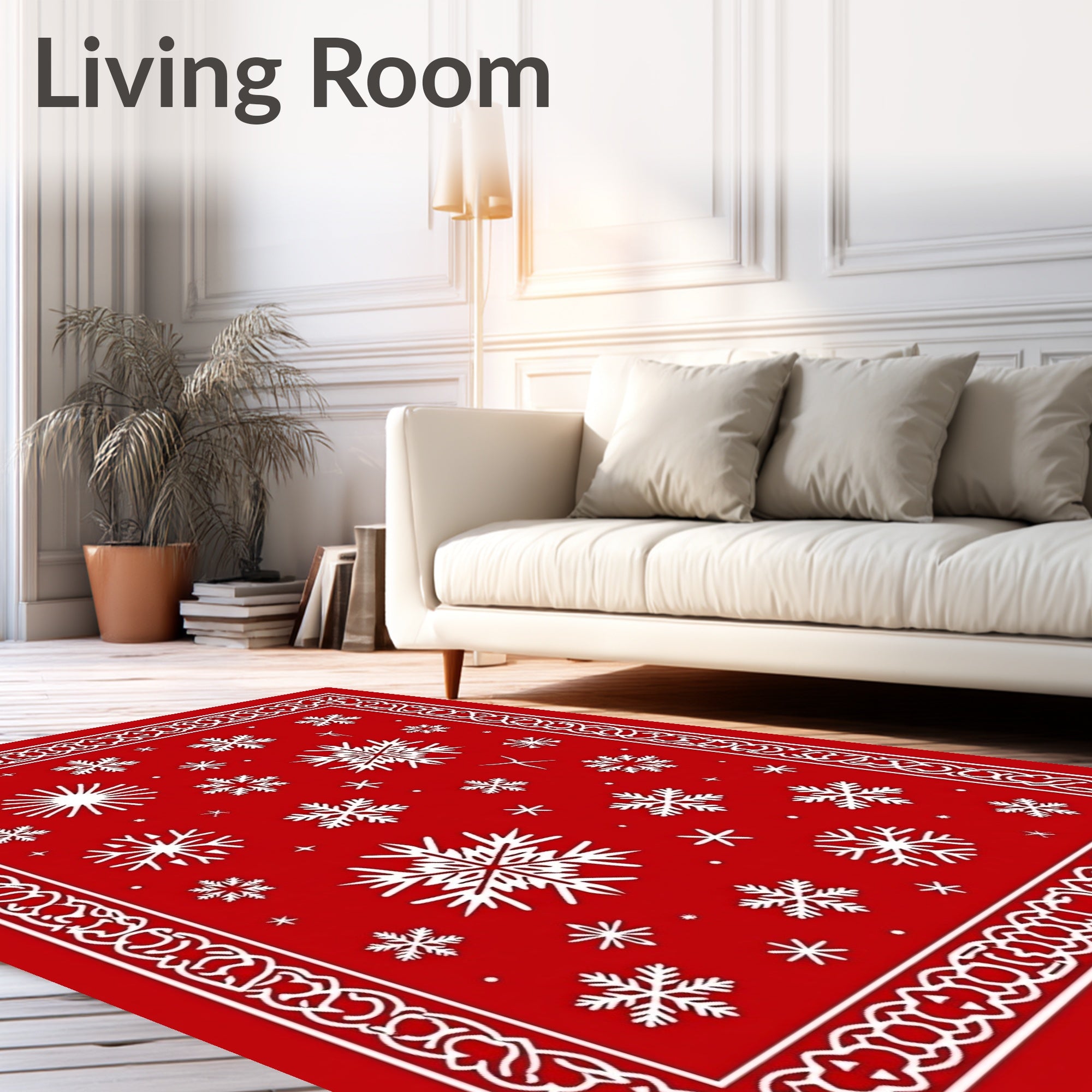 Ultra Soft Area Rug, Non Slip, Stain Resistant, Washable Area Rugs for Living Room, Bedroom, Magical Yuletide Sparkle Jolly Festivity Adornment(Red) Overview: