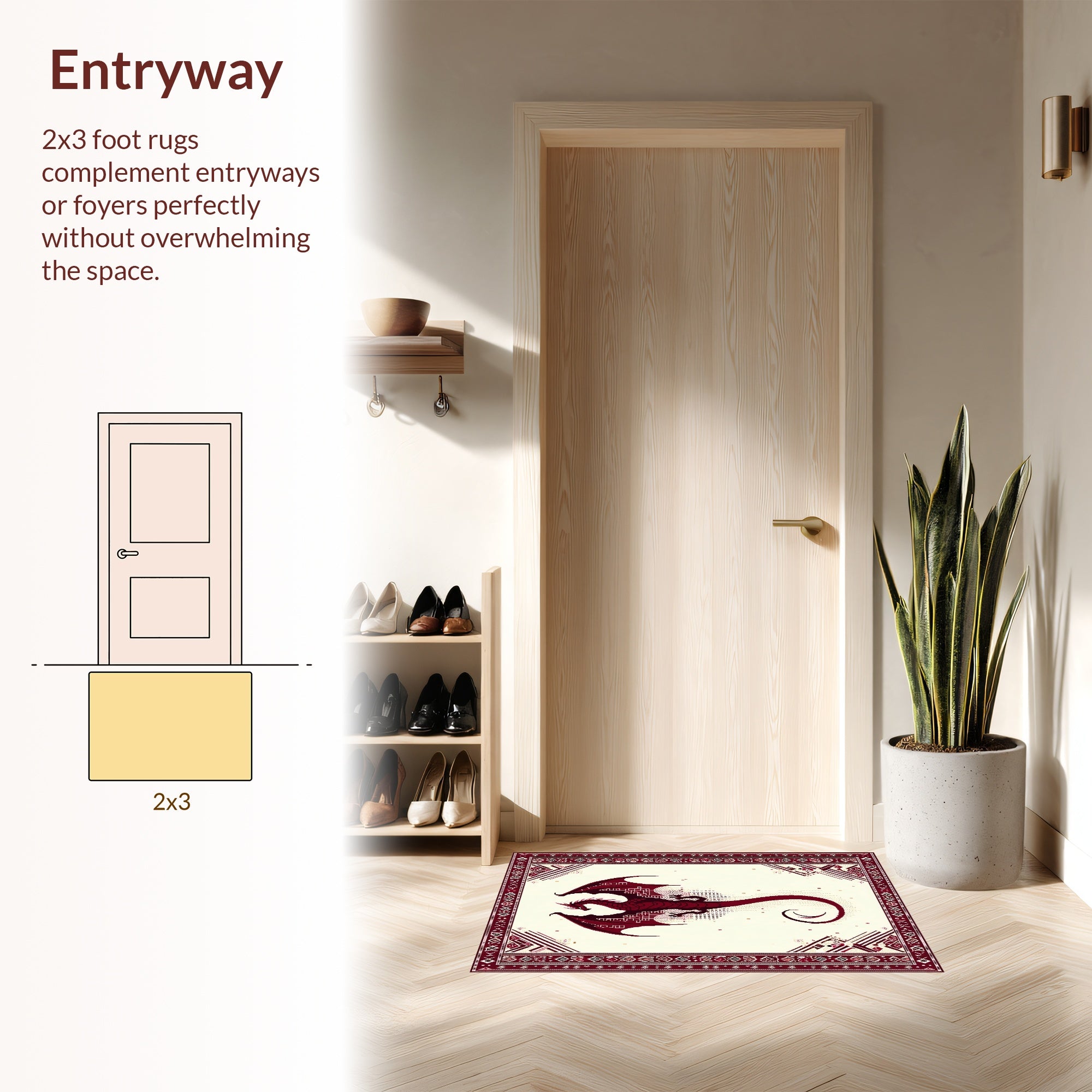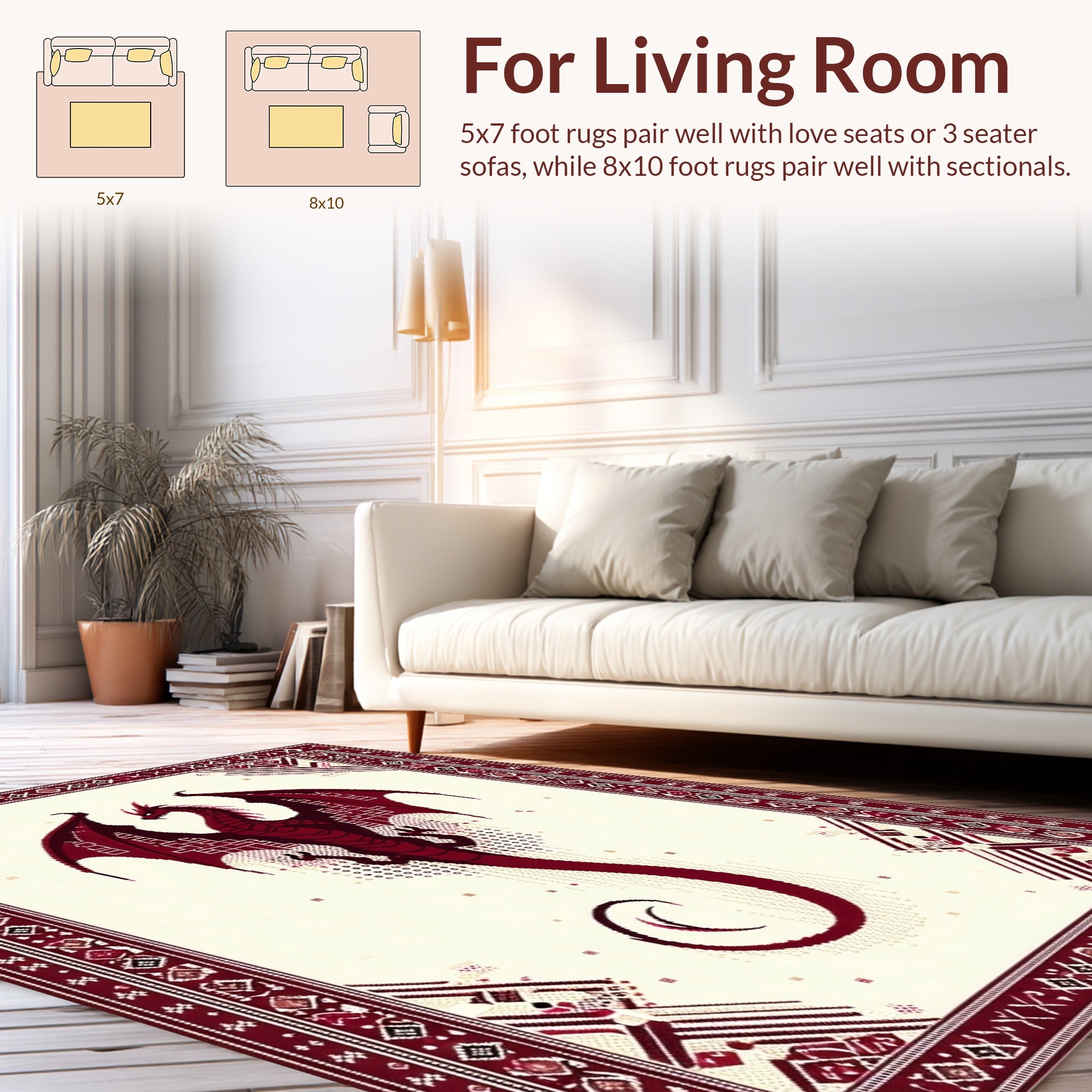 Flatwoven High Traffic Area Rug, Majestic Wyvern Formulator Untainted Half Domest Design, Non Slip, Stain Resistant, Washable Area Rugs for Living Room, Bedroom (Red) Overview: