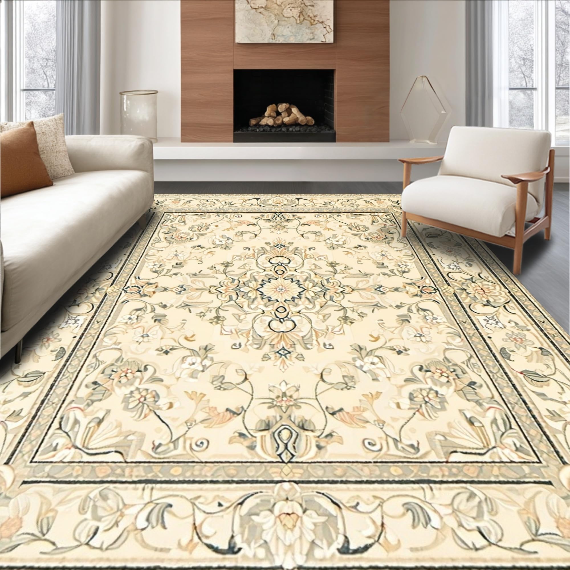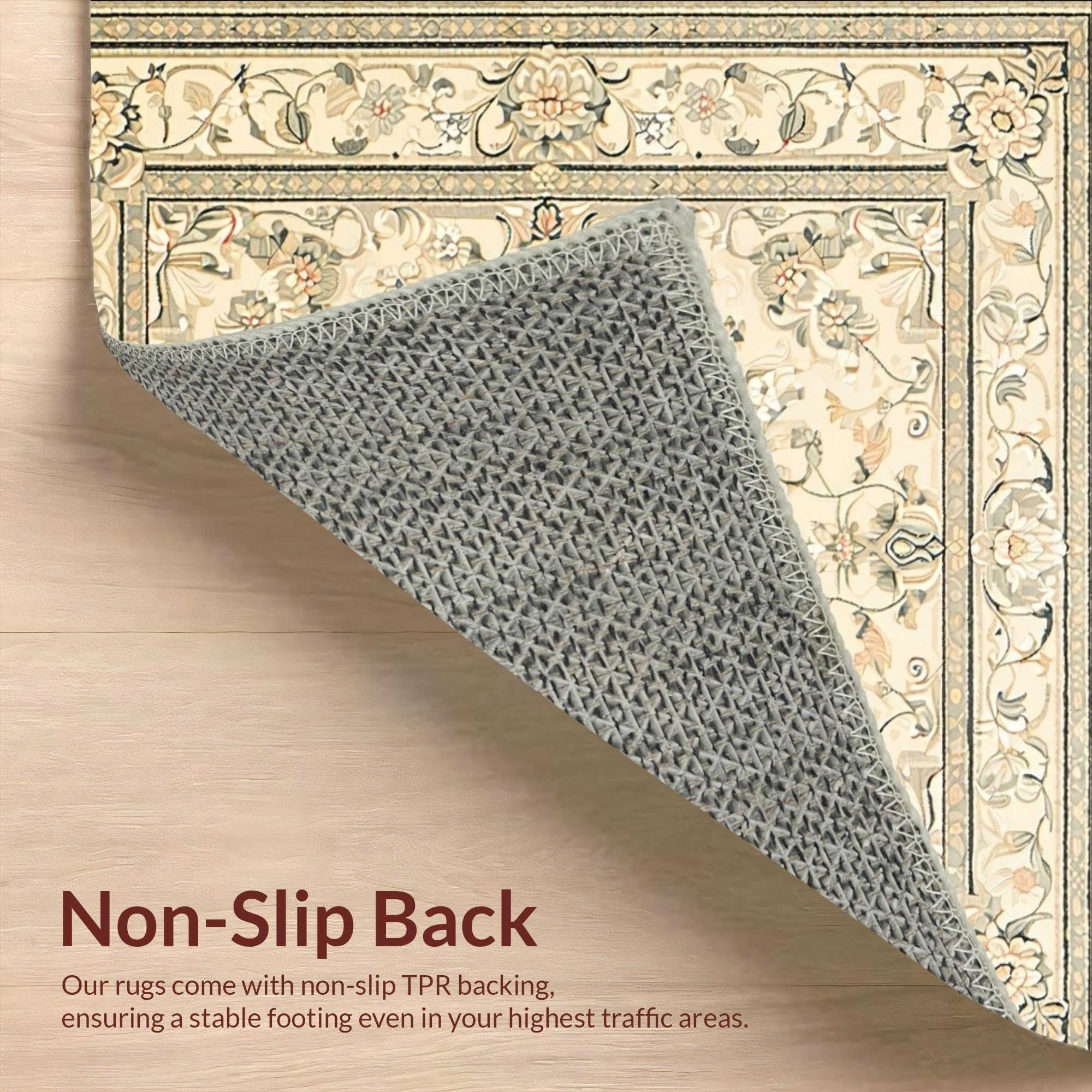 Ultra Soft Area Rug, Non Slip, Stain Resistant, Washable Area Rugs for Living Room, Bedroom, Meadow Harmony Oval Area Showcasing Vintage Medallion Ornamentation(Beige) Overview: