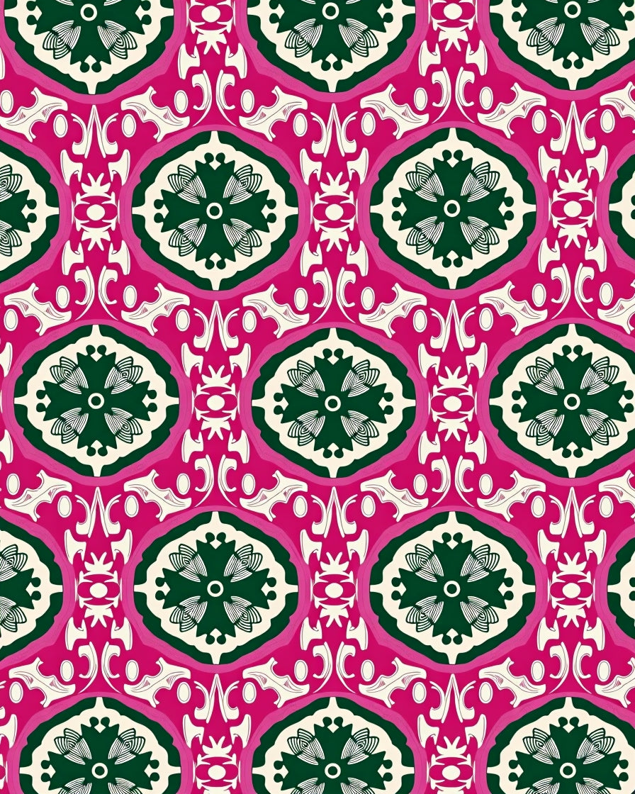 Meadow Medallion Interlocking Motif with Vintage Botanical Flourish(Pink)